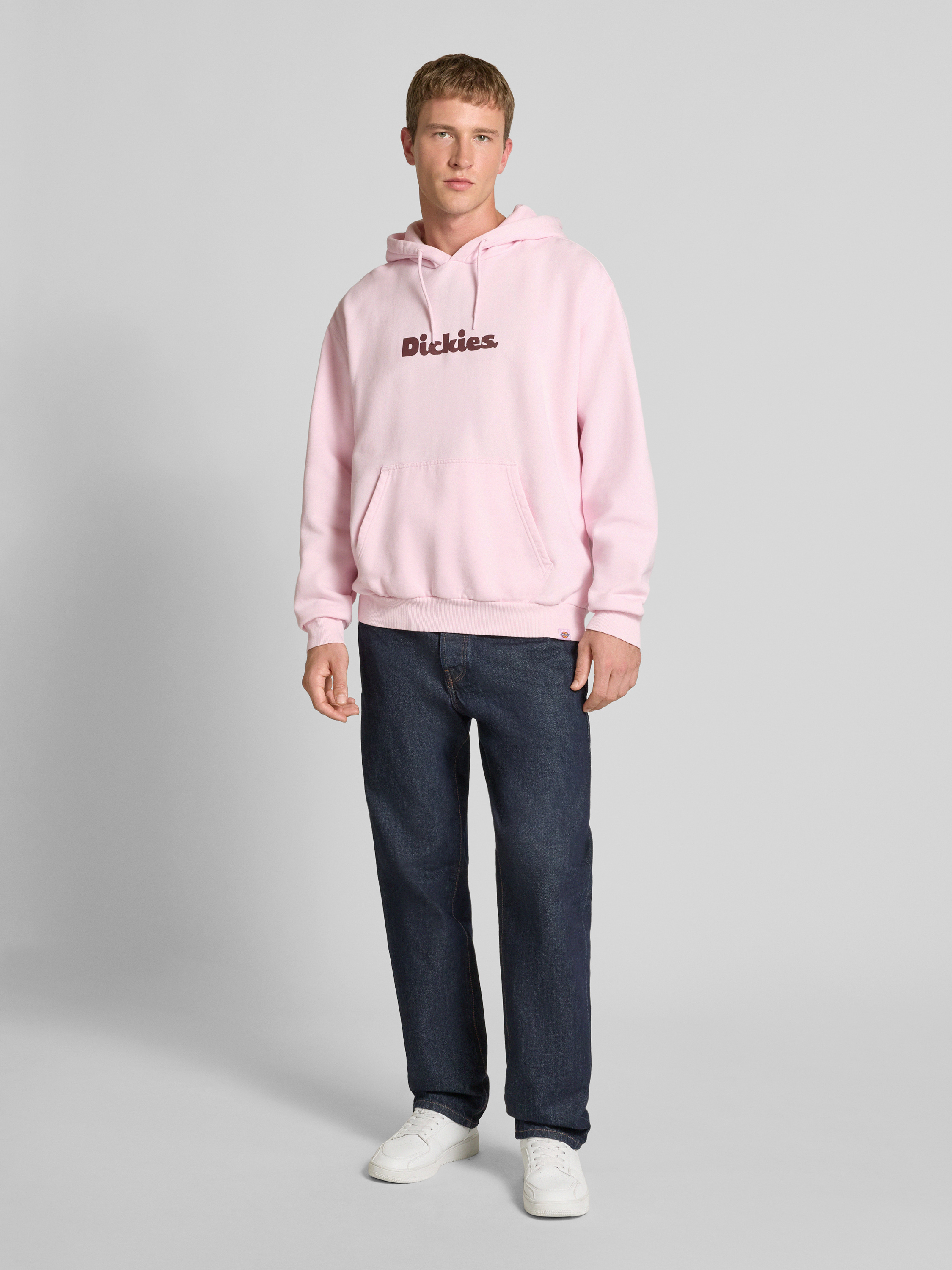 Der Herren Hoodie von Dickies, Modell 'SLAYDEN', zeichnet sich durch einen lockeren Schnitt aus und eignet sich ideal für entspannte Freizeitlooks. Der Baumwoll-Mix sorgt für ein angenehmes Tragegefühl, während die Kapuze mit Tunnelzug und die Känguru-Tasche praktische Details bieten. Ein markanter Label-Print setzt einen sportiven Akzent.