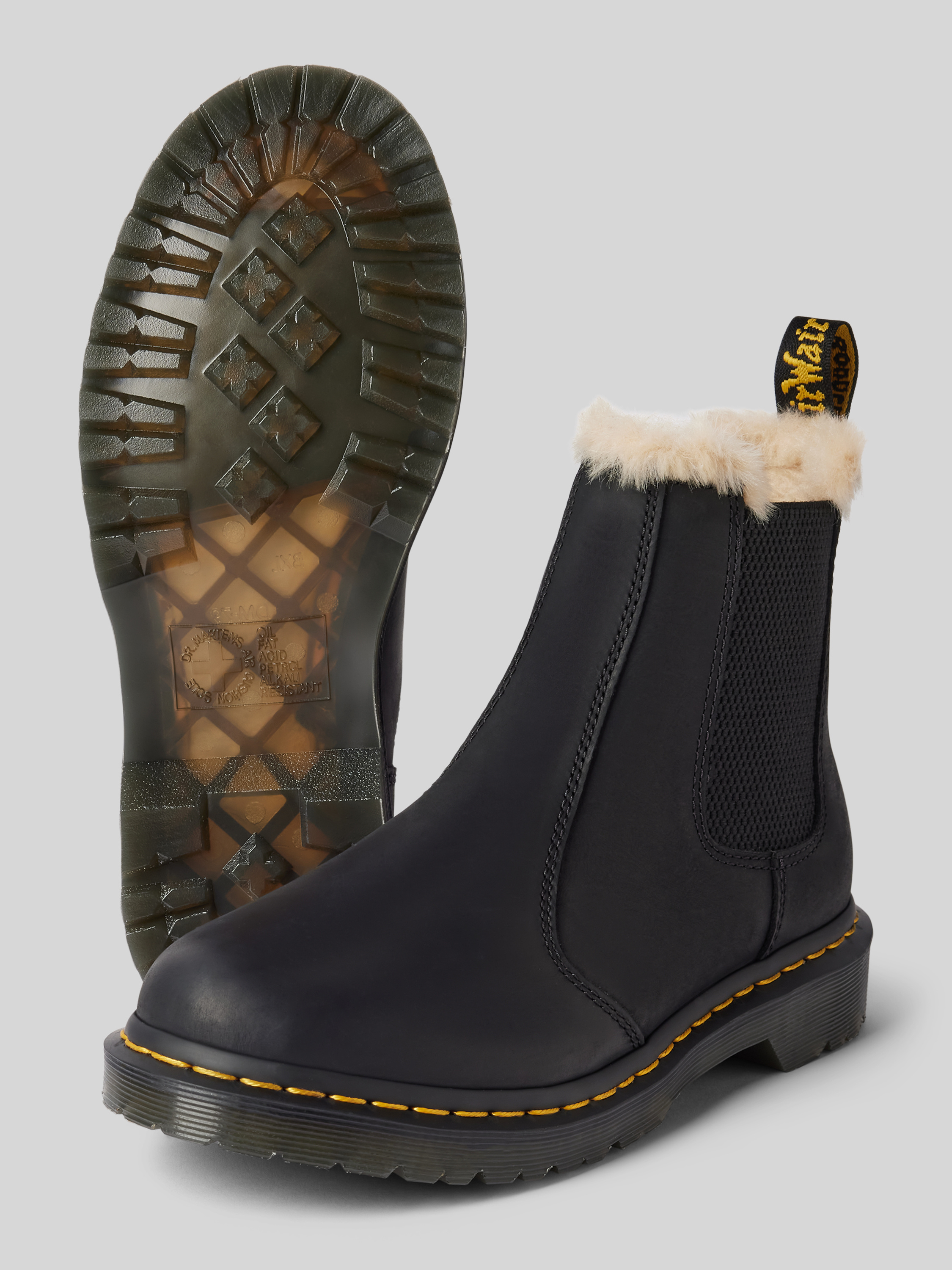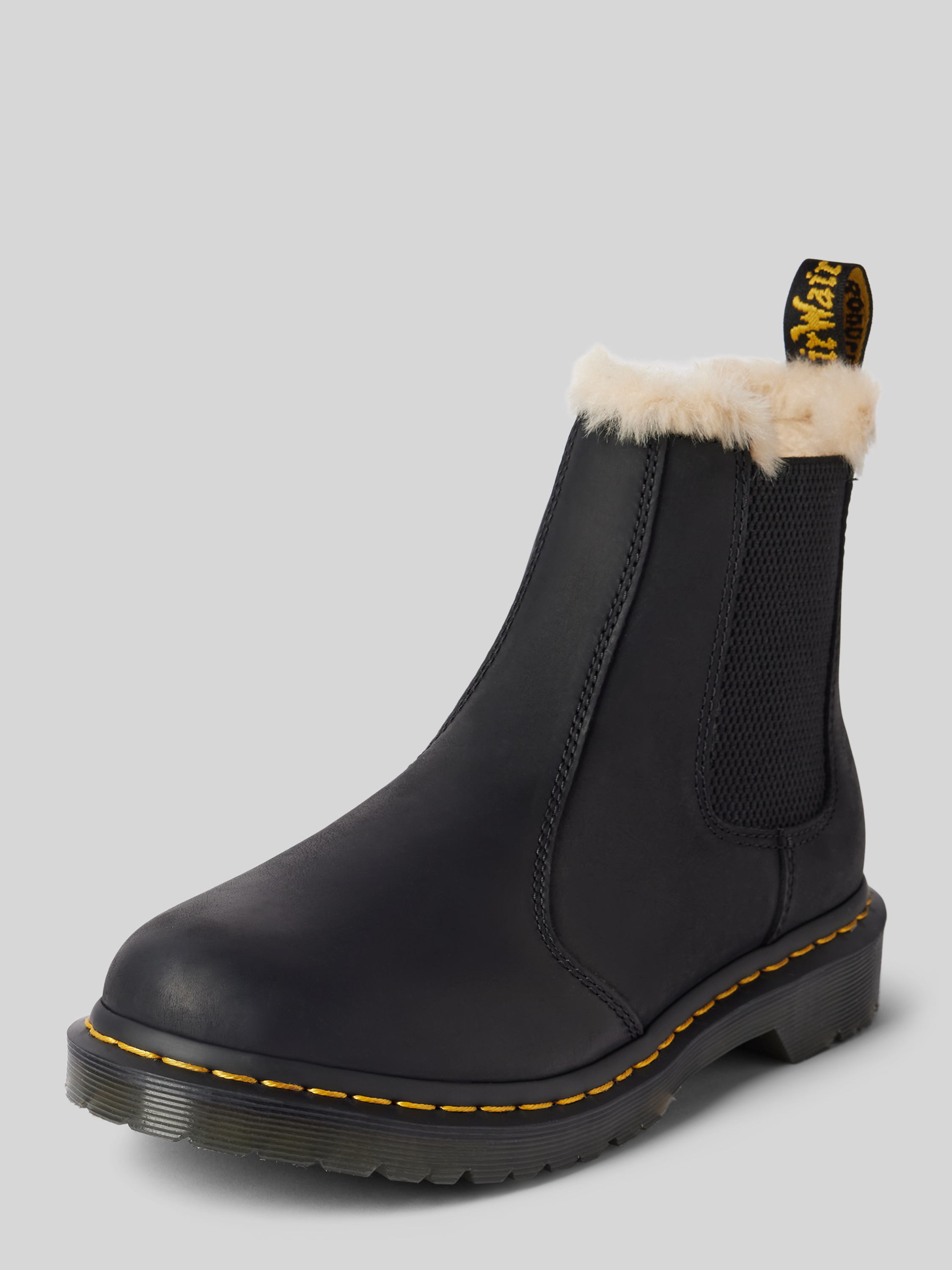 Die Chelsea Boots 'Leonore' von Dr. Martens aus echtem Leder vereinen zeitlose Eleganz mit robustem Komfort. Das kuschelige Innenfutter mit Kunstfell sorgt an kühlen Tagen für angenehme Wärme. Elastische Einsätze und eine profilierte Sohle bieten zuverlässigen Halt und Flexibilität.