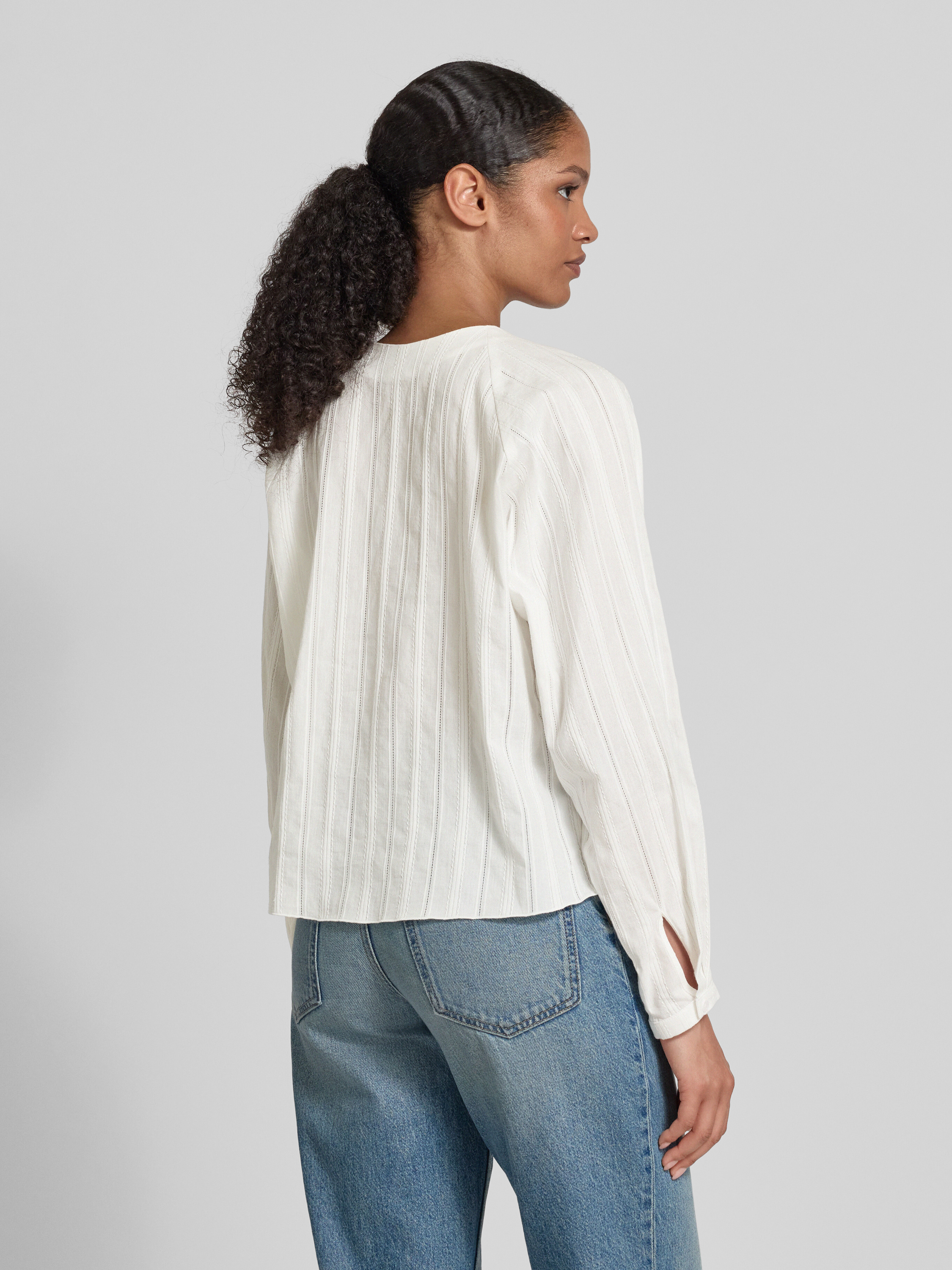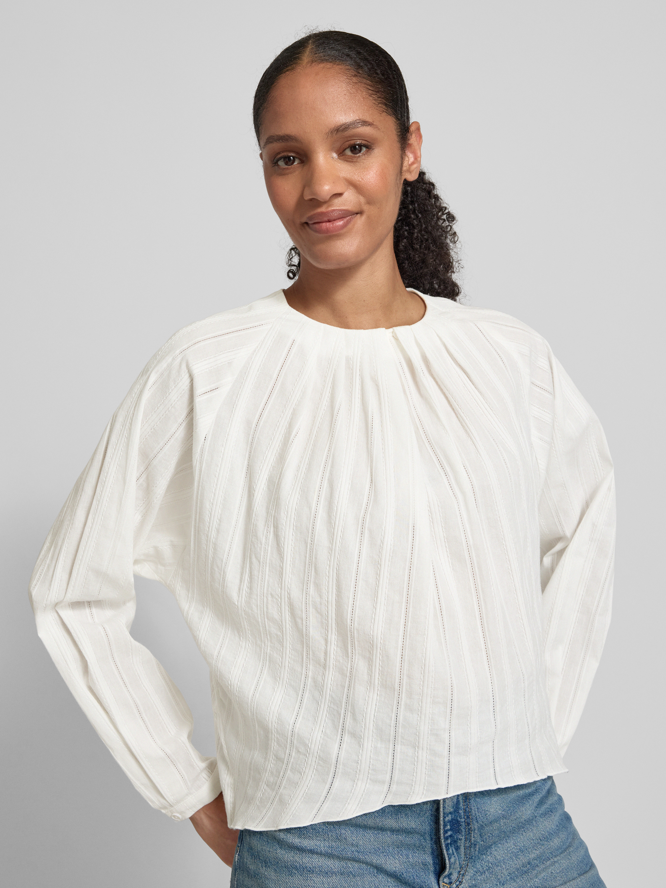 Das Blusenshirt 'SEETHA' von Drykorn präsentiert sich in reiner Baumwolle und bietet mit seinem lockeren Schnitt ein angenehmes Tragegefühl. Raffungen und ein Rundhalsausschnitt verleihen dem Design eine dezente Eleganz. Ideal für einen lässigen und zugleich stilvollen Auftritt.