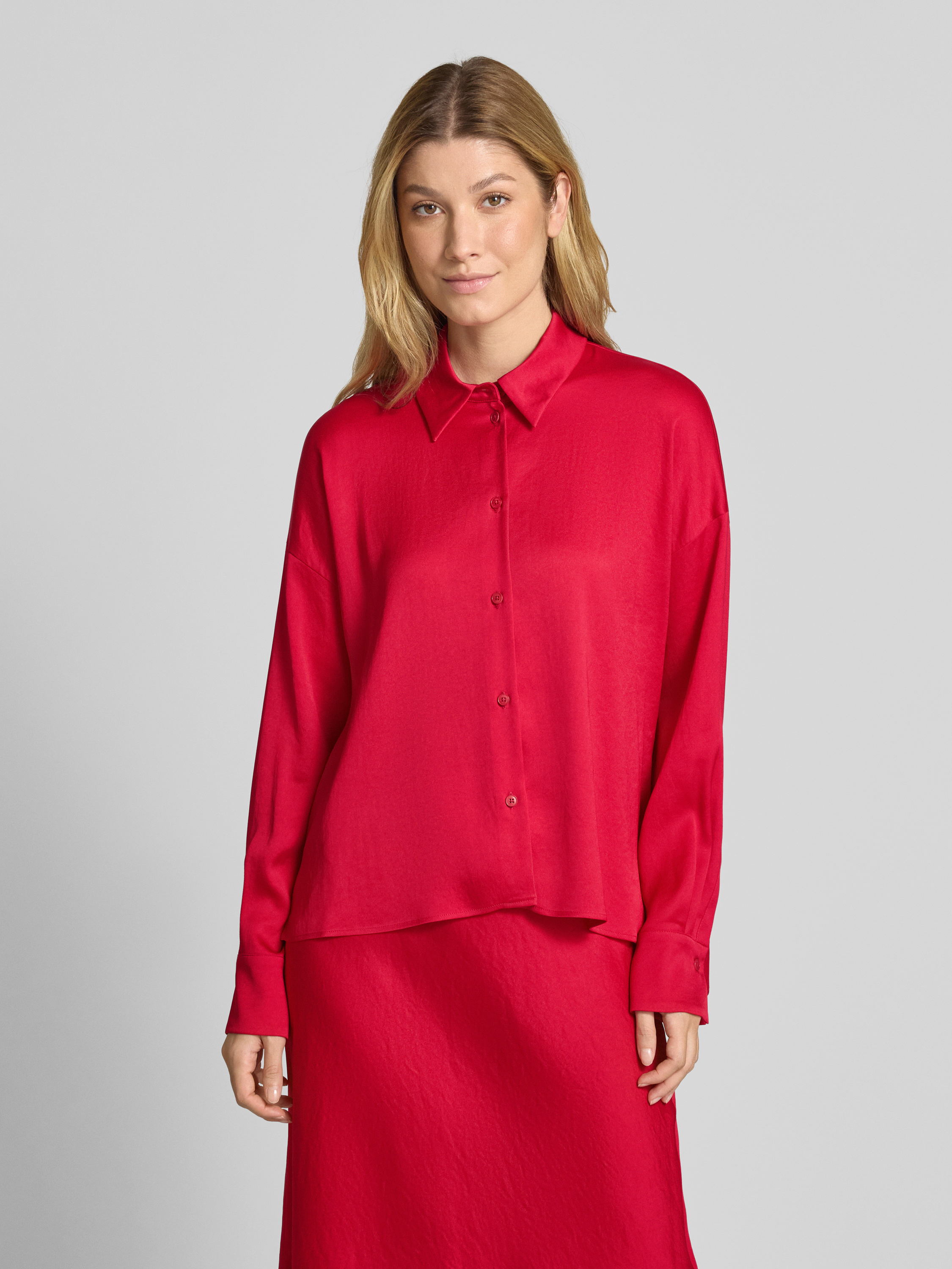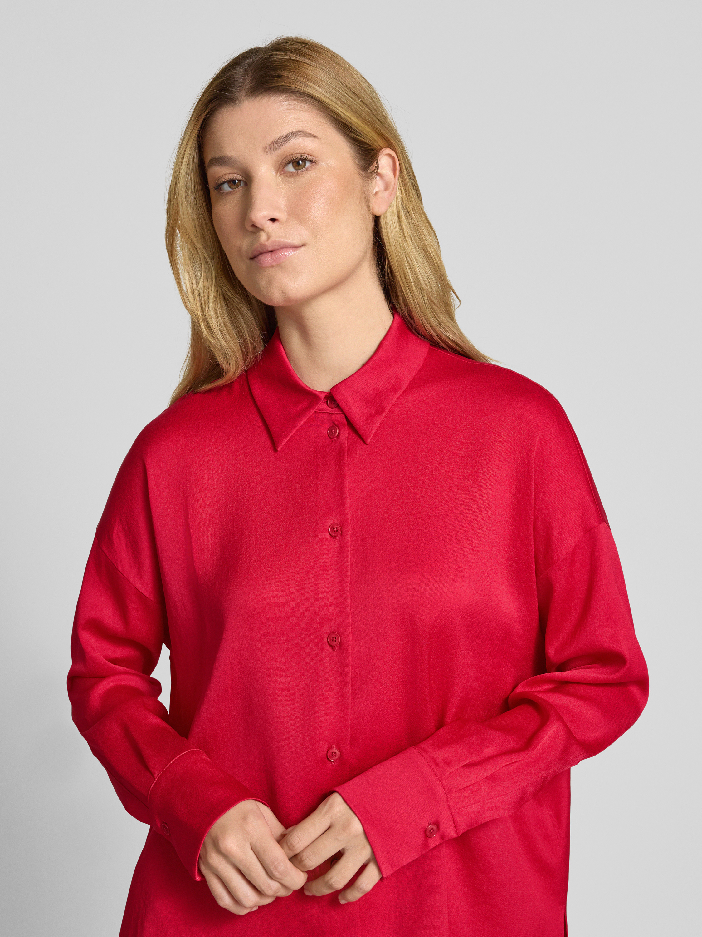 Die Hemdbluse CLOELIA von Drykorn präsentiert sich in einem Acetat-Elasthan-Mix, der für einen fließenden, lockeren Sitz sorgt. Der klassische Hemdblusenkragen verleiht ihr eine zeitlose Eleganz, während die dezente Knopfleiste vielseitige Kombinationsmöglichkeiten eröffnet. Ideal für entspannte und stilvolle Auftritte gleichermaßen.