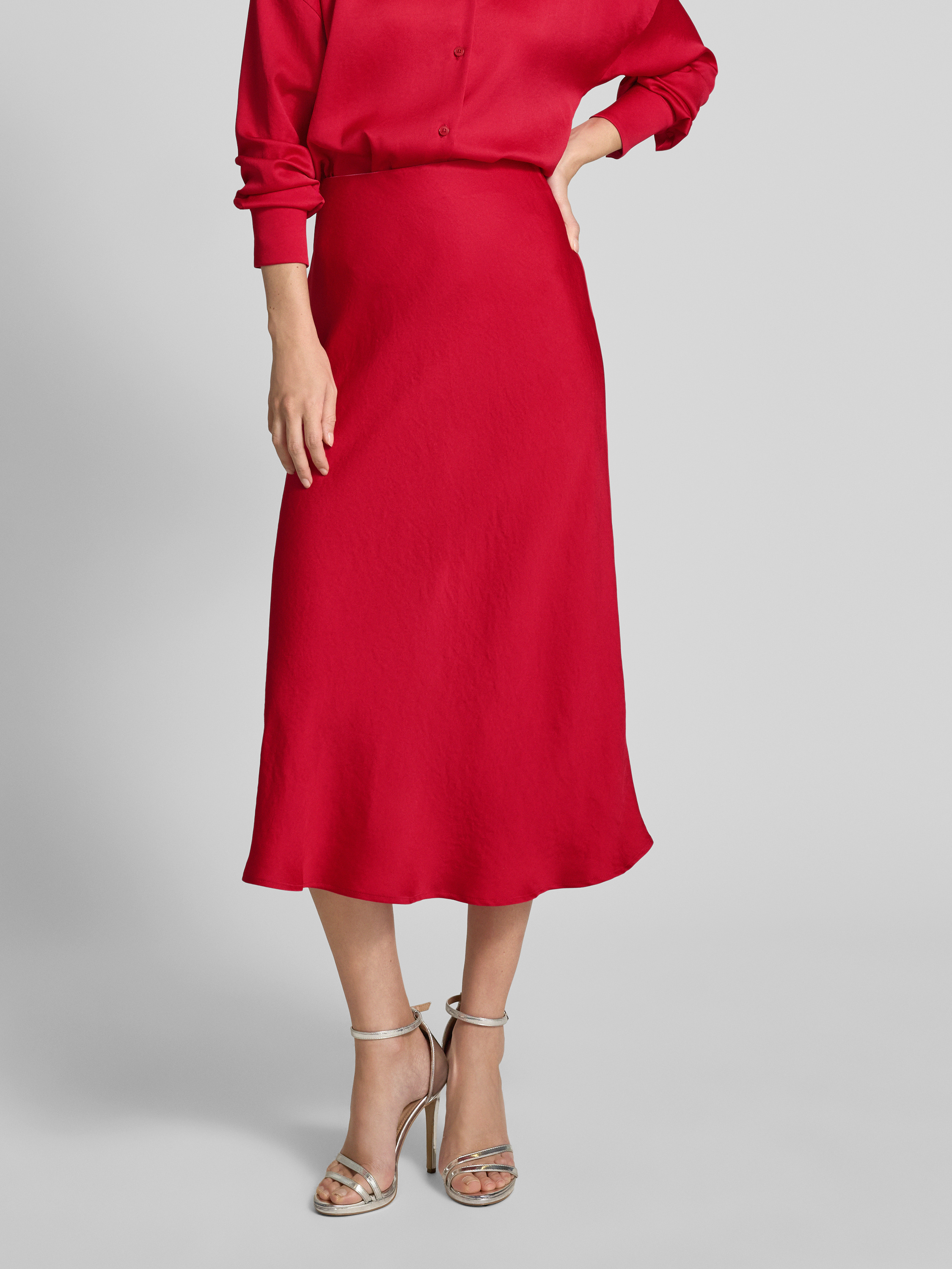 Der Damen Midirock von Drykorn, Modell 'URA', vereint einen bequemen Material-Mix mit Stretch-Anteil und A-Linien-Schnitt, was einen eleganten Fall ermöglicht. Der elastische Bund sorgt für eine angenehme Passform und macht den Rock zu einem vielseitigen Begleiter. Ideal für verschiedenste Anlässe.
