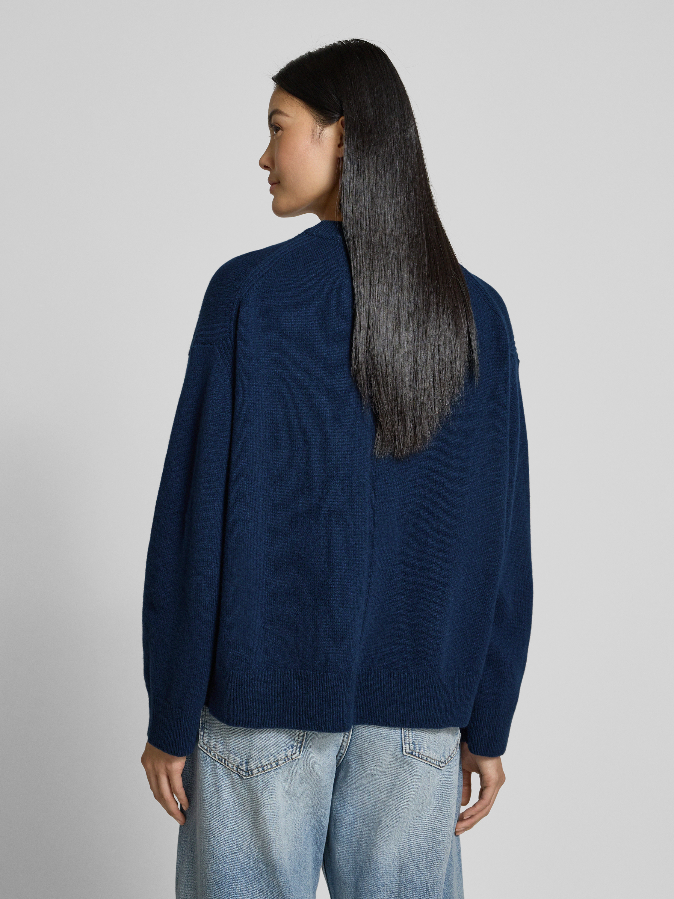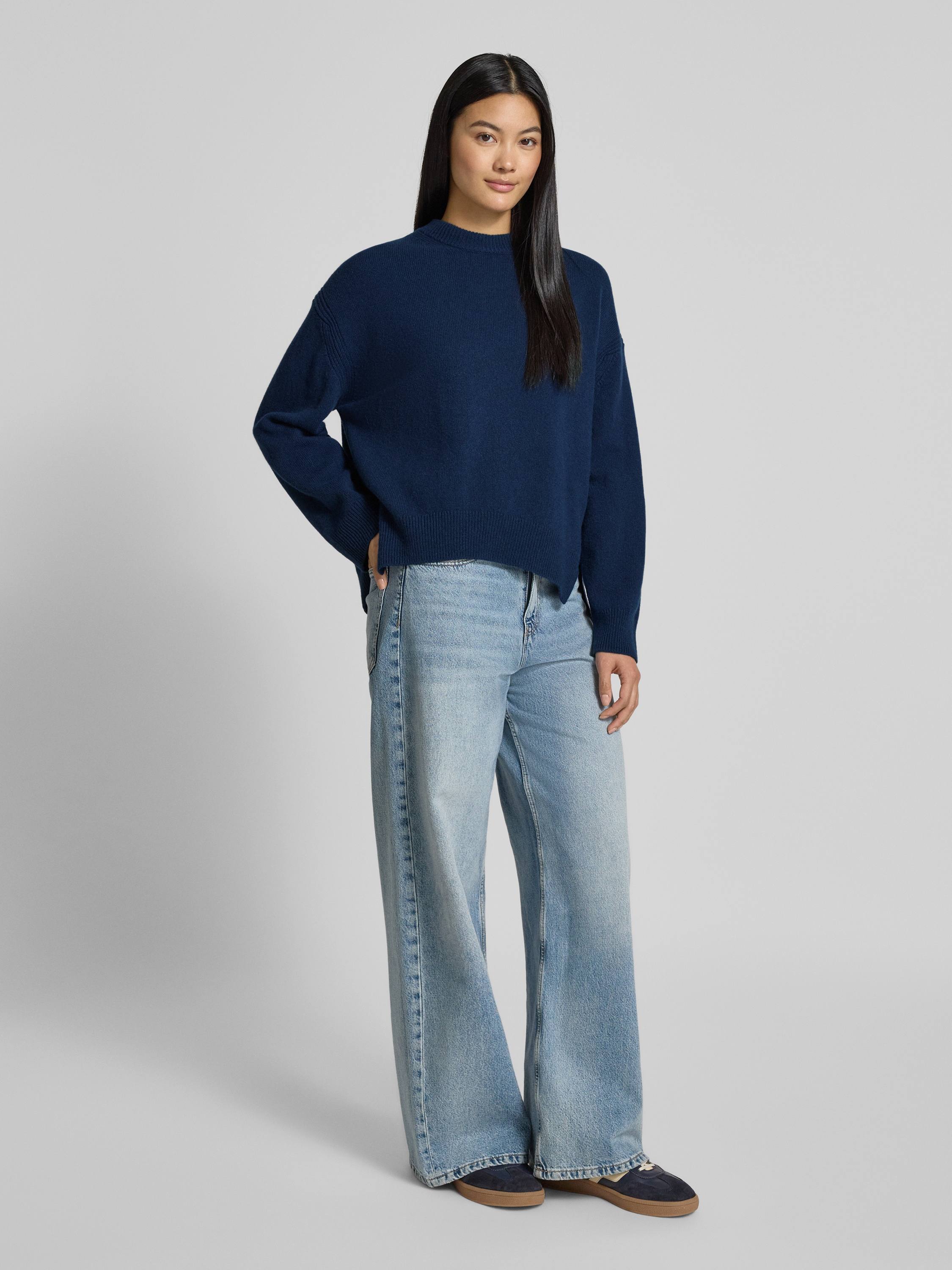 DrykornOversized Strickpullover mit gerippten Abschlüssen in dunkelblau