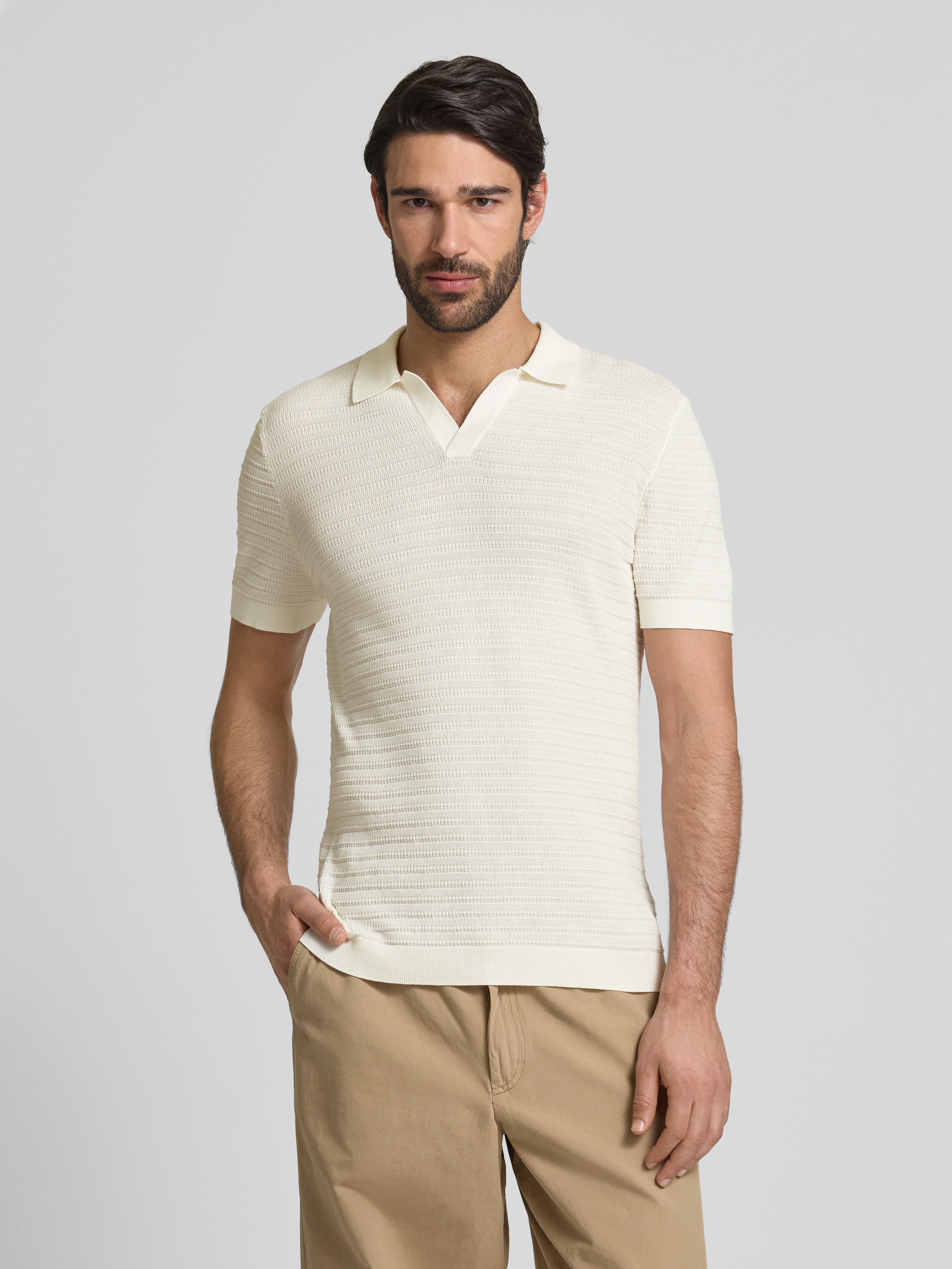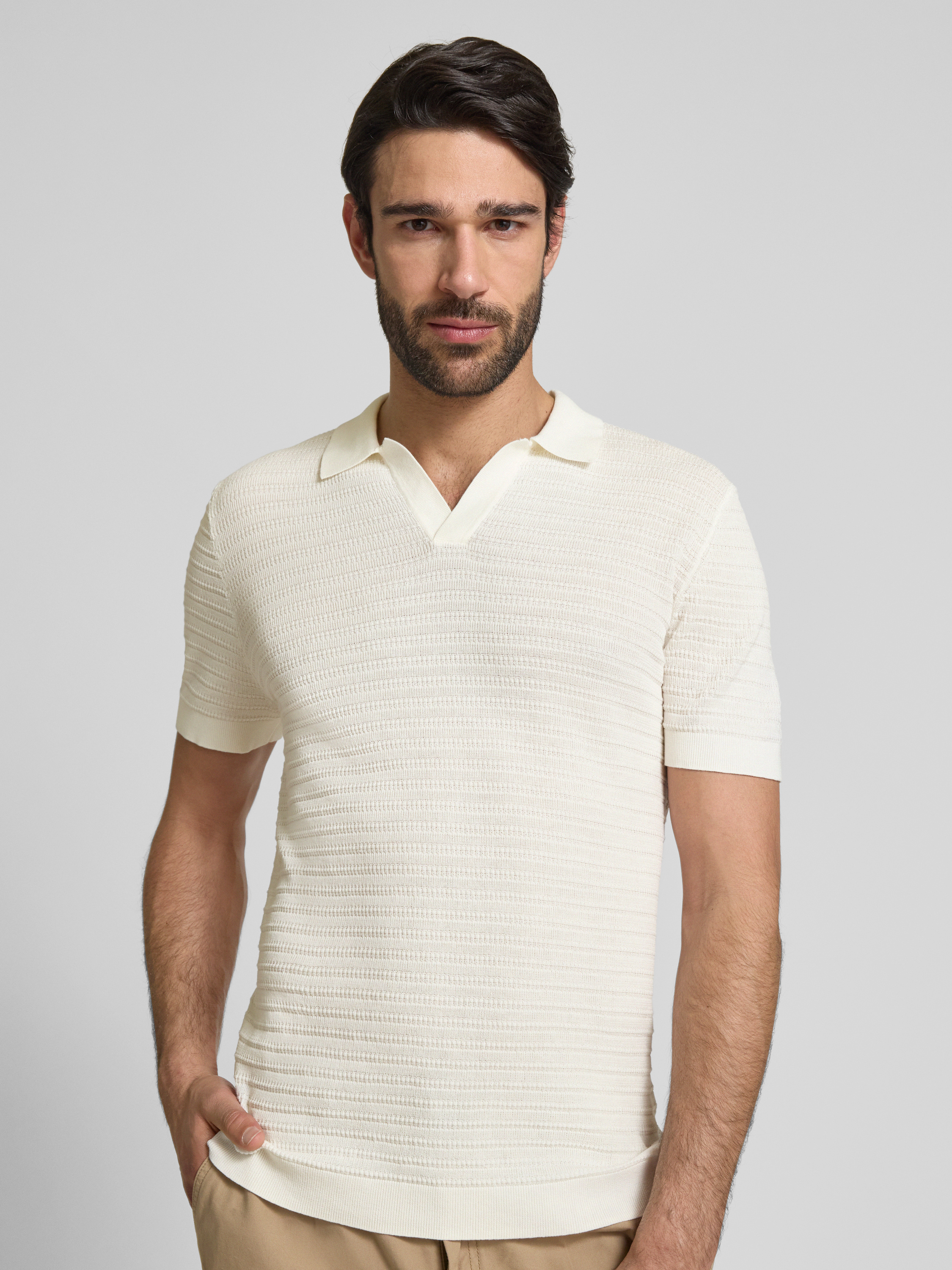 DrykornRegular Fit Poloshirt mit V-Ausschnitt Modell 'BRAIAN' in offwhite