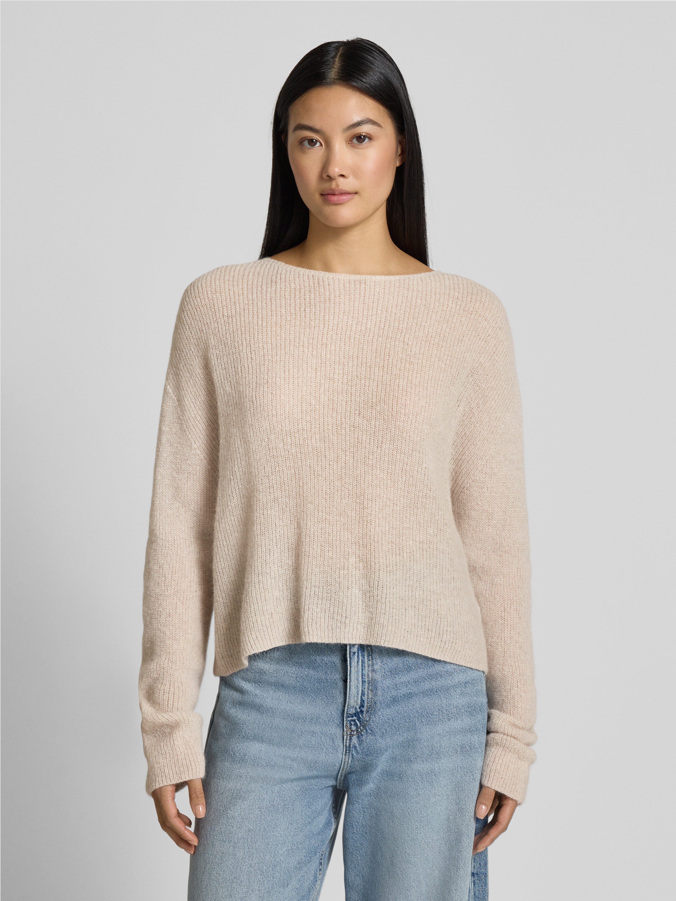 Der Damenpullover IMENY von Drykorn aus Alpaka-Mix mit Woll-Anteil punktet durch seinen angenehm geraden Schnitt und einen klassischen Rundhalsausschnitt. Überschnittene Schultern sorgen für eine entspannte Passform, wodurch Bewegungsfreiheit entsteht. Das Material fühlt sich weich an und wärmt zuverlässig an kühlen Tagen.