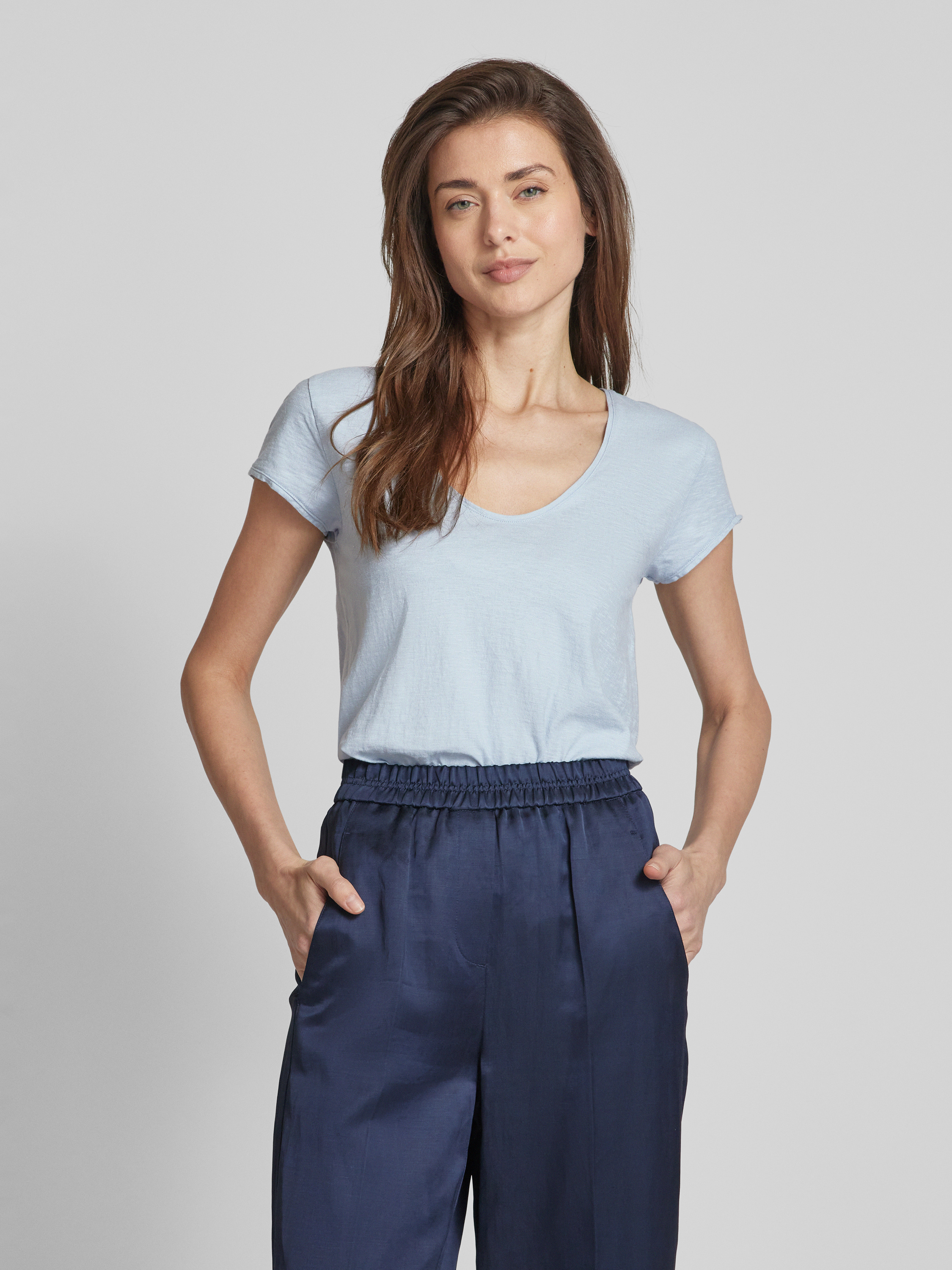 T-Shirt mit V-Ausschnitt Modell 'AVIVI' in bleu