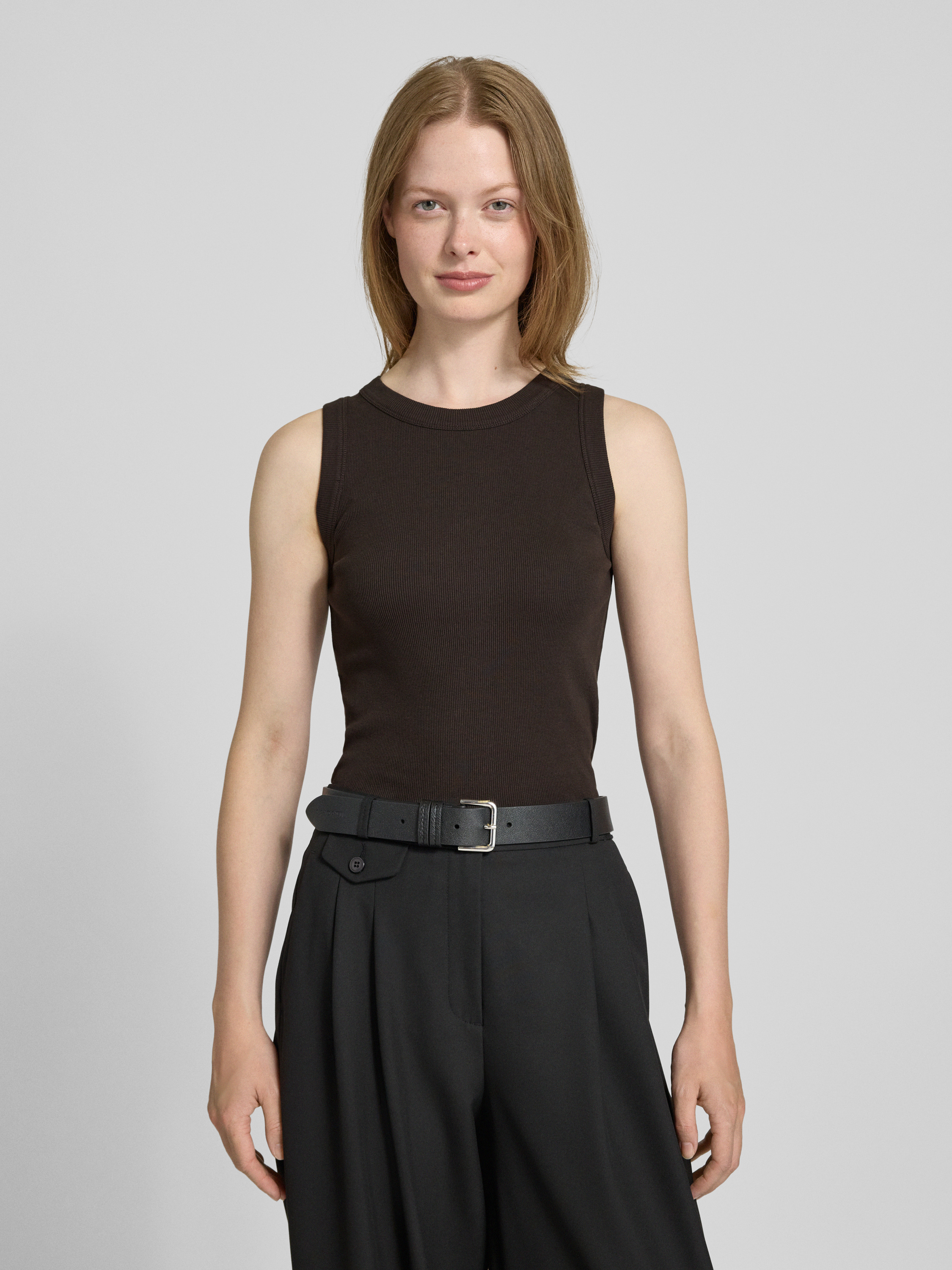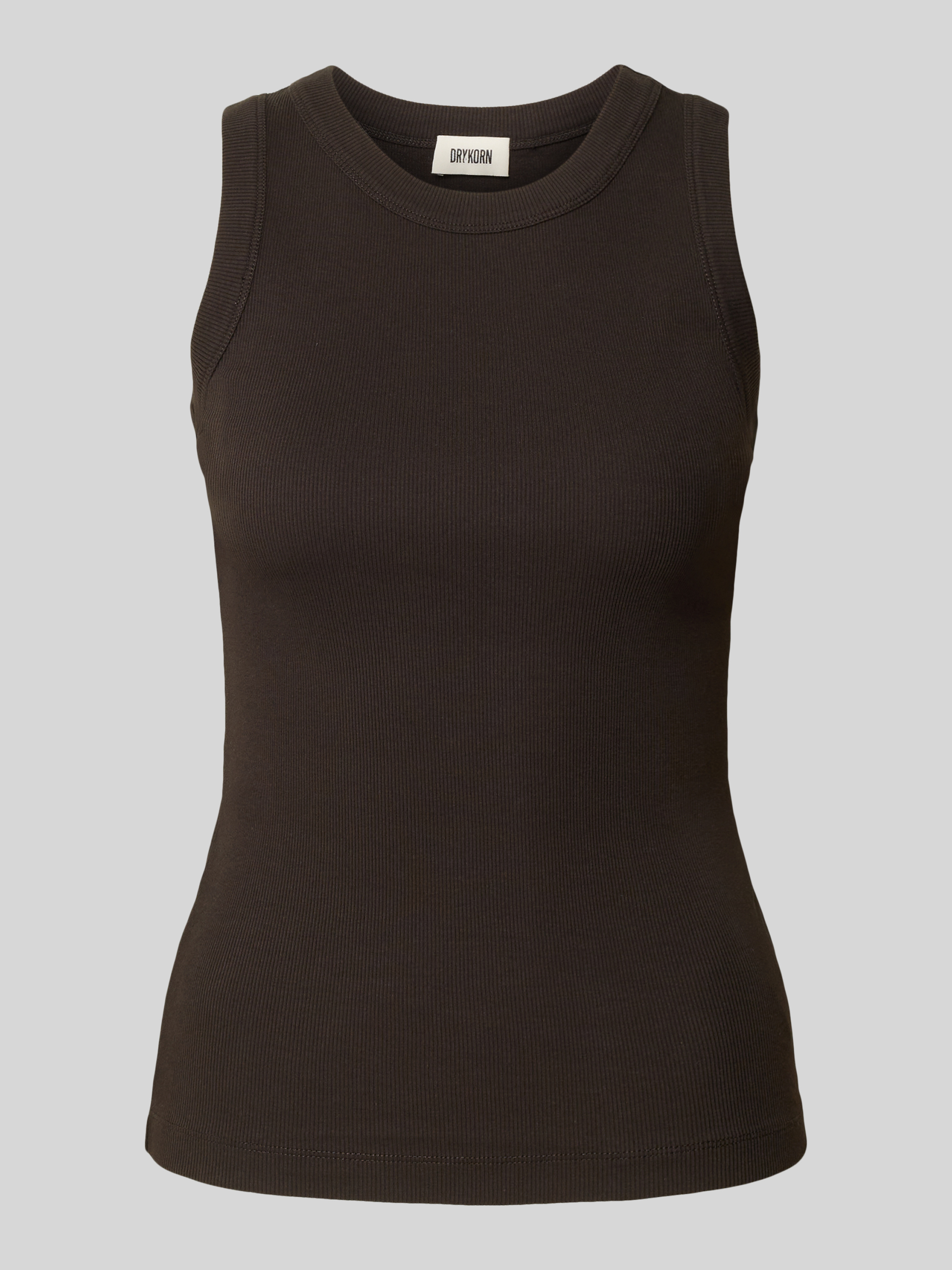 DrykornTanktop mit gerippten Abschlüssen Modell 'OLINA' in dunkelbraun