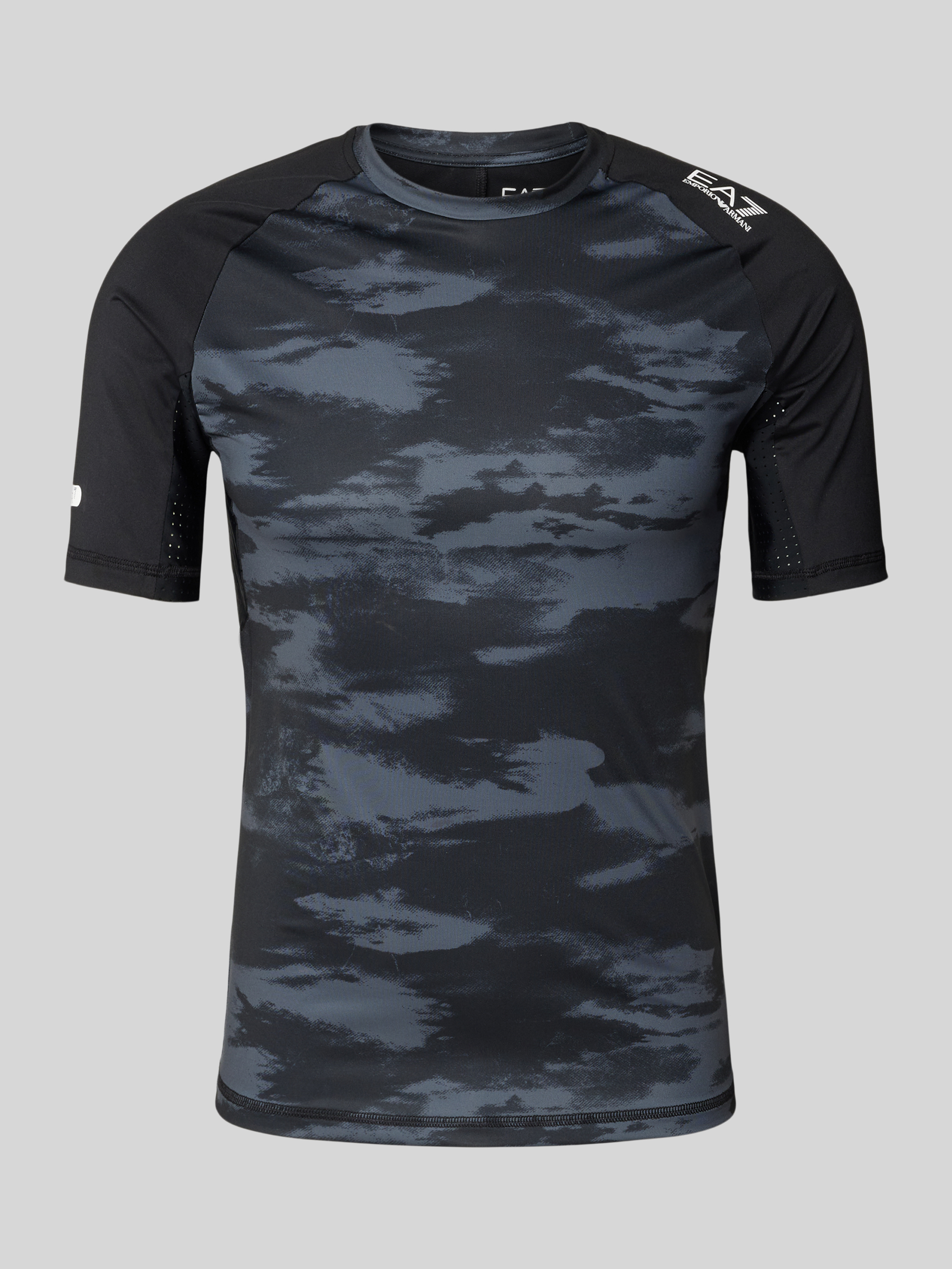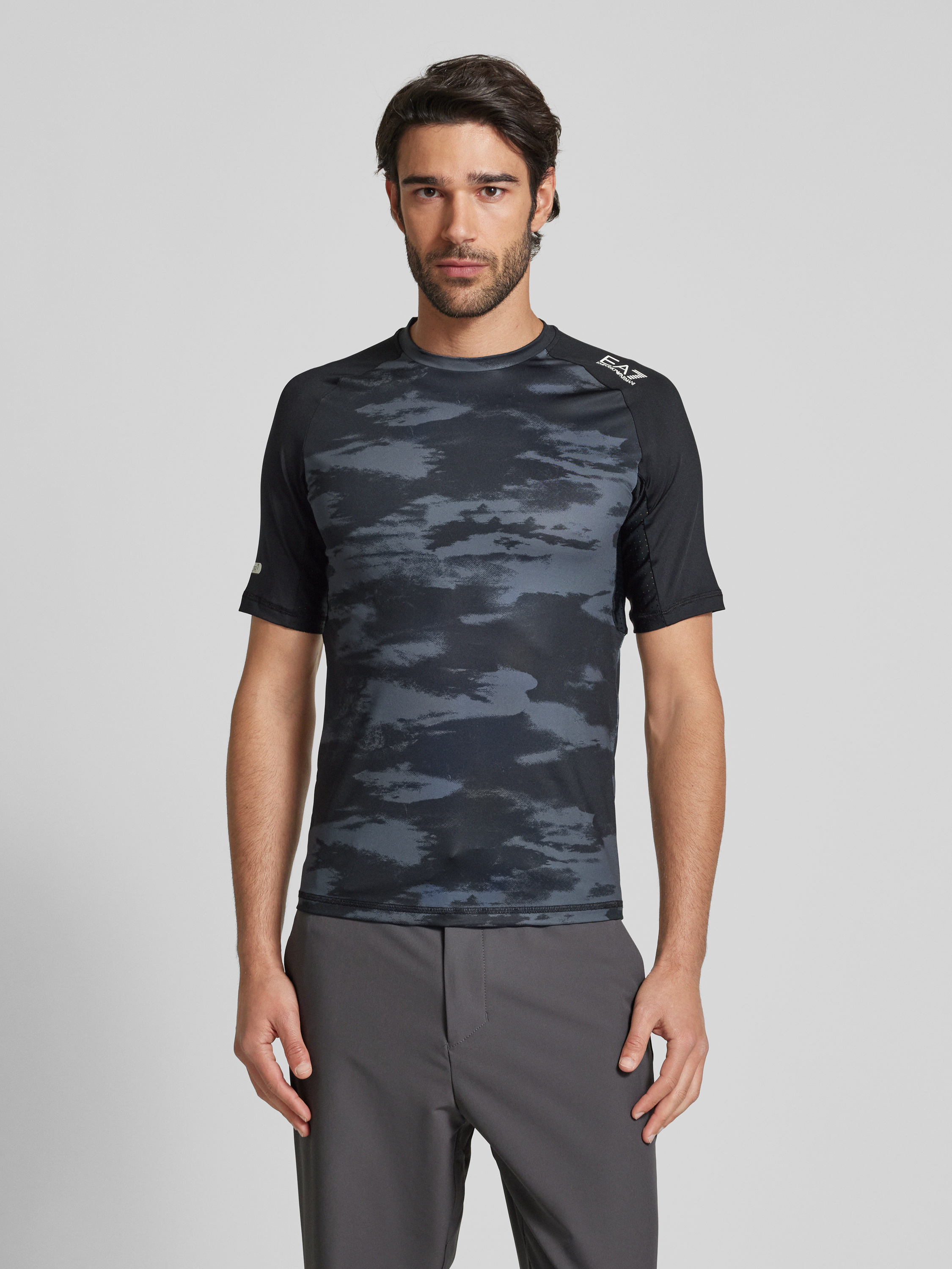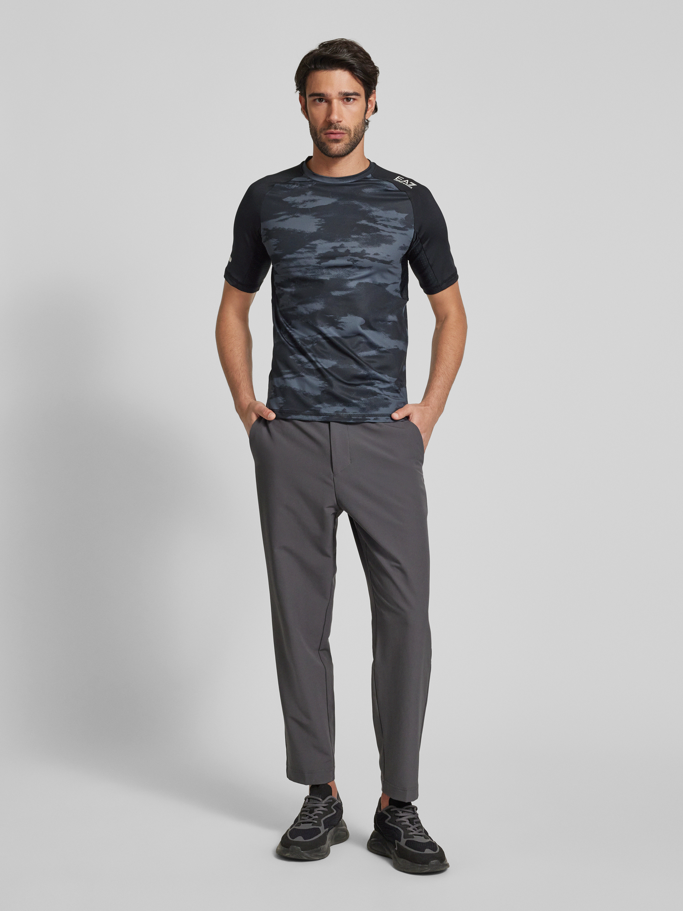 Das T-Shirt mit Label-Print Modell 'VIGOR' von EA7 Emporio Armani beeindruckt durch seinen Material-Mix mit Stretch-Anteil, der für eine angenehme Bewegungsfreiheit sorgt. Der Regular Fit bietet eine komfortable Passform, während der gerippte Rundhalsausschnitt den Look stilvoll abrundet. Ideal für lässige Gelegenheiten.