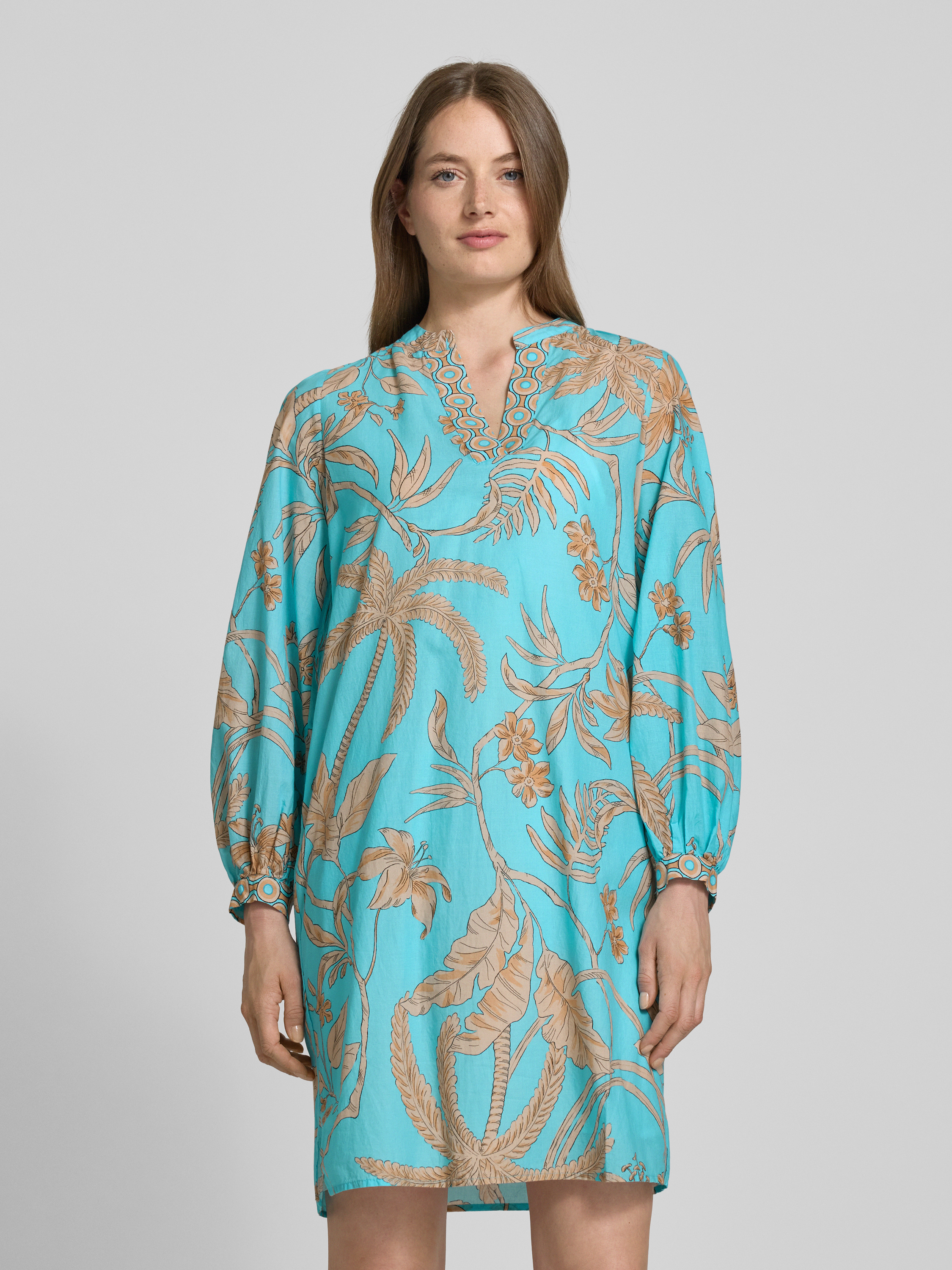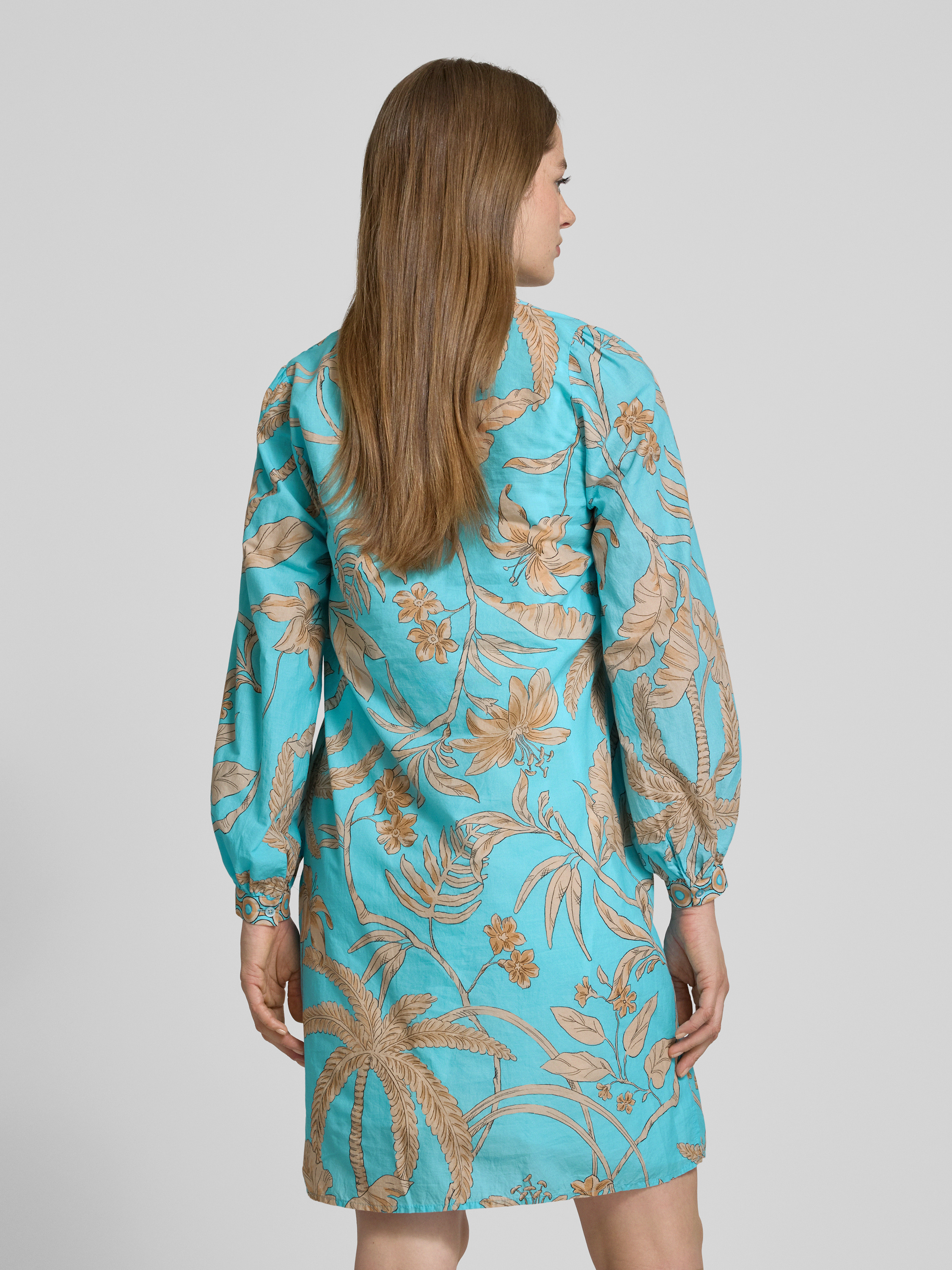 Das knielange Kleid von Emily Van den Bergh aus reiner Baumwolle kombiniert lässigen Tragekomfort mit modischem Design. Der lockere Schnitt und die markanten Ballonärmel sorgen für Bewegungsfreiheit und Stil. Der Tunikakragen verleiht dem Kleid eine elegante Note.