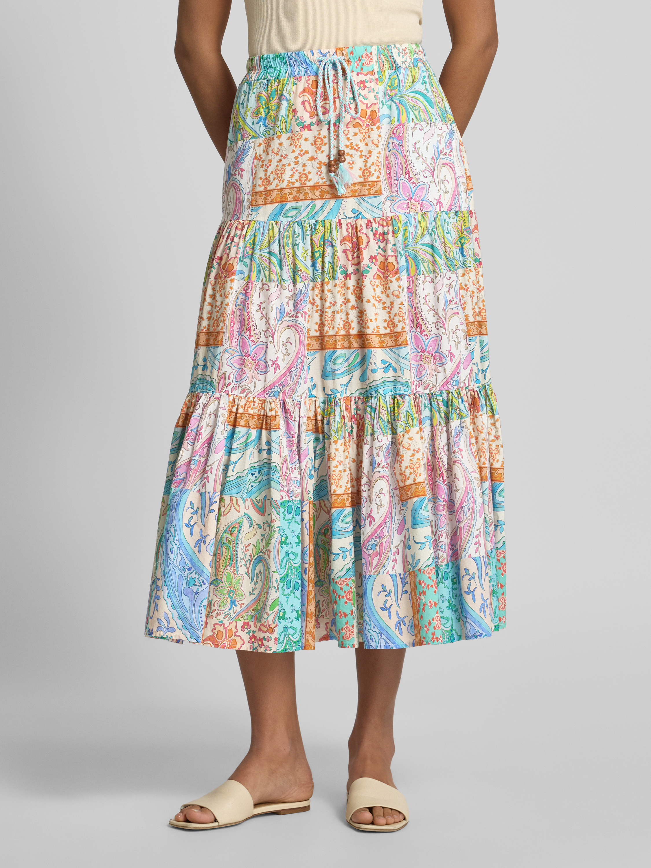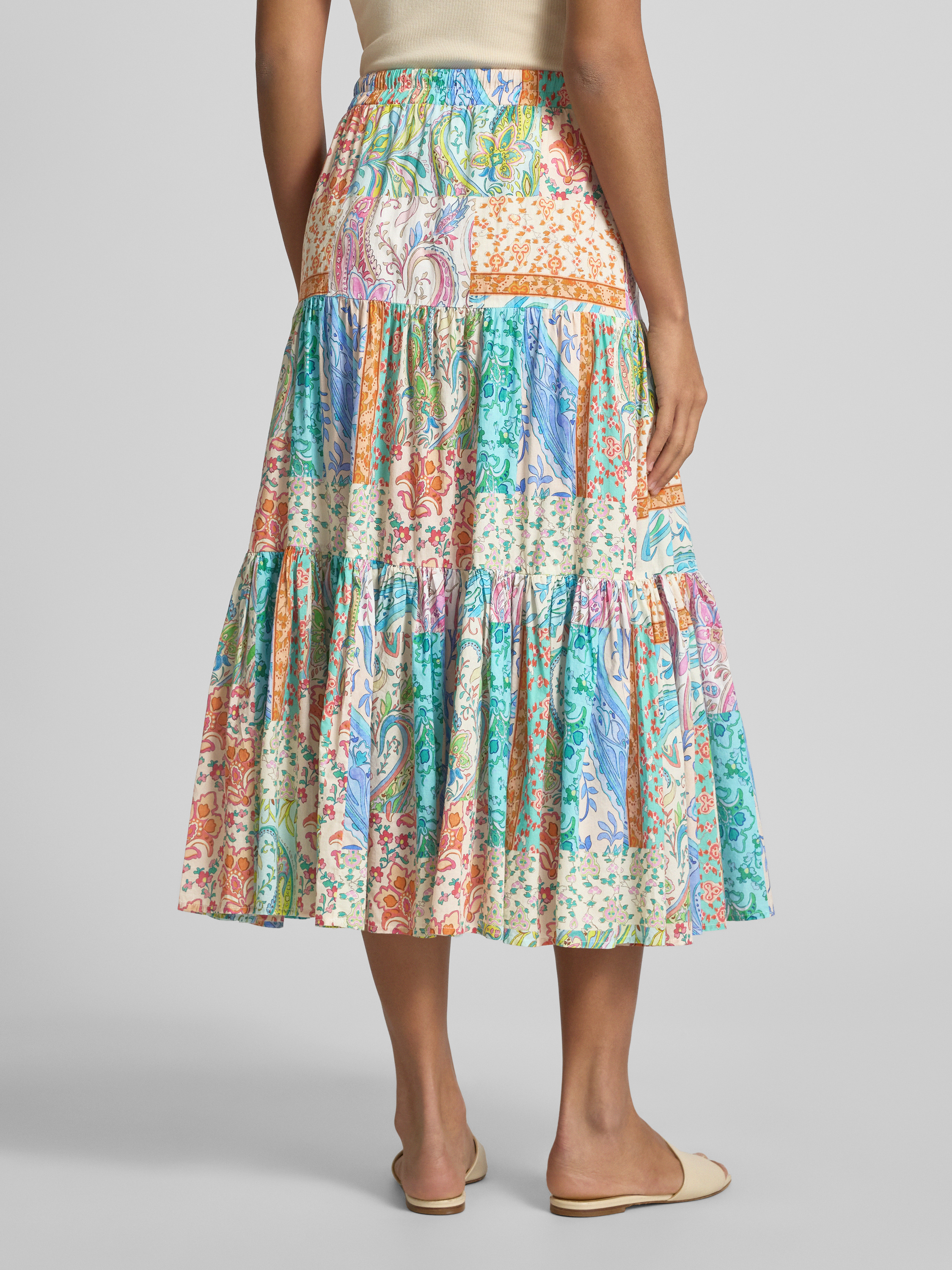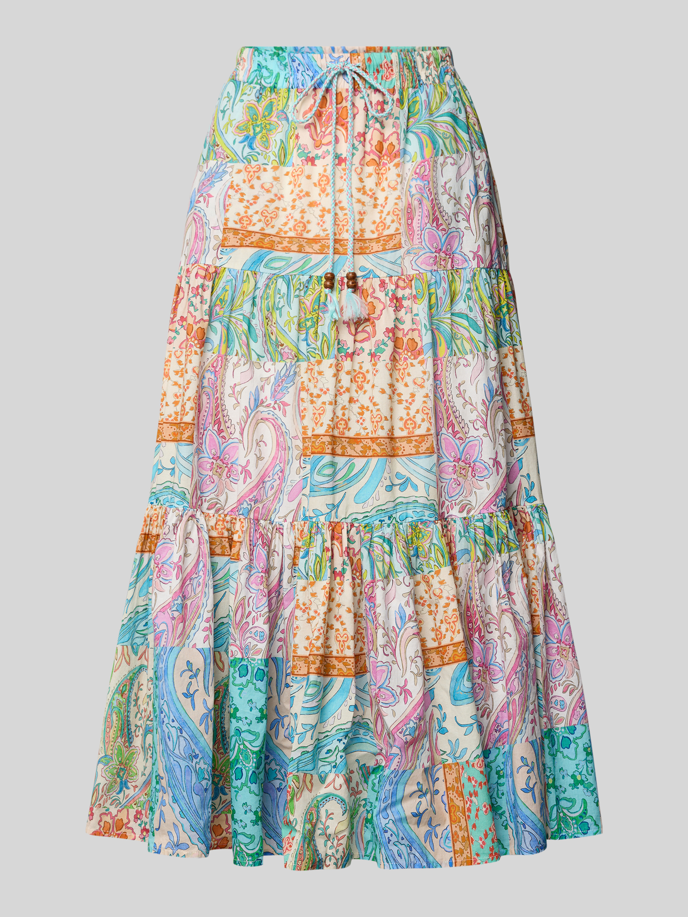 Der Maxirock von Emily Van den Bergh bringt durch seine A-Linie und den Stufen-Look eine lässige Eleganz in jedes Outfit. Aus reiner Baumwolle gefertigt, bietet er einen angenehmen Tragekomfort. Der elastische Bund mit Tunnelzug sorgt für eine flexible Passform.