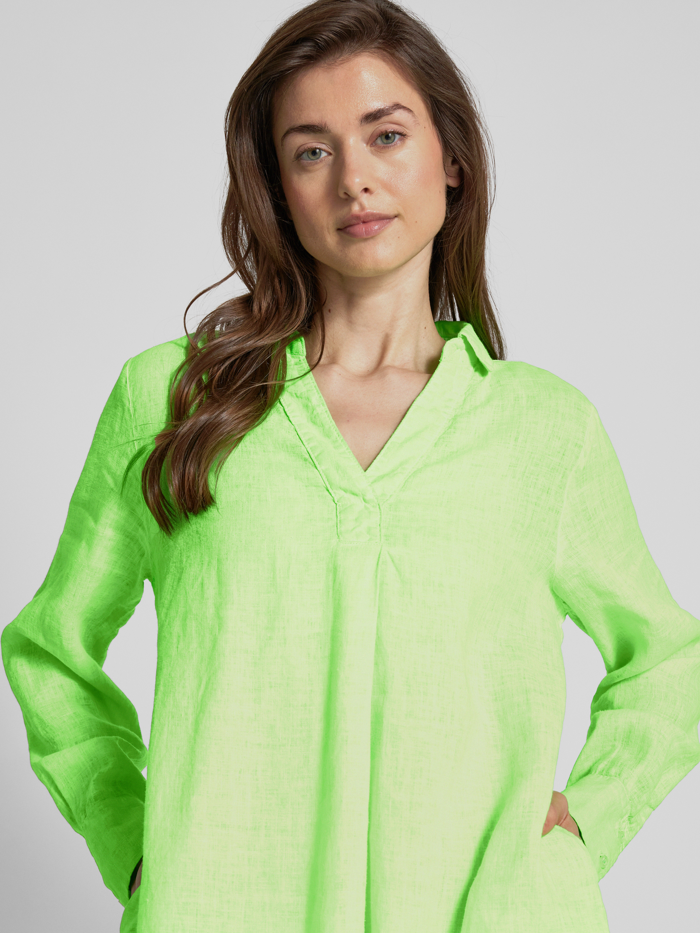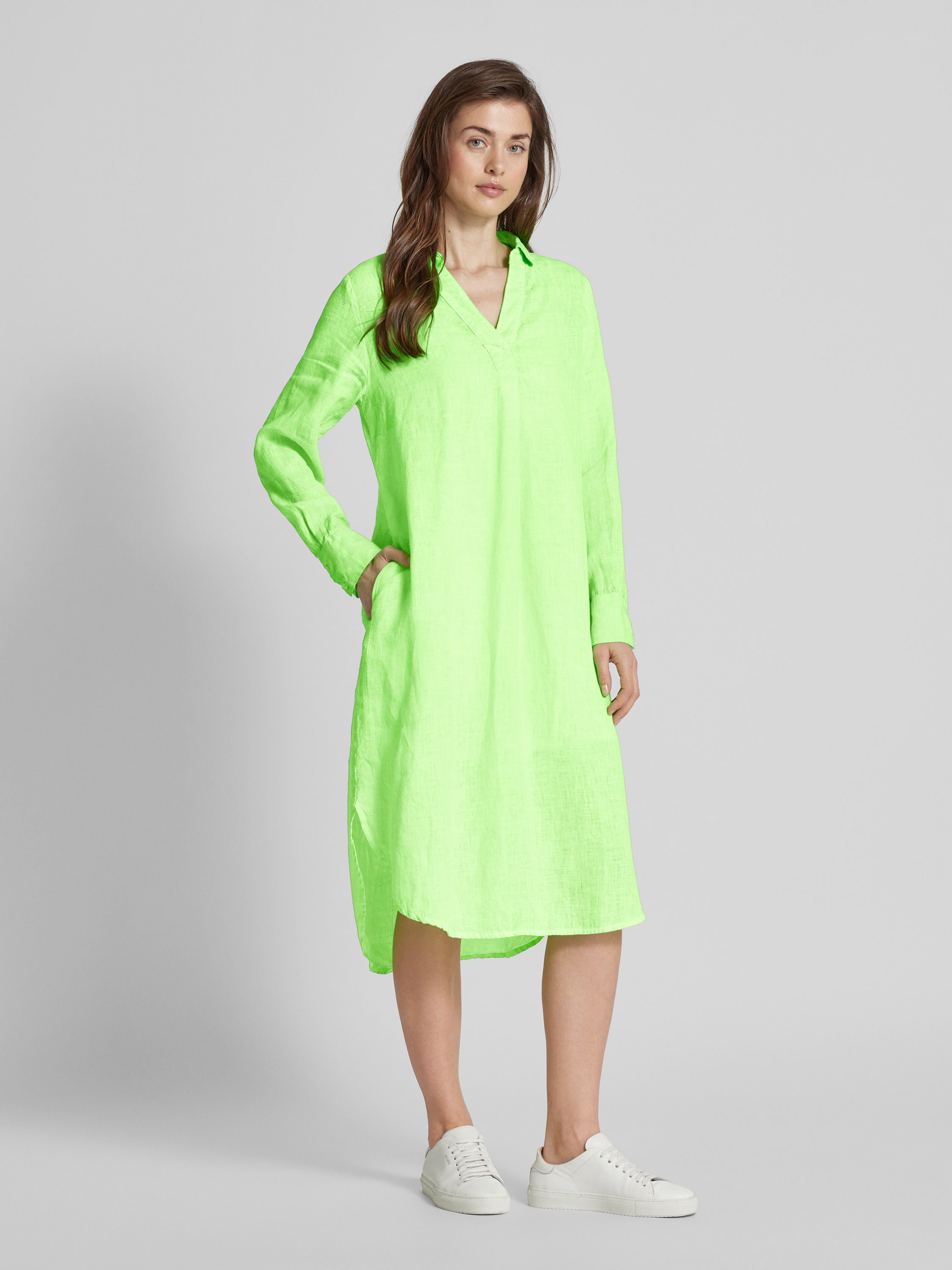Emily Van den BerghTunikakleid aus Leinen mit Umlegekragen in neon gruen