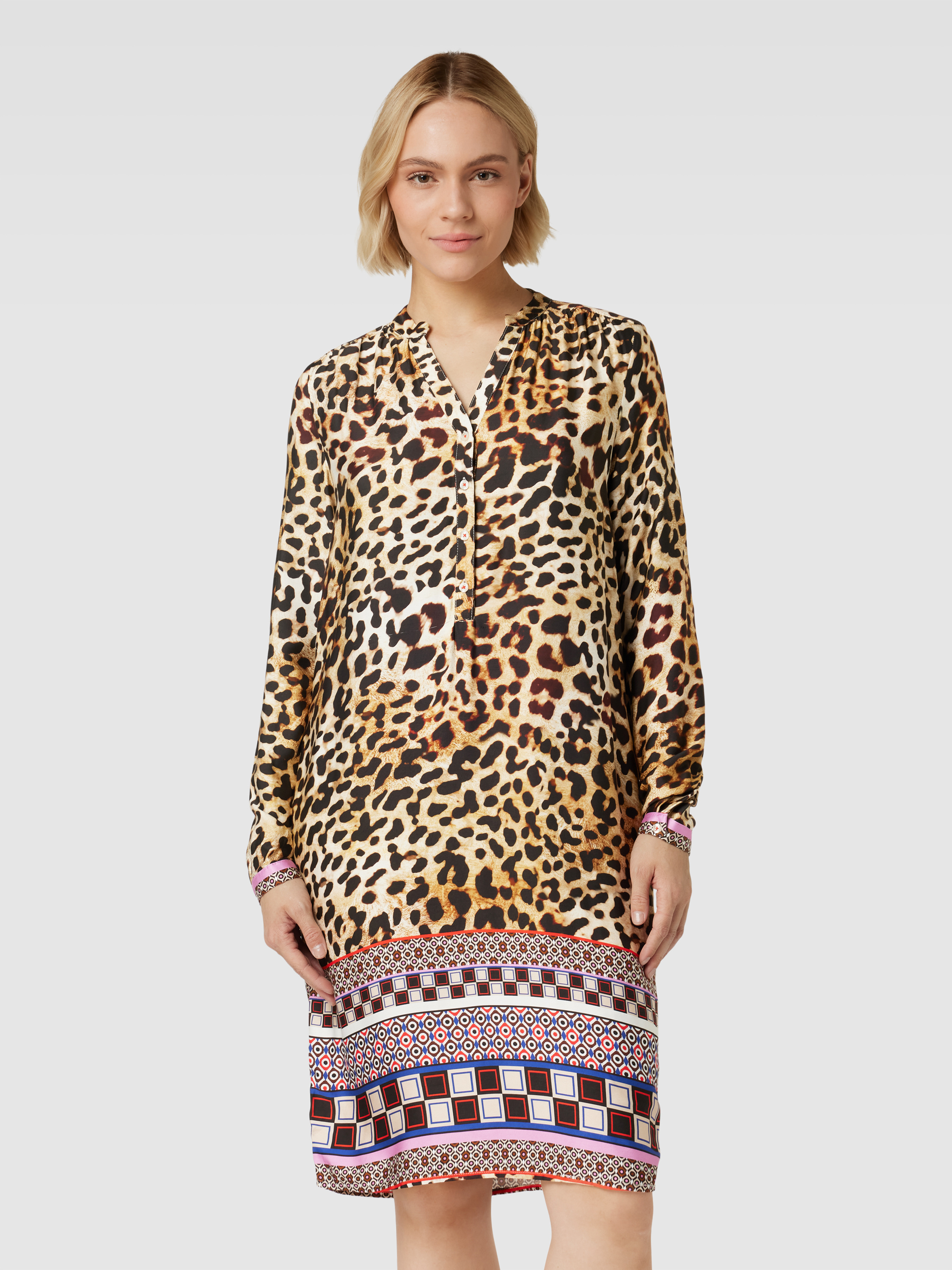 Das Tunikakleid von Emily Van den Bergh vereint lässigen Komfort mit stilvollem Design. Gefertigt aus reiner Viskose, fällt der lockere Schnitt angenehm leicht und sorgt für ein angenehmes Tragegefühl. Der auffällige Animal-Print verleiht jedem Outfit eine modische Note.
