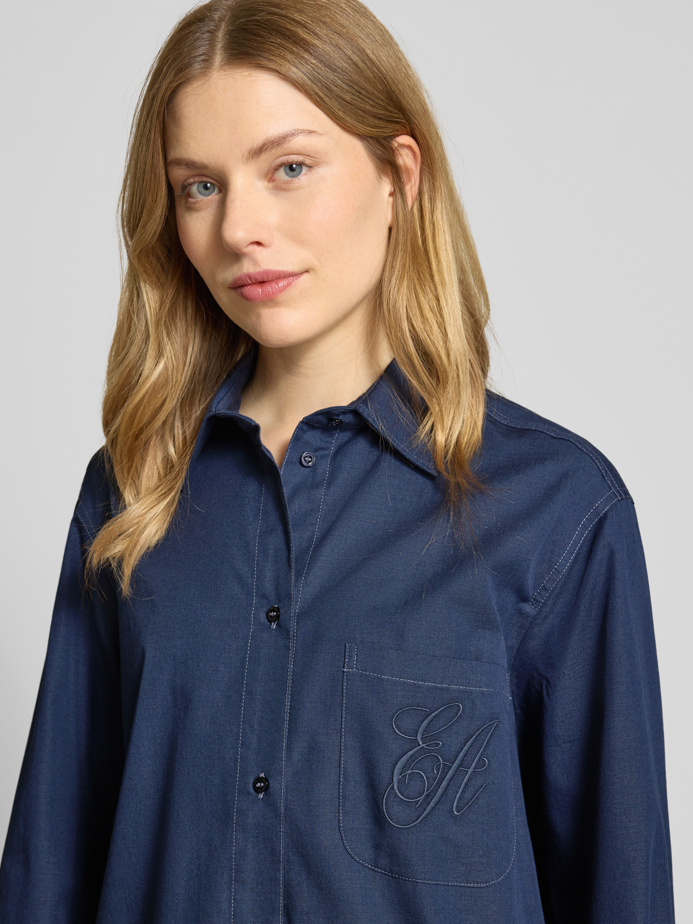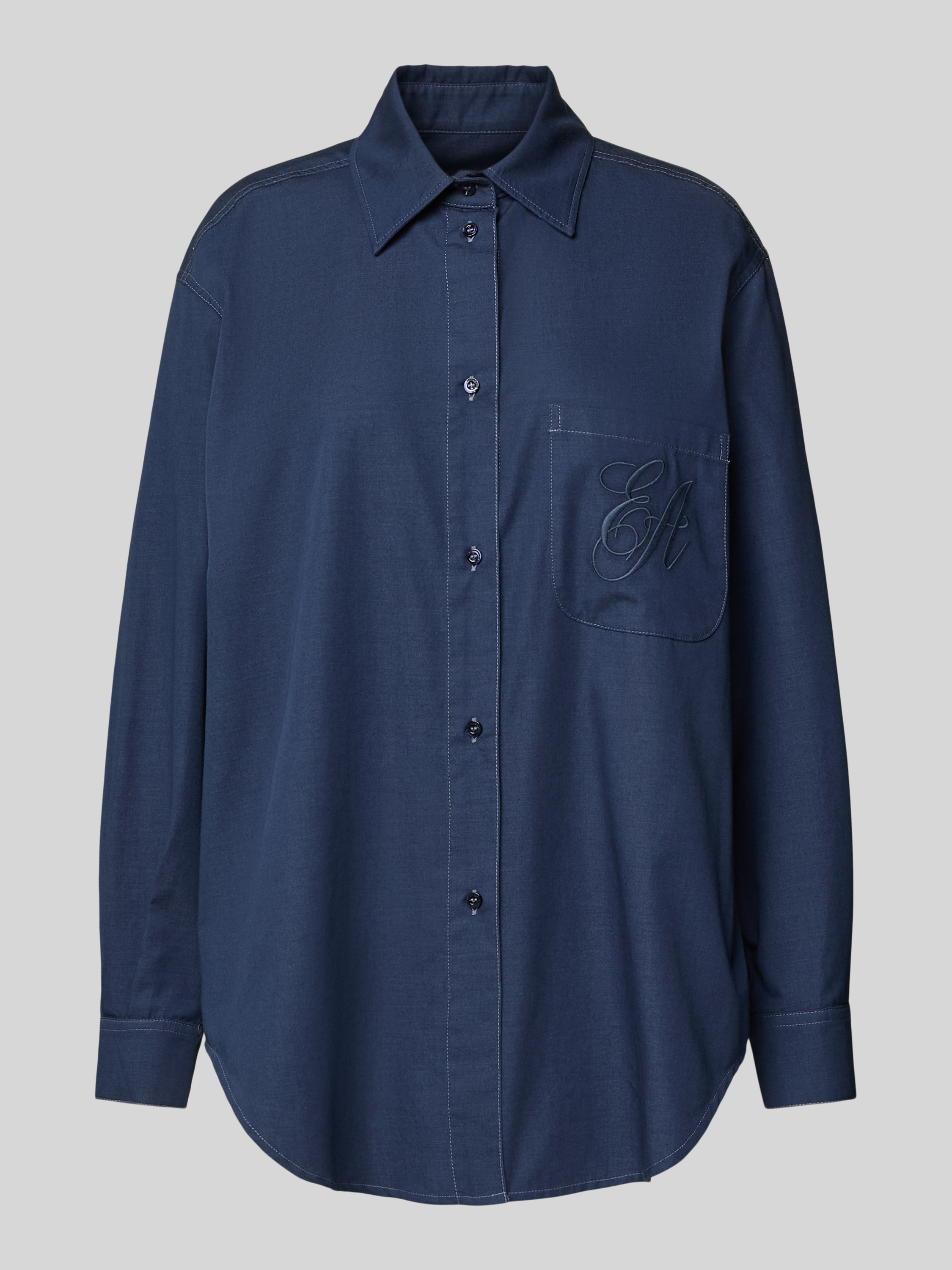 Emporio ArmaniOversized Hemdbluse mit Label-Stitching in marine