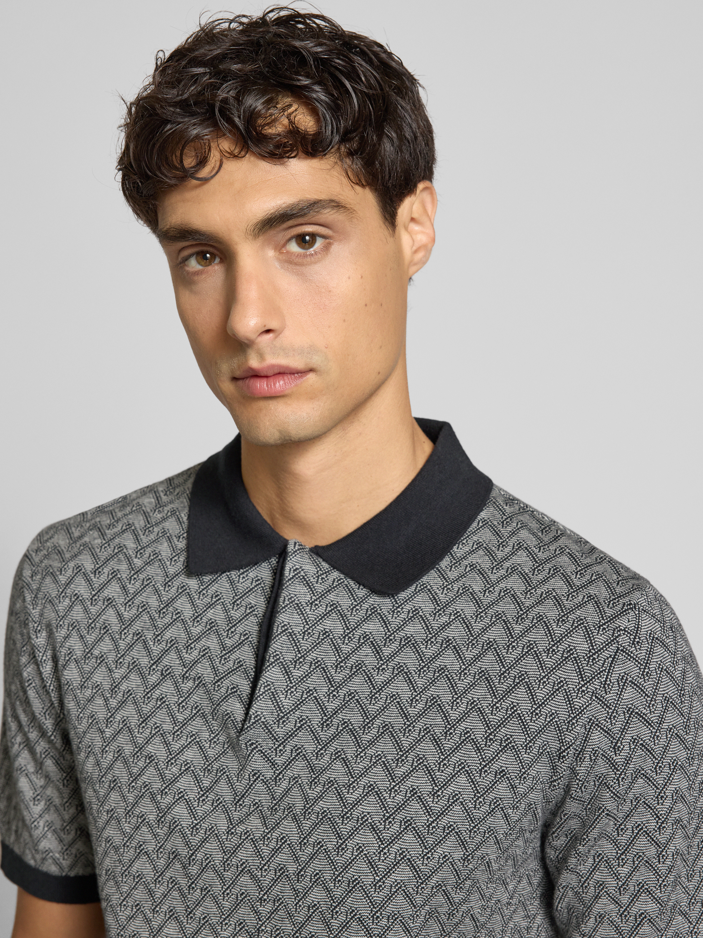 Emporio ArmaniPoloshirt mit Kaschmir-Anteil und kurzer Knopfleiste in weiss