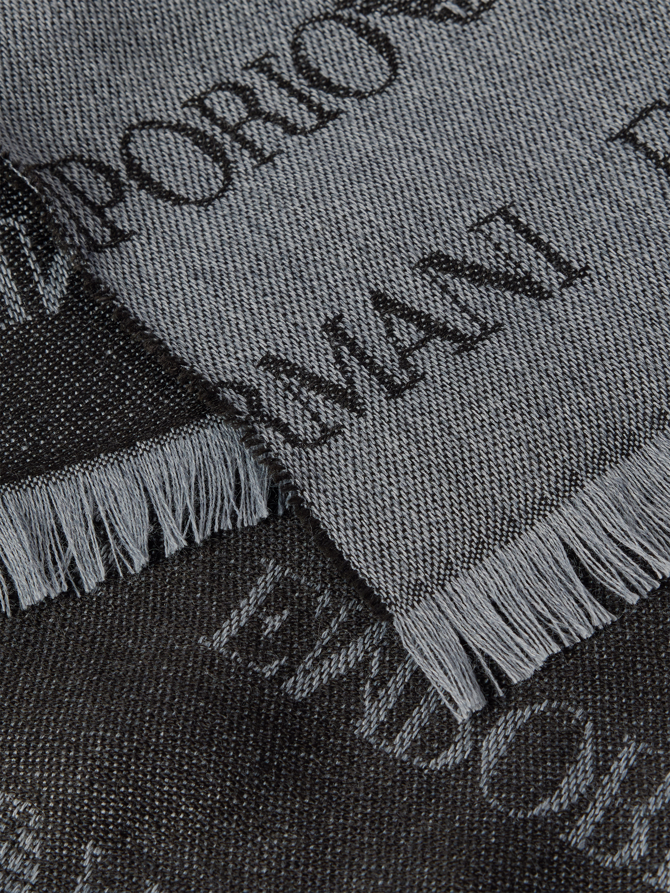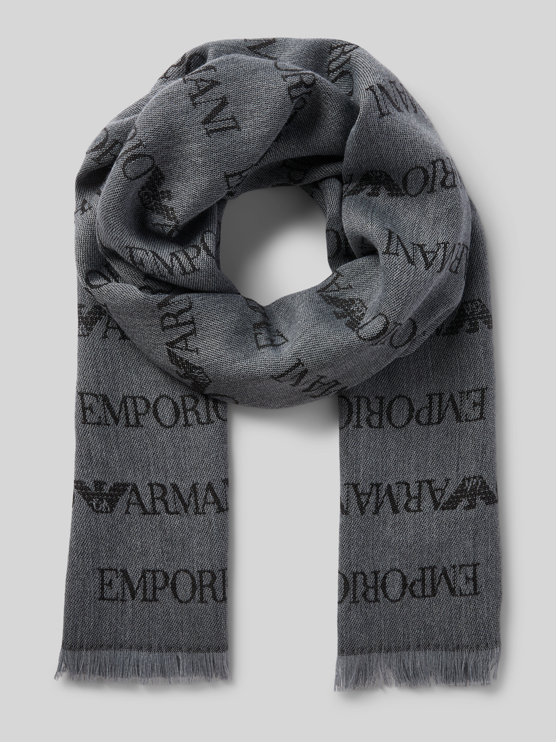 Schal aus Schurwolle mit Logo-Muster und Fransen in hellgrau