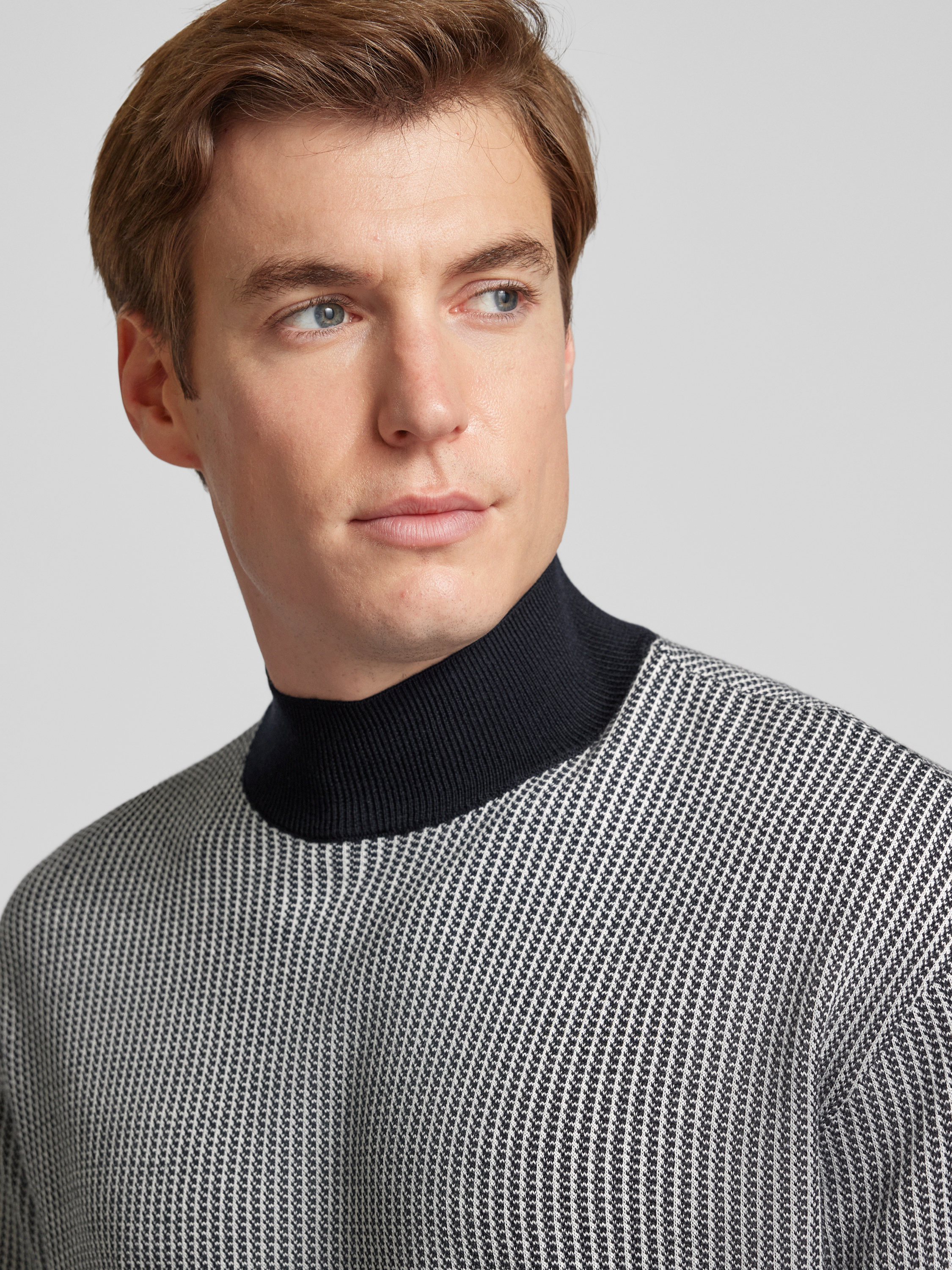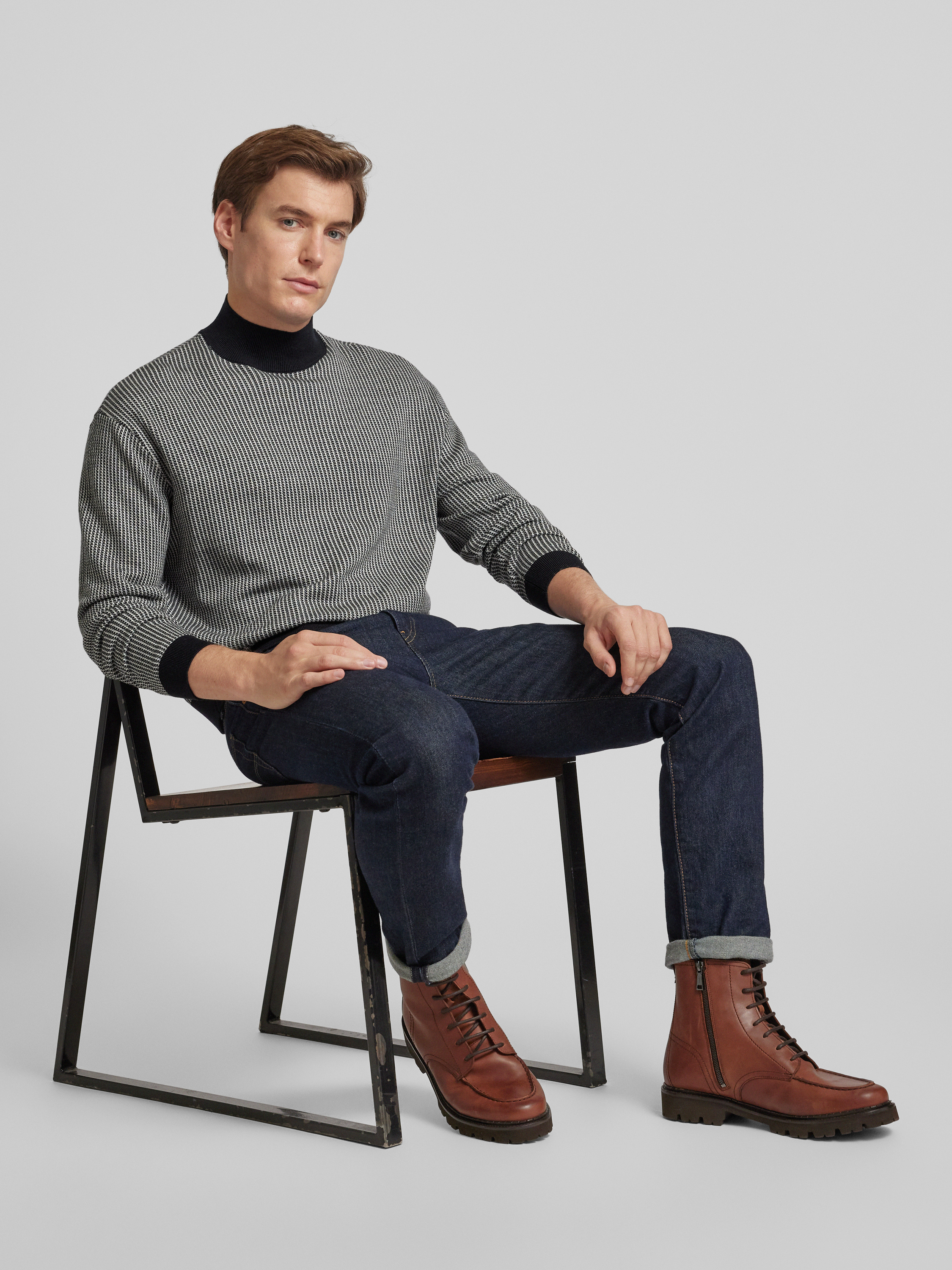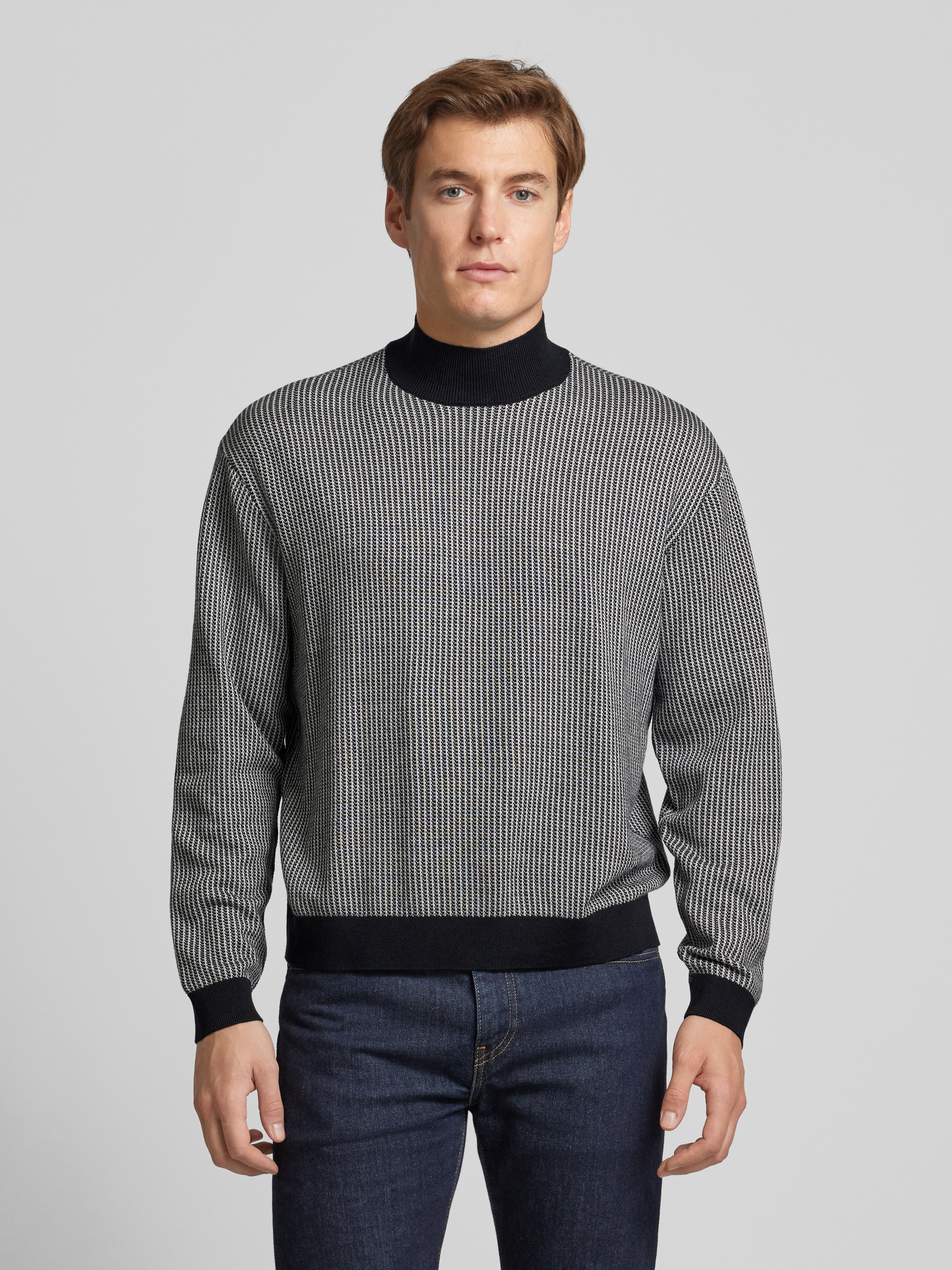 Der Herren Strickpullover von Emporio Armani aus reiner Baumwolle bietet durch seinen Regular Fit eine angenehme Passform. Der Stehkragen verleiht dem Pullover eine dezente Eleganz, während die gerippten Abschlüsse für zusätzlichen Komfort sorgen. Das Label-Stitching setzt einen stilvollen Akzent.
