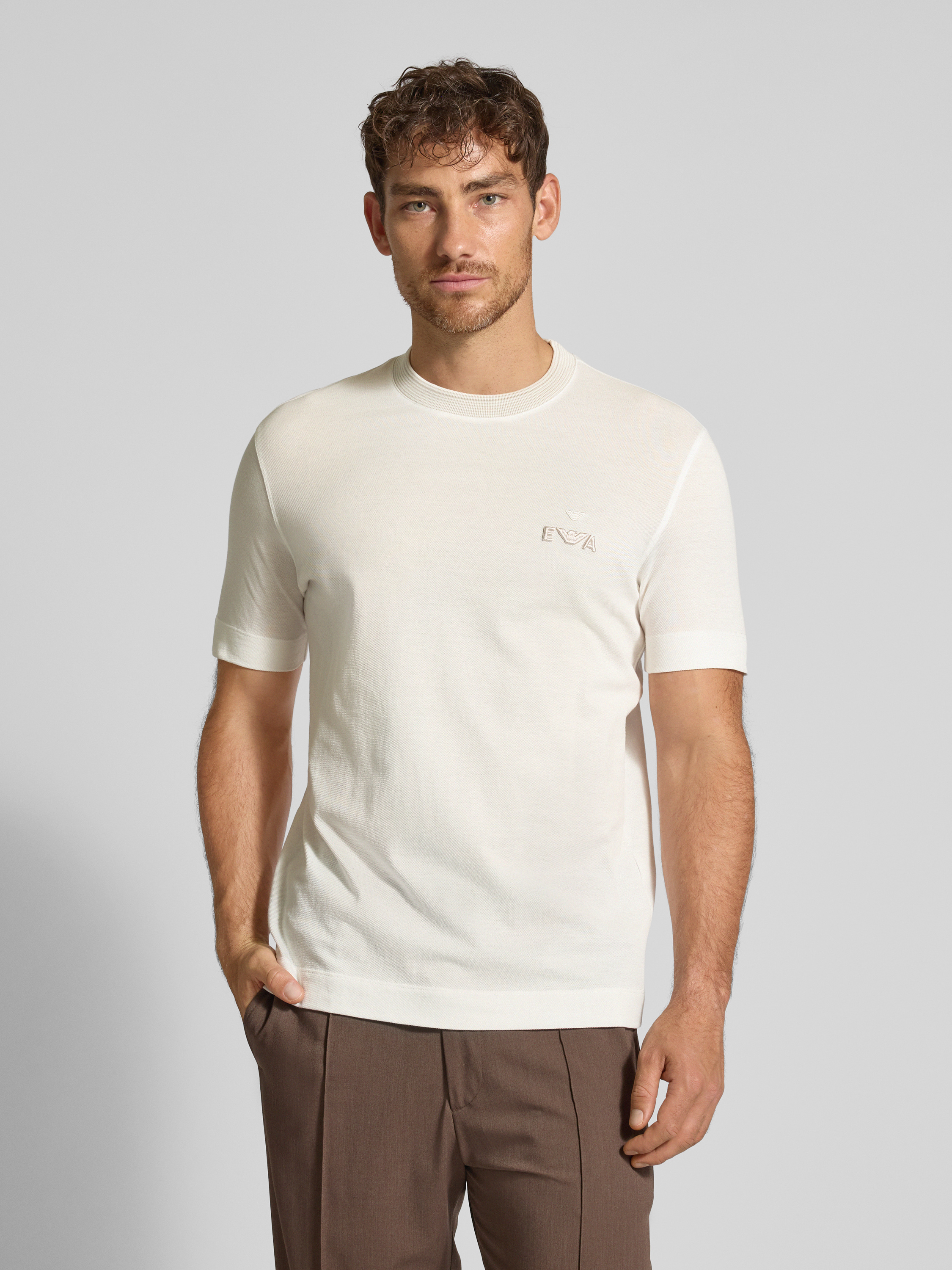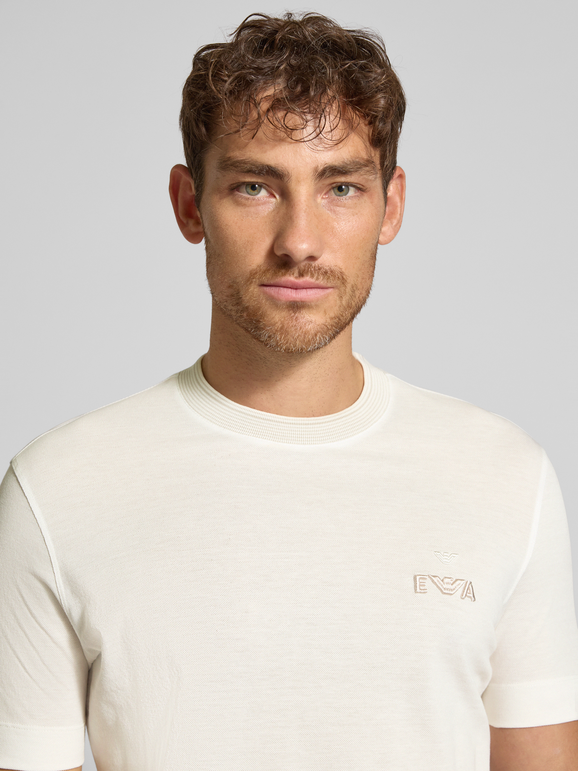 Emporio ArmaniT-Shirt mit Label-Stitching und Rundhalsausschnitt in offwhite