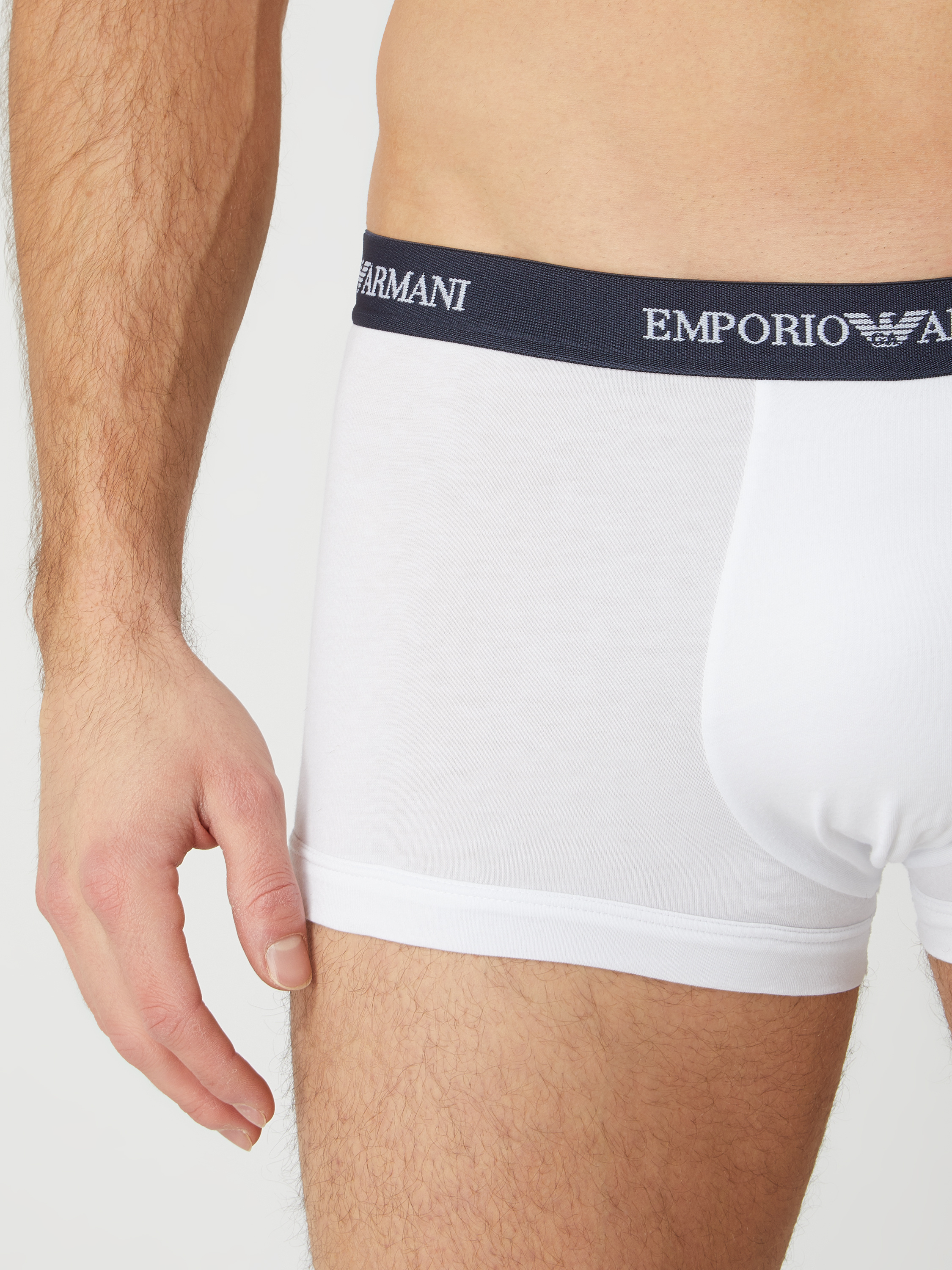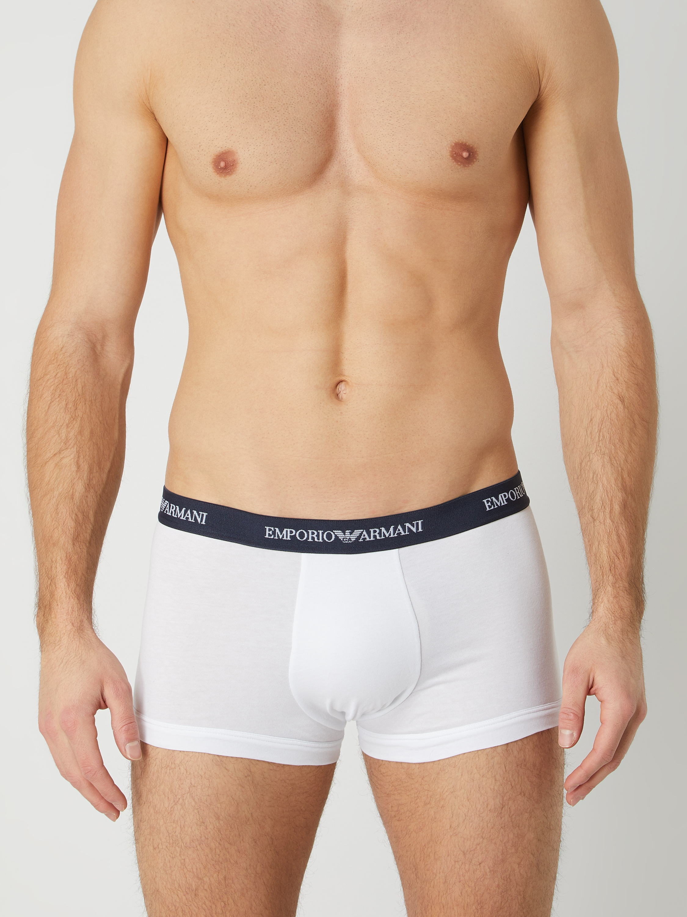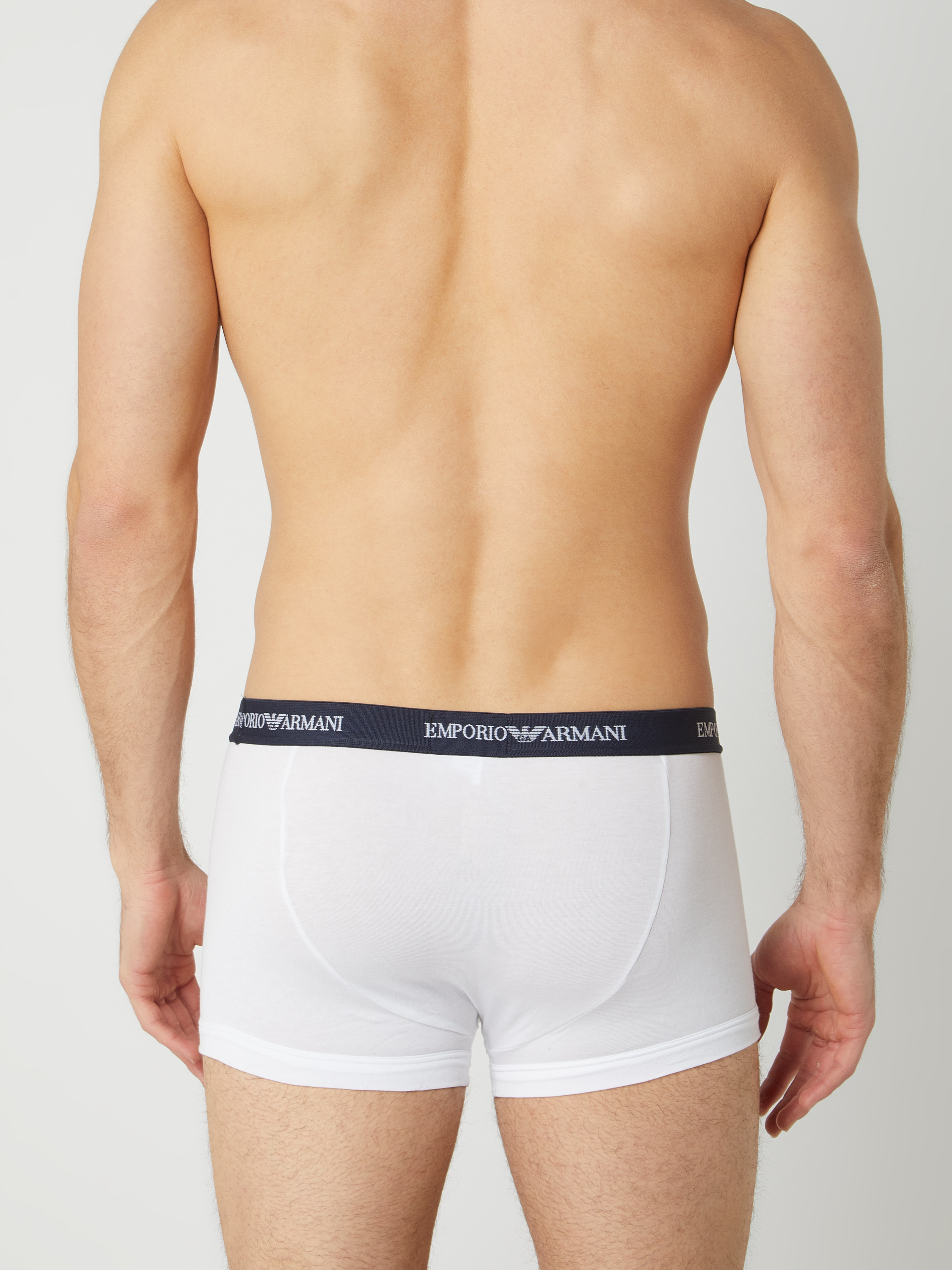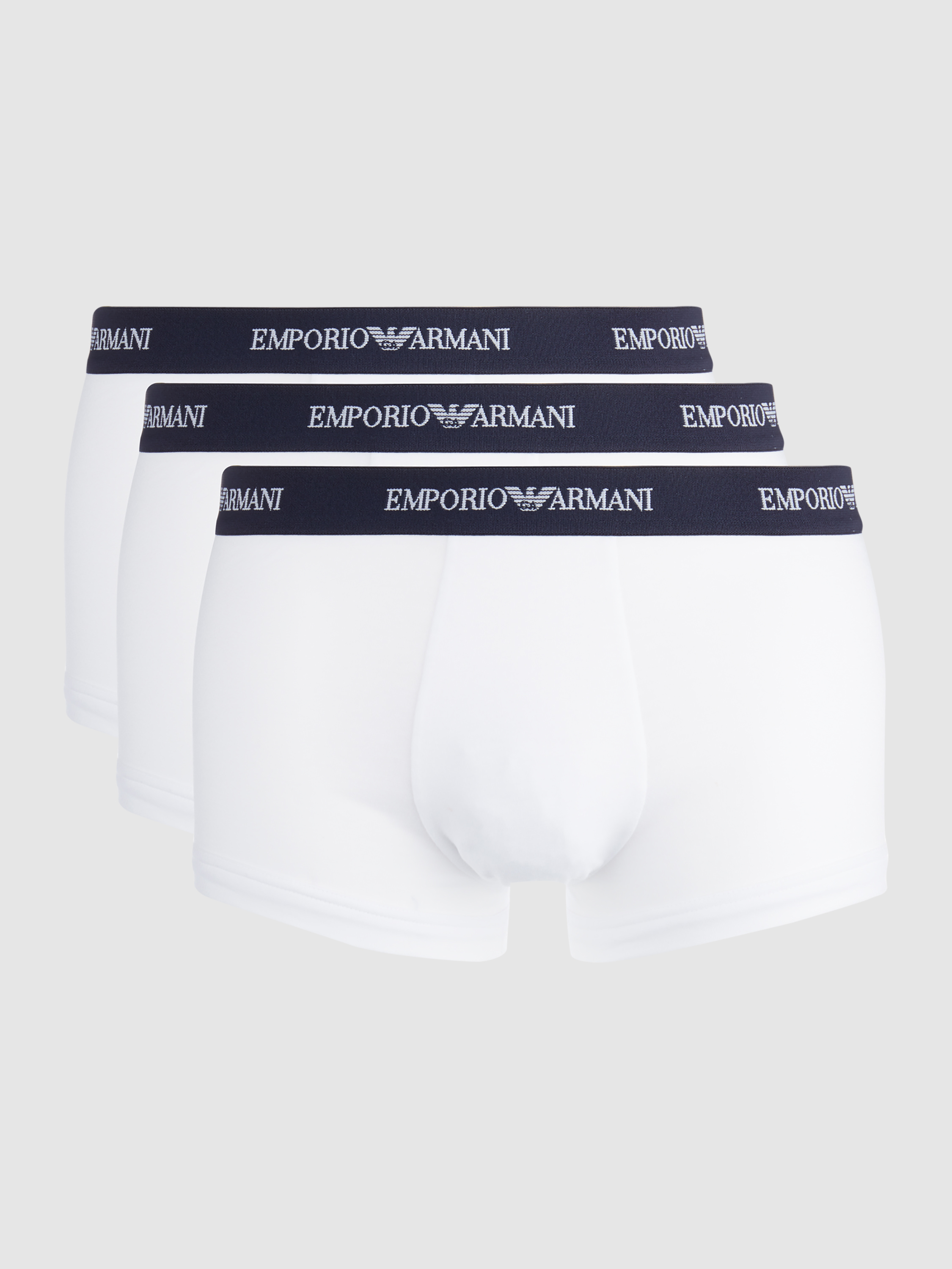 Der Trunks im 3er-Pack von Emporio Armani überzeugt durch einen körpernahen Schnitt, der dank des Baumwoll-Elasthan-Mixes hohen Tragekomfort bietet. Der elastische Bund mit eingewebtem Logo sorgt für einen sicheren Sitz. Perfekt für alle, die Wert auf Stil und Bequemlichkeit legen.