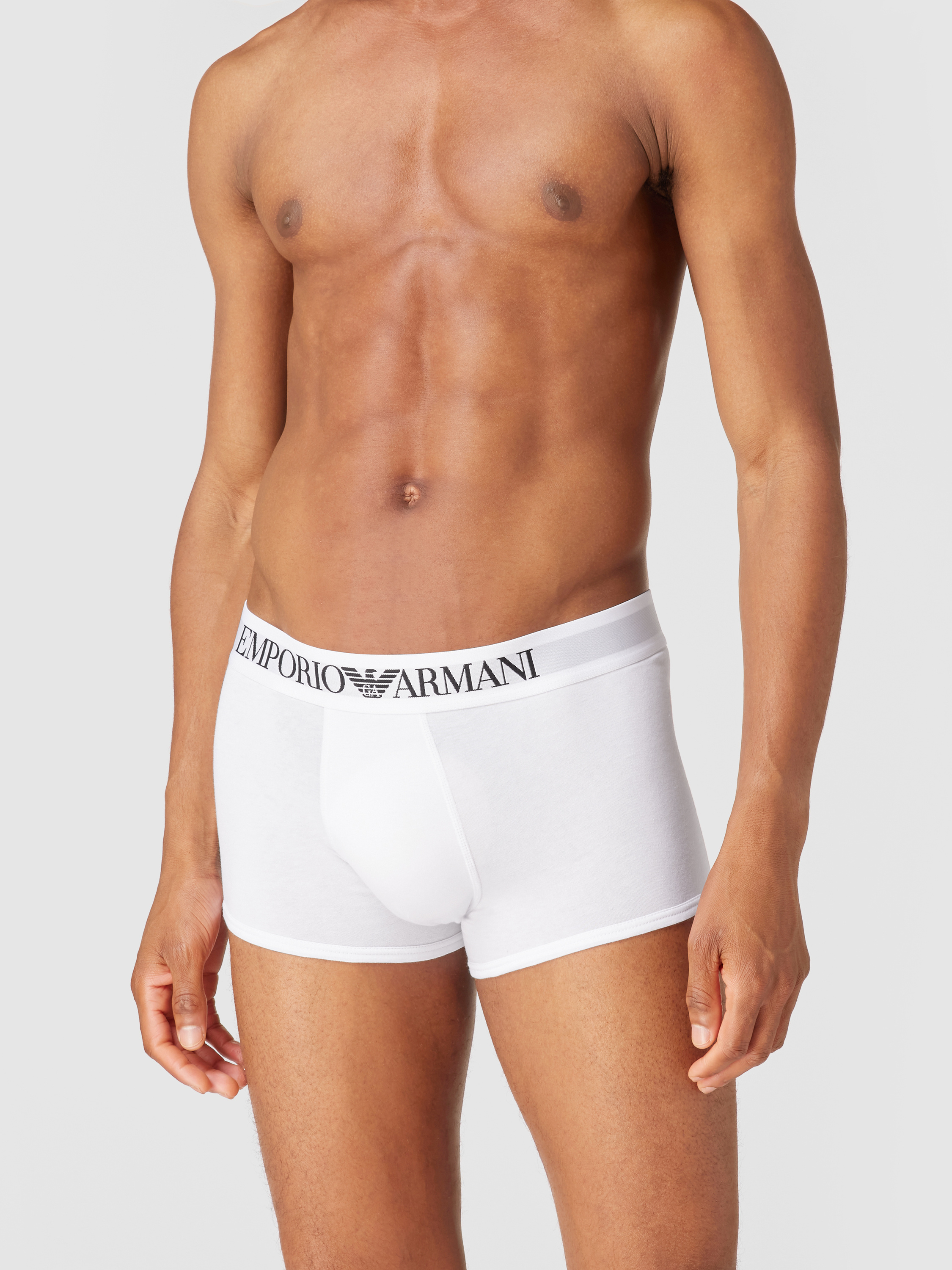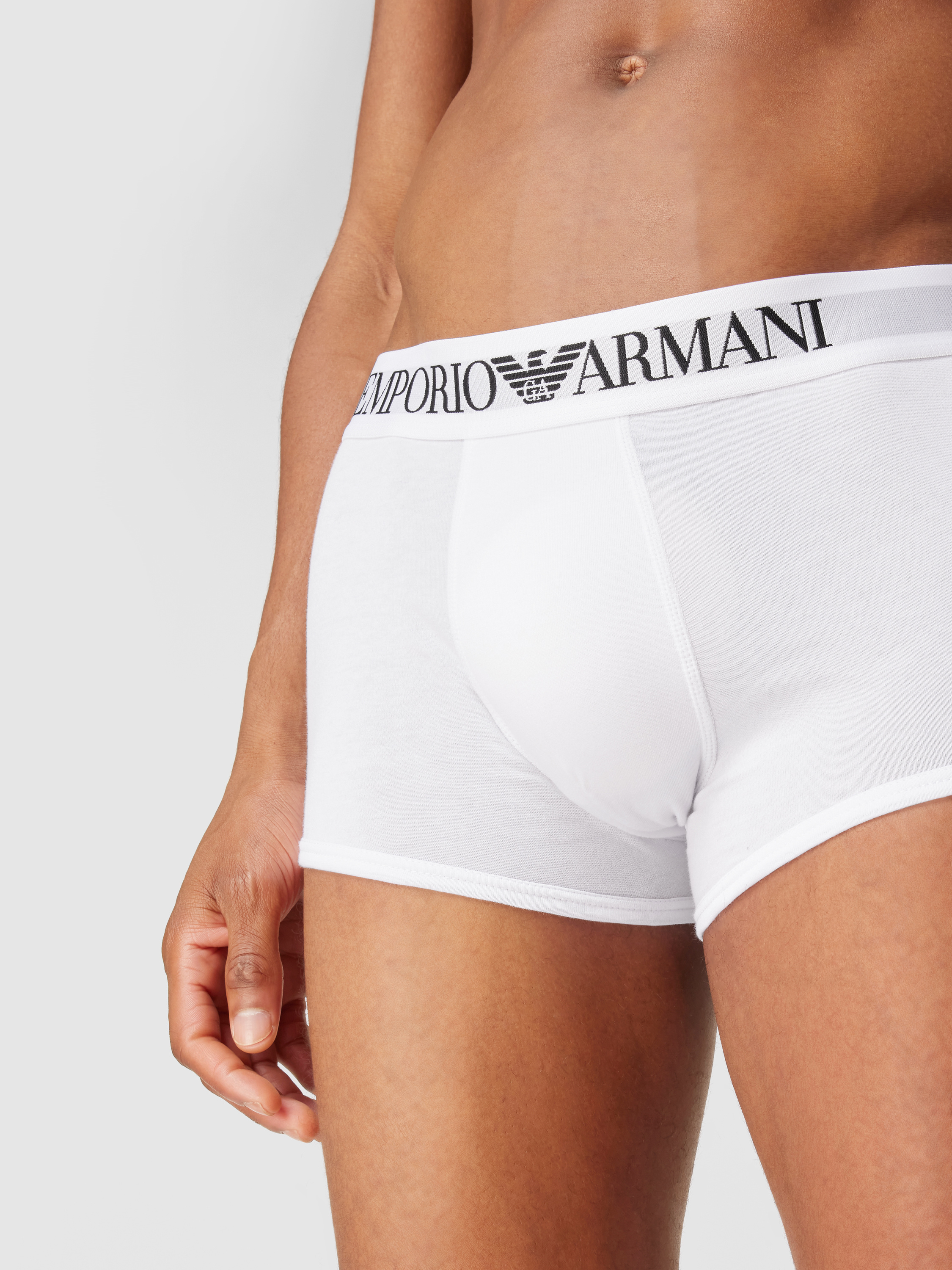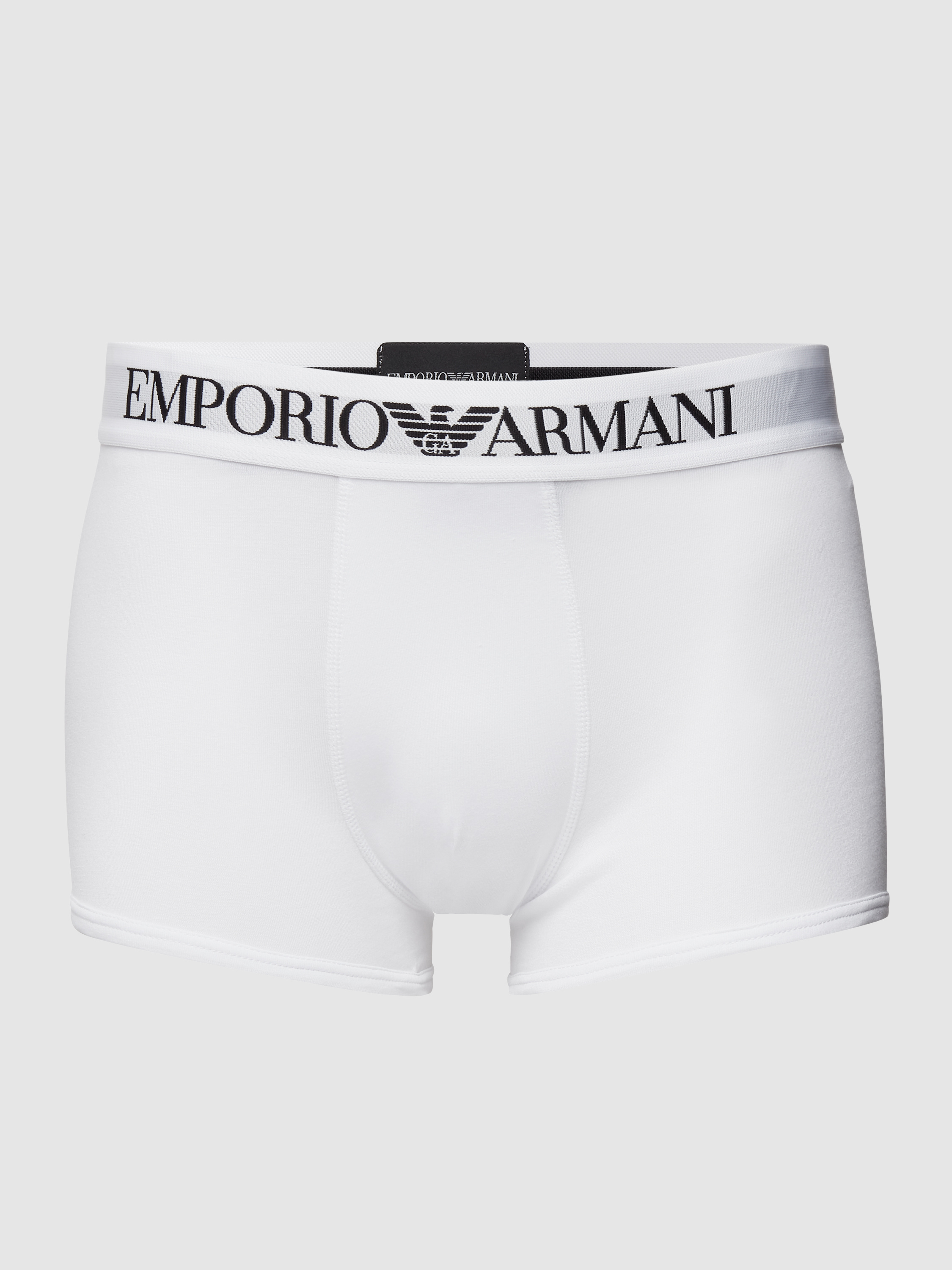 Die Trunks von Emporio Armani, gefertigt aus einem Baumwoll-Elasthan-Mix, passen sich dank ihres eng anliegenden Schnitts angenehm dem Körper an. Der elastische Bund mit Logo sorgt für einen sicheren Halt. Teilungsnähte bieten zusätzliche Formstabilität und unterstützen den bequemen Sitz.
