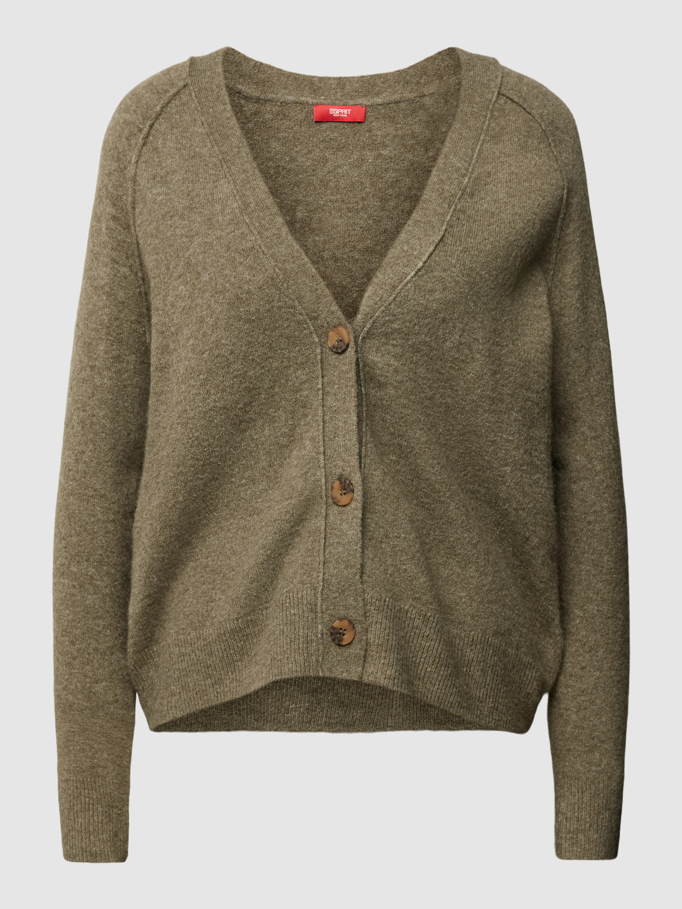 Die Strickjacke von Esprit vereint einen lockeren Schnitt mit einem eleganten V-Ausschnitt, der vielseitig kombinierbar ist. Dank des unifarbenen Designs lässt sich das Modell leicht in jede Garderobe integrieren. Die weiche Materialqualität sorgt für angenehmen Tragekomfort im Alltag.