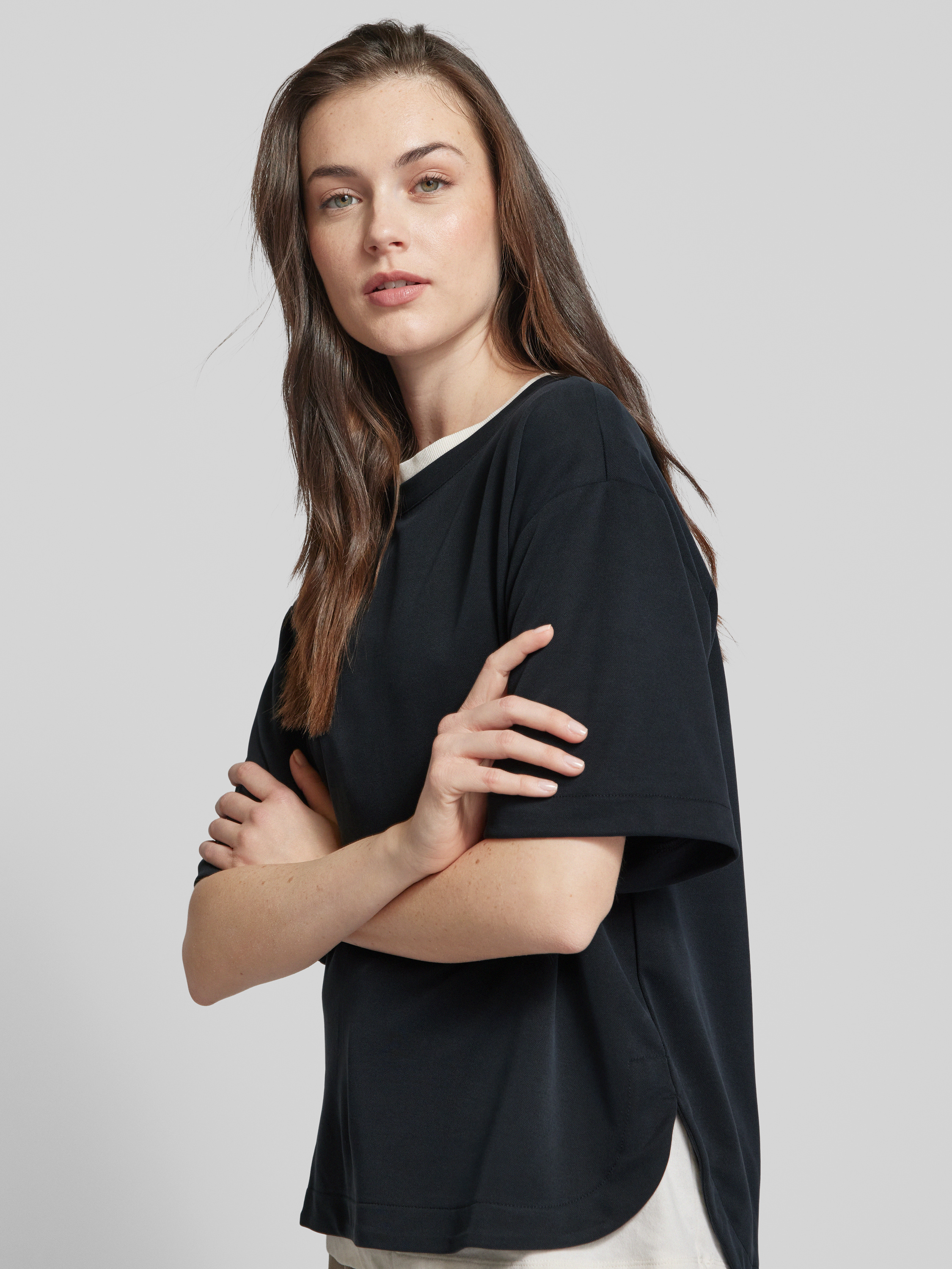 Das T-Shirt von Esprit im lockeren Schnitt sorgt durch den Modal-Mix für ein angenehm weiches Tragegefühl. Dank des unifarbenen Designs lässt es sich vielseitig kombinieren und der Rundhalsausschnitt verleiht eine zeitlose Note. Ideal für entspannte Alltagsoutfits.