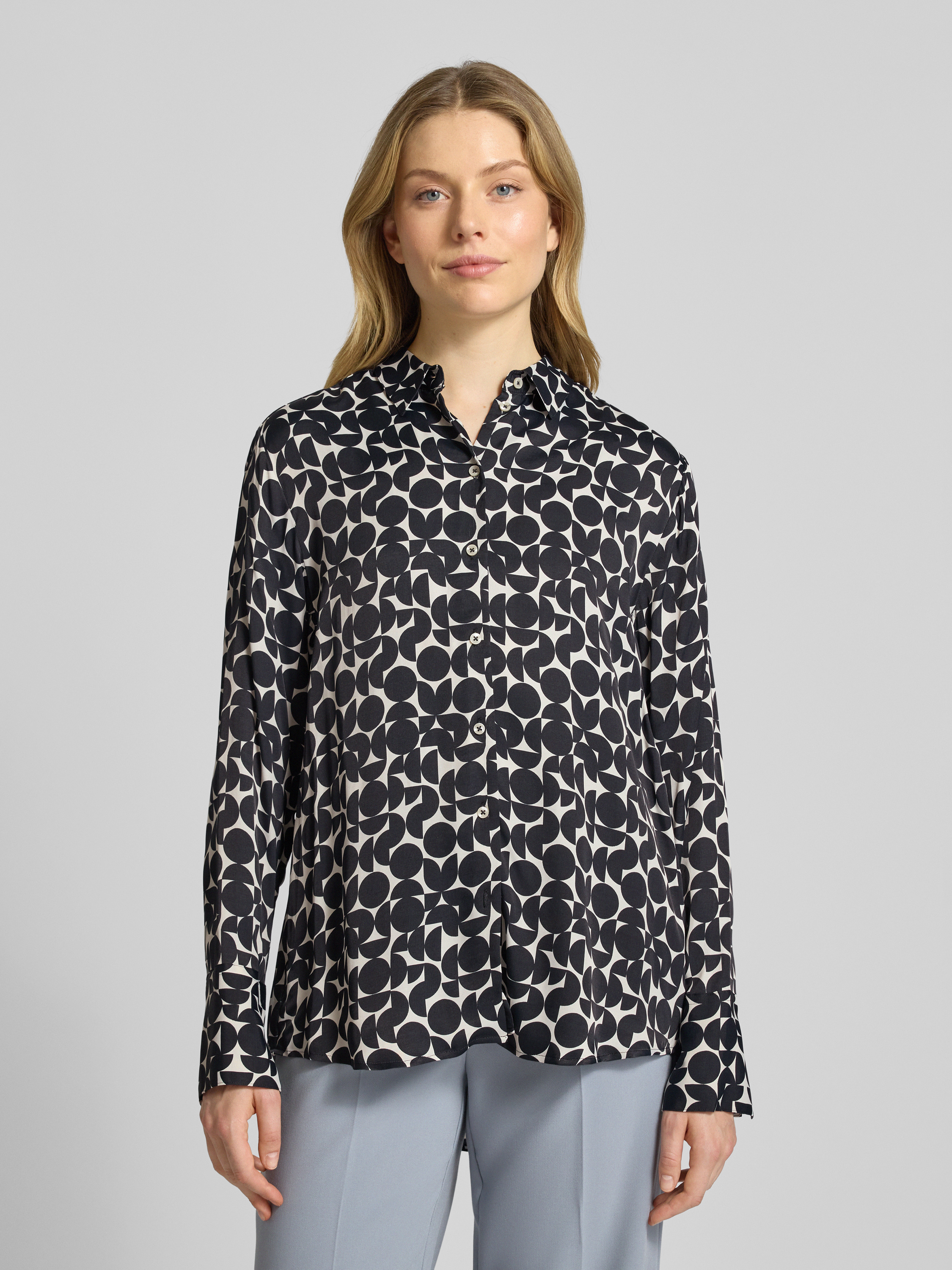 Die ETERNA Hemdbluse zeichnet sich durch ihren lockeren Schnitt aus, der Bewegungsfreiheit ermöglicht und unkomplizierten Tragekomfort schafft. Reine Viskose sorgt für ein angenehm leichtes Gefühl auf der Haut. Mit klassischem Hemdblusenkragen lässt sich das Modell vielseitig kombinieren und passt zu unterschiedlichen Anlässen.