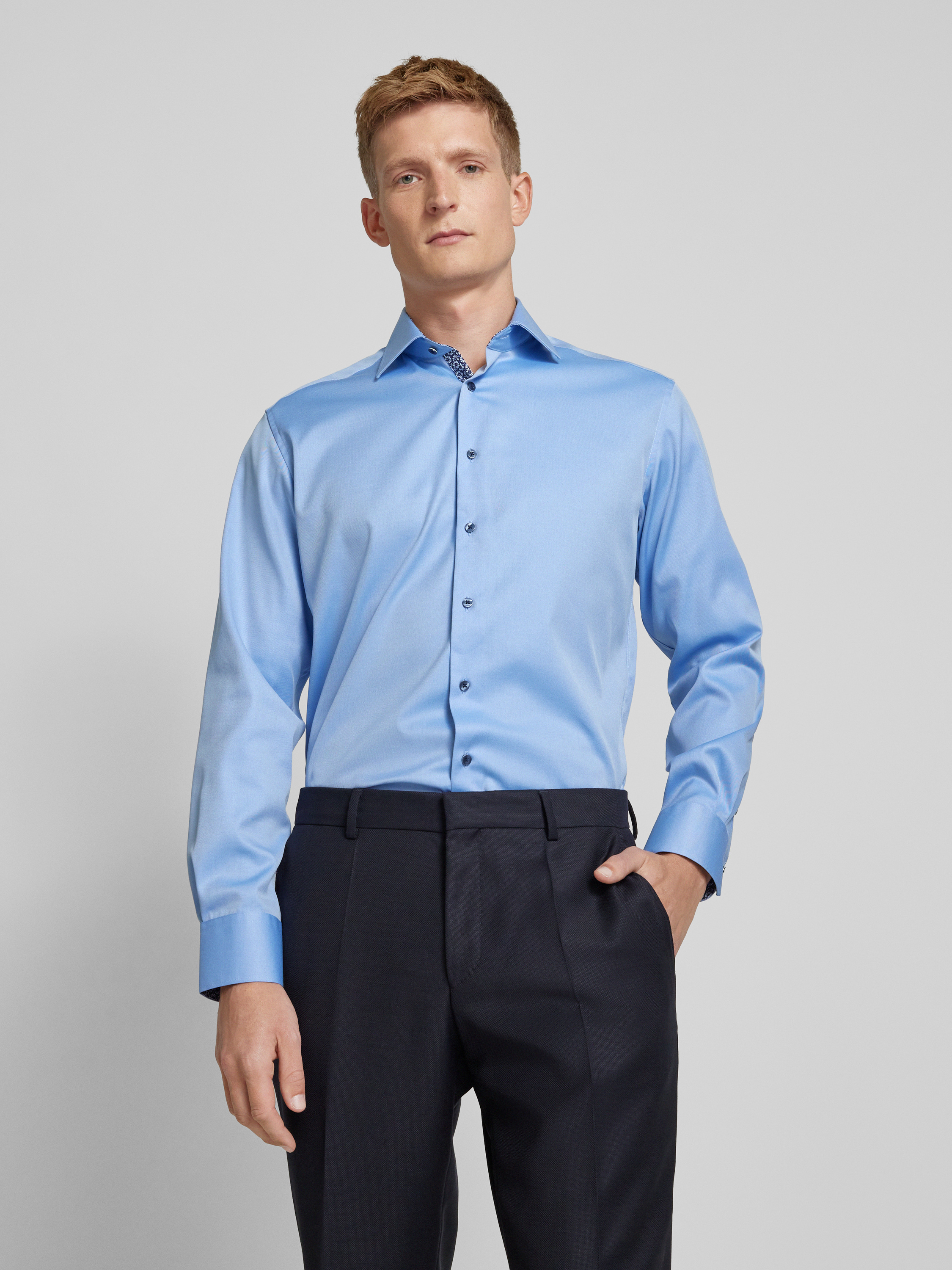 Das Modern Fit Business-Hemd von ETERNA, gefertigt aus reiner Baumwolle, kombiniert Komfort mit einem eleganten Kentkragen. Die Passform ermöglicht Bewegungsfreiheit und verleiht gleichzeitig eine gepflegte Silhouette. Ideal für den Büroalltag, bietet es mit den Sportmanschetten ein angenehmes Tragegefühl.