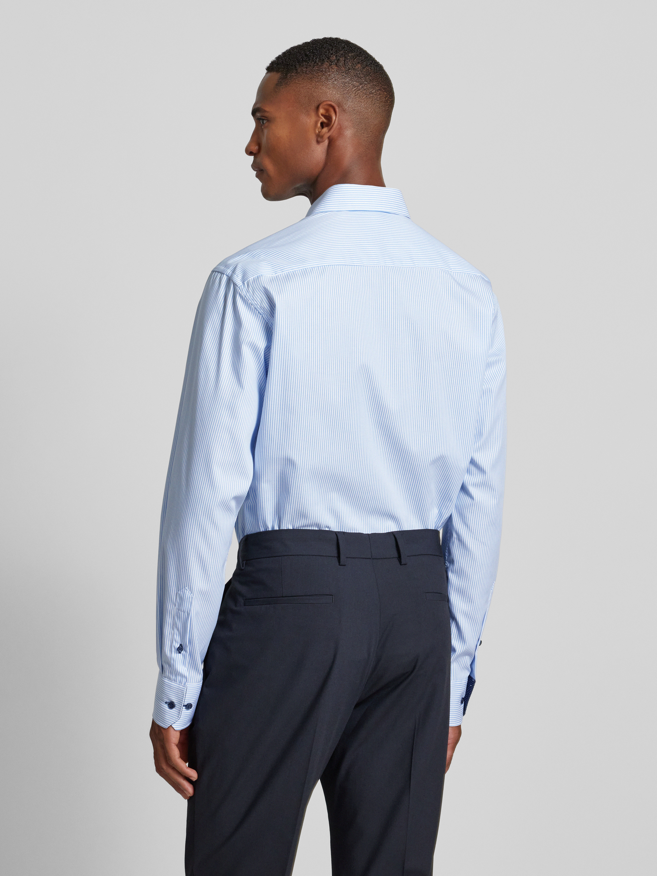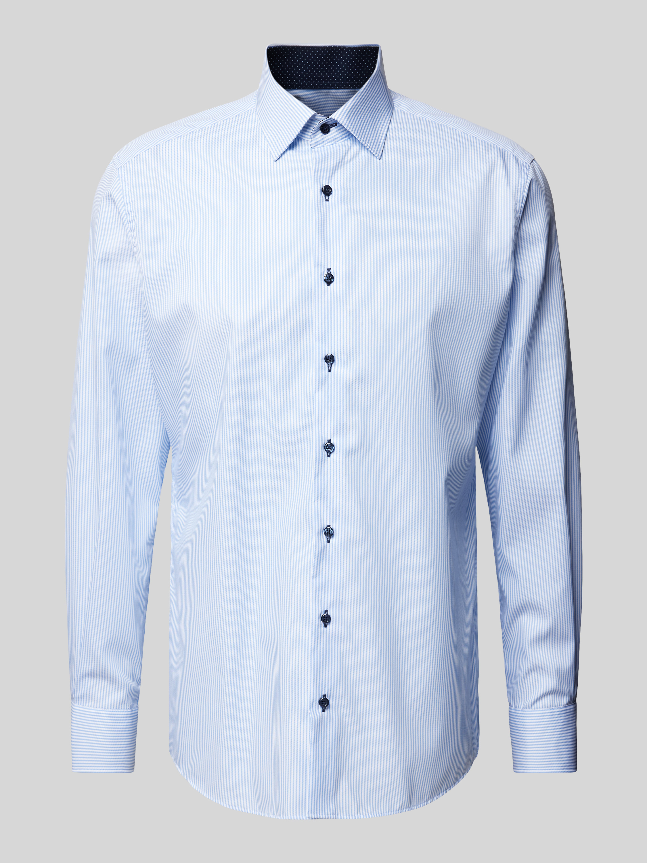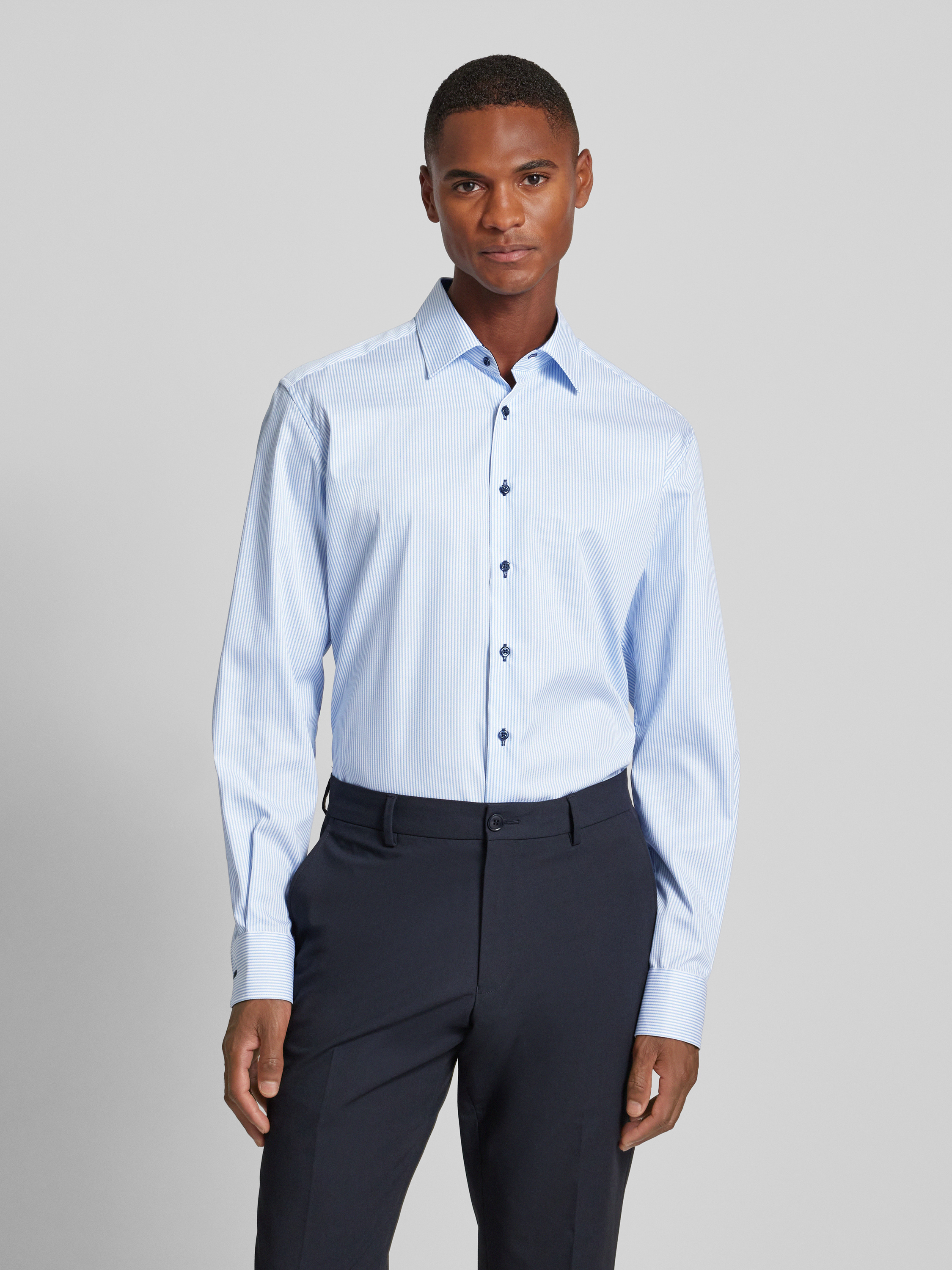 Das Herrenhemd von ETERNA kombiniert einen klassischen Regular Fit mit einem markanten Streifenmuster und einem zeitgemäßen New-Kent-Kragen. Reine Baumwolle sorgt für ein angenehmes Tragegefühl, während die bügelfreie Ausstattung den Alltag erleichtert. Durch Sportmanschetten und einen ansprechenden Ausputz wirkt das Hemd vielseitig und gepflegt.
