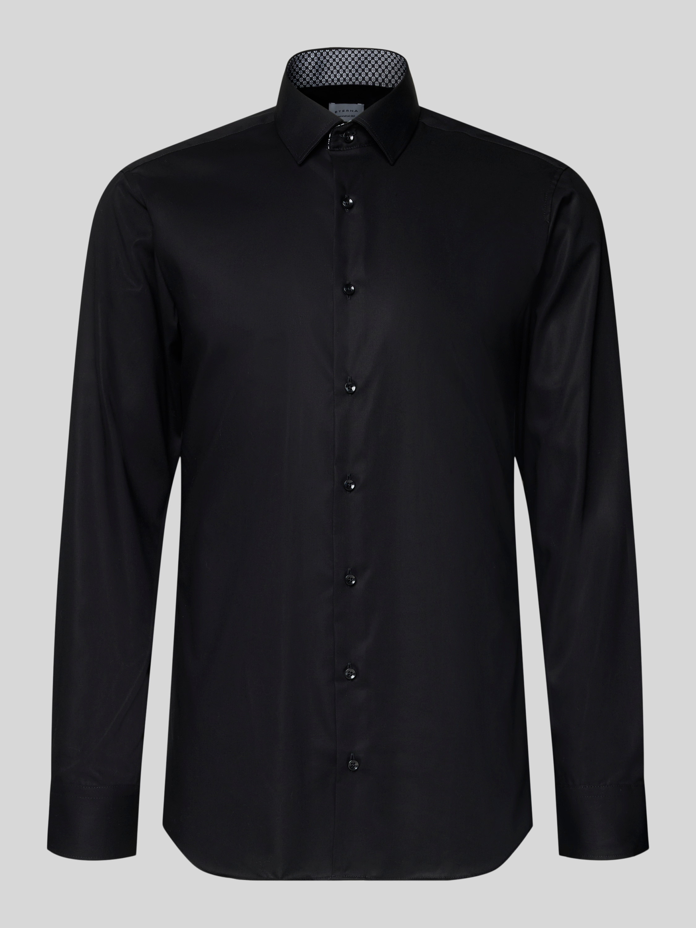 Das Herrenhemd von ETERNA im Slim Fit schmiegt sich angenehm an den Körper und sorgt für eine moderne Silhouette. Reine Baumwolle fühlt sich auf der Haut angenehm glatt an, während der Kentkragen dem Look eine dezente Eleganz verleiht. Durchdachte Details wie Sportmanschetten runden das Gesamtbild ab.