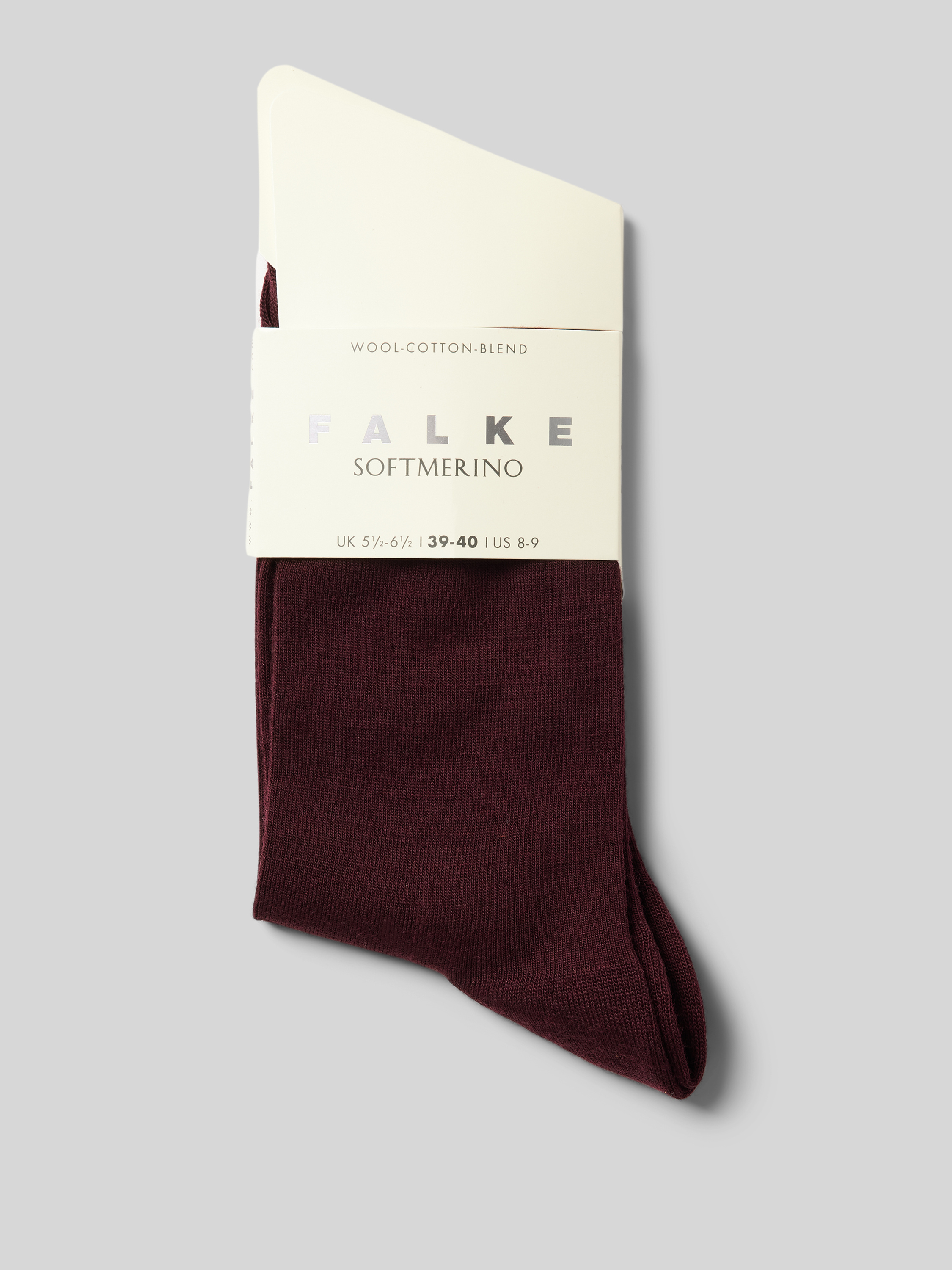 FalkeSocken mit Label-Schriftzug Modell 'SOFTMERINO' in bordeaux