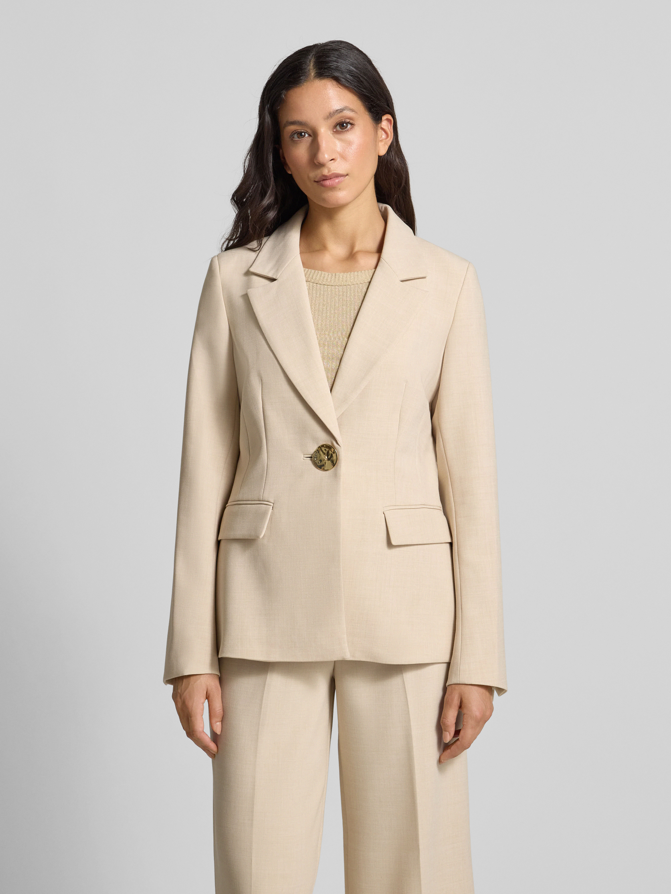 Der Damenblazer von Forever New zeigt sich mit schmaler Passform und klassischem Reverskragen, wodurch eine elegante Silhouette entsteht. Durch den Material-Mix mit Viskose erhält das Modell einen angenehmen Griff und bleibt formstabil. Dezente Pattentaschen runden das Erscheinungsbild des Blazers mit Knopfverschluss ab.