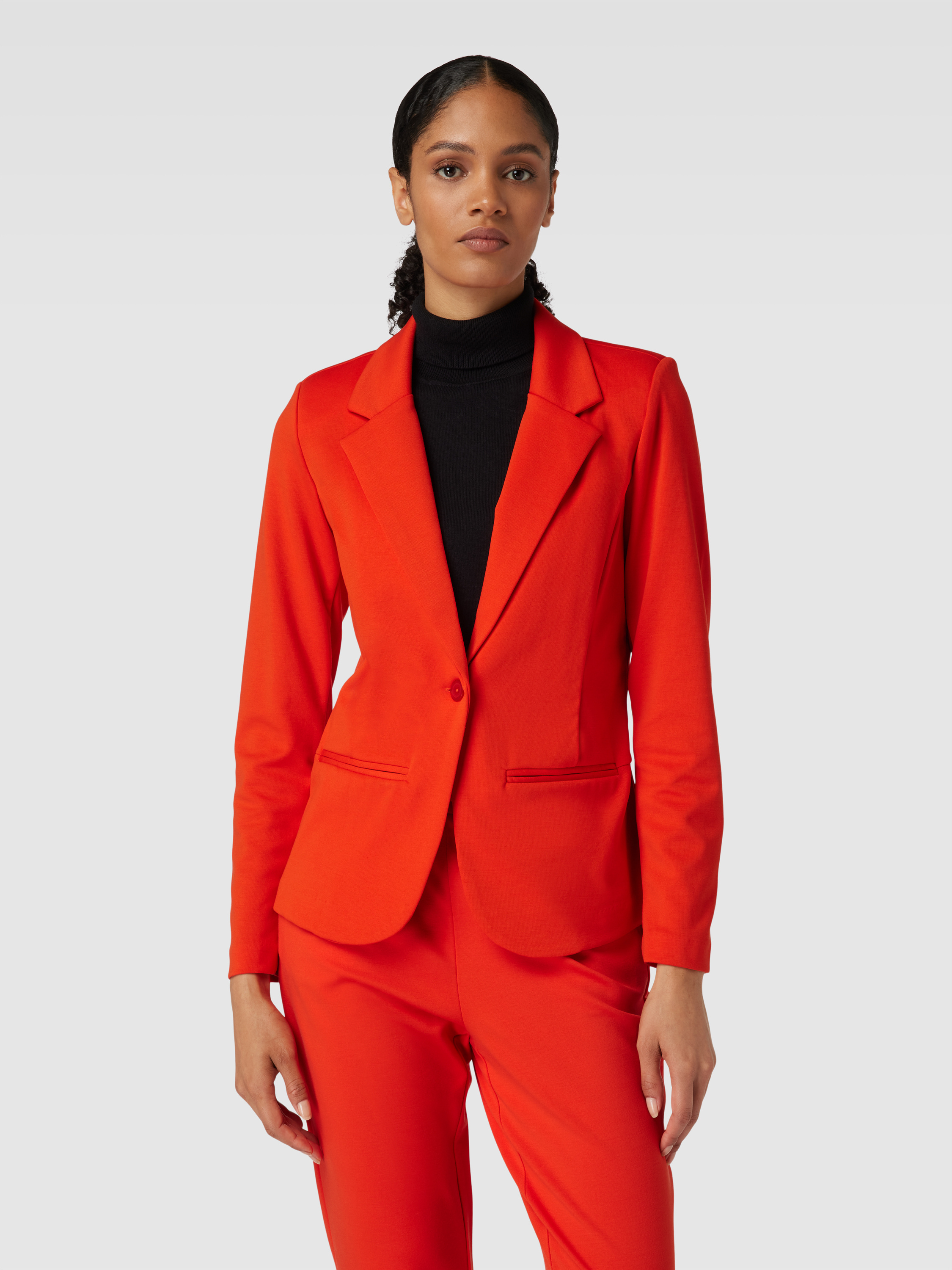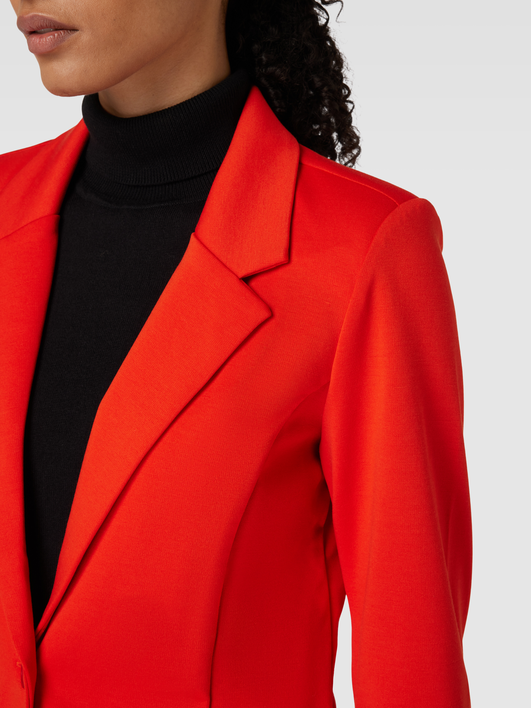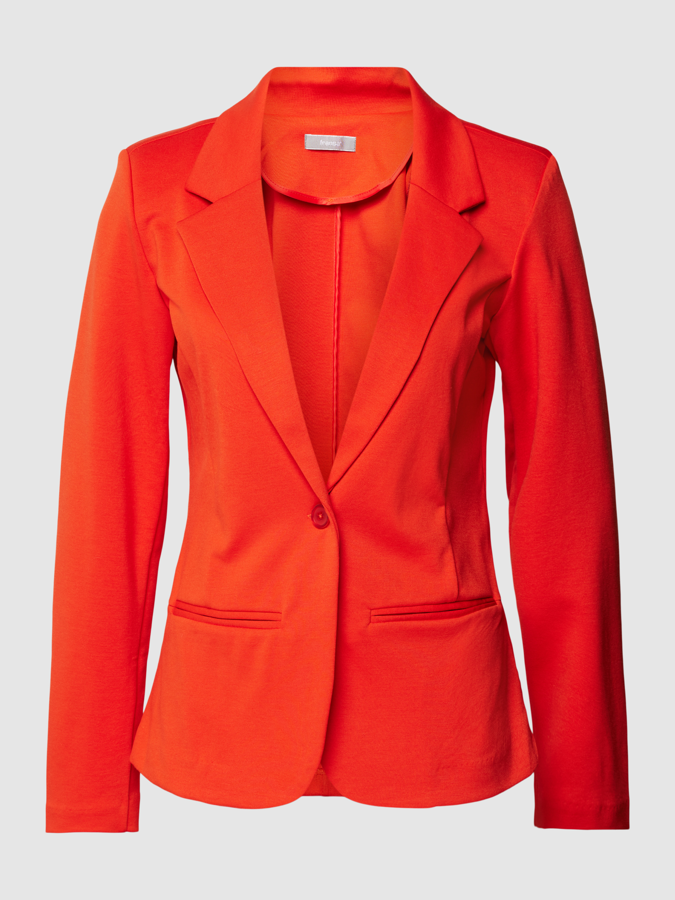 Der Damen-Blazer von Fransa zeigt sich in einem leicht taillierten Schnitt, der Bewegungsfreiheit und eine angenehme Passform unterstützt. Das unifarbene Design und der Reverskragen verleihen dem Blazer mit Paspeltaschen einen vielseitigen Charakter, der sich unkompliziert kombinieren lässt. Durch den Material-Mix mit Stretch-Anteil fühlt sich das Modell angenehm an und bleibt formstabil, auch bei längerem Tragen.