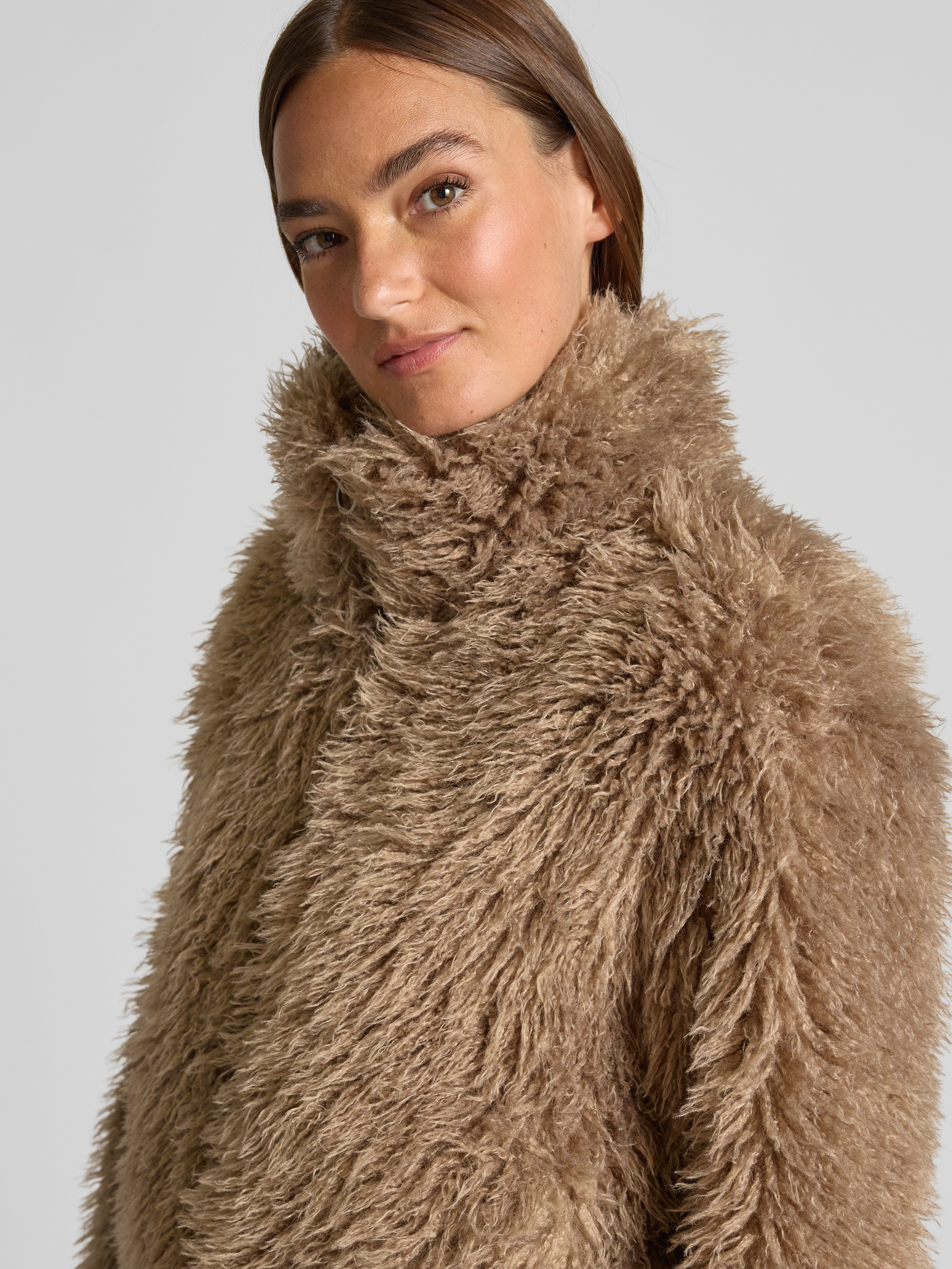 Die Damen Jacke von FREE/QUENT im Modell 'Fine' zeichnet sich durch weiches Kunstfell und einen angenehm regulären Schnitt aus, wodurch sie vielseitig kombinierbar bleibt. Ein Stehkragen sorgt für zusätzlichen Komfort an kühleren Tagen. Durch die lockere Passform entsteht ein entspanntes Tragegefühl, das im Alltag praktisch ist.