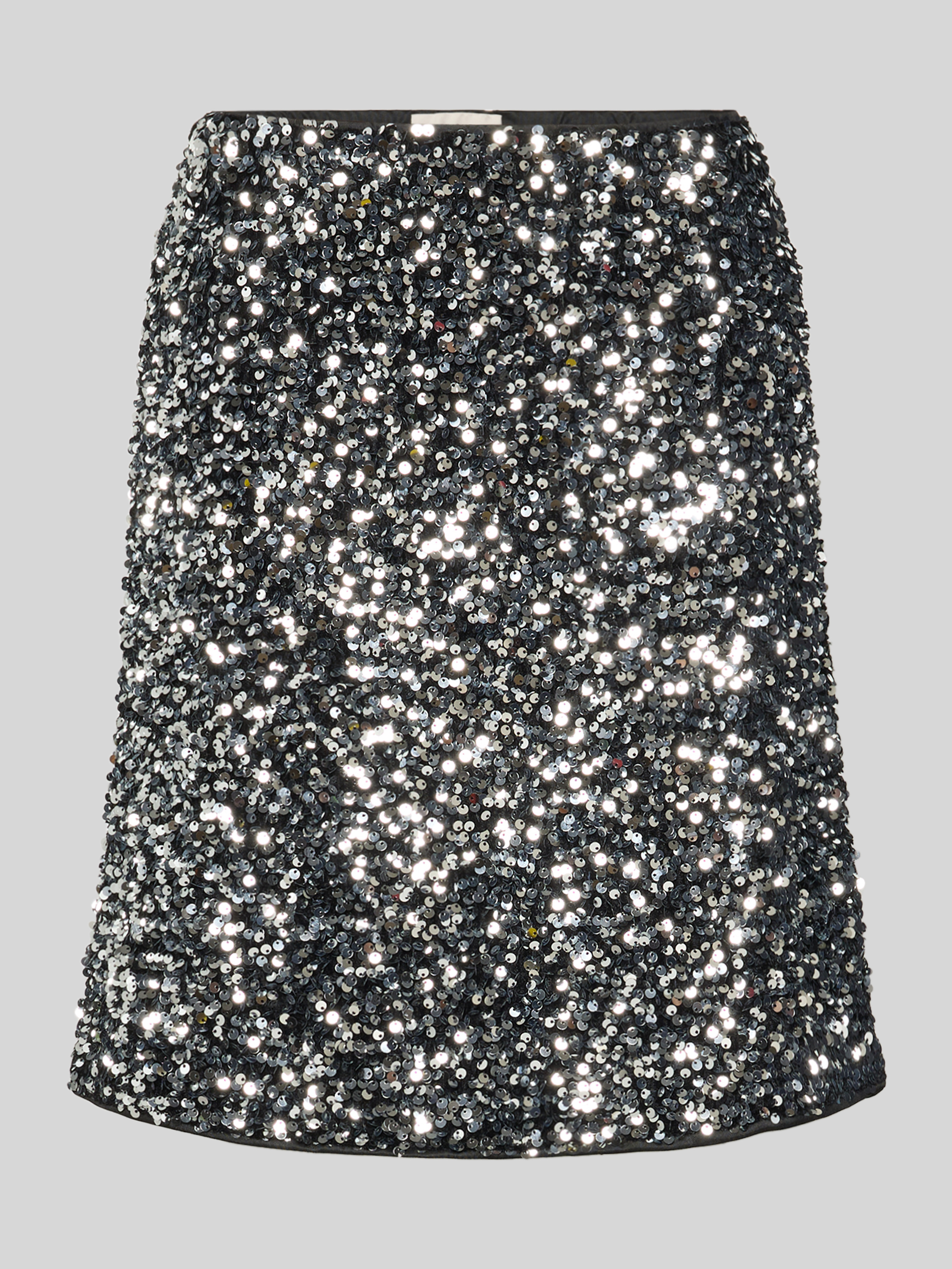 Der Minirock mit Pailletten von FREE/QUENT im Modell 'LUNE' fällt durch seine A-Linie angenehm locker und schafft Bewegungsfreiheit im Alltag. Dank des elastischen Bundes sitzt er bequem und passt sich unterschiedlichen Körperformen mühelos an. Glänzende Pailletten verleihen dem Design eine lebendige Note, ohne aufdringlich zu wirken.
