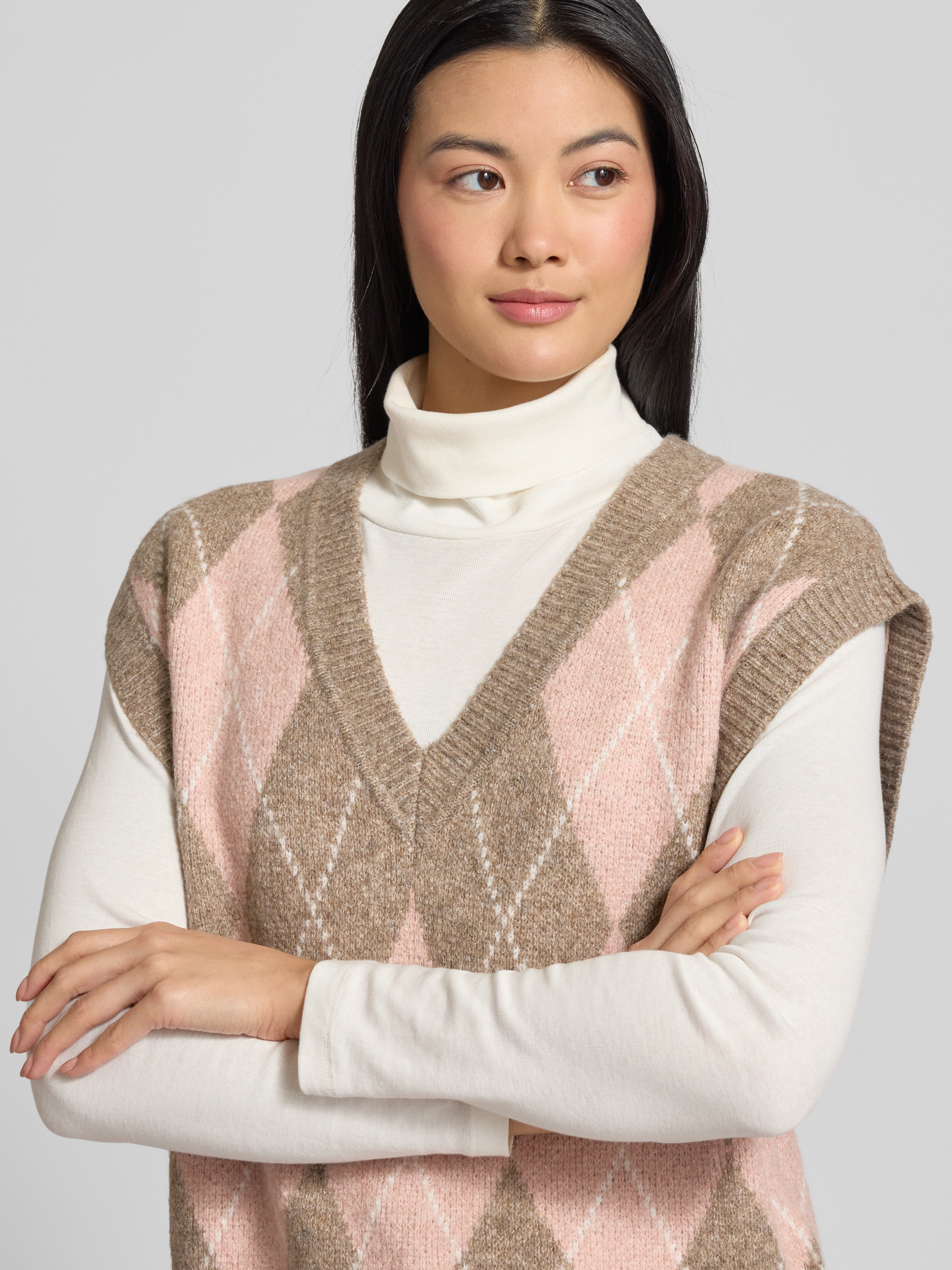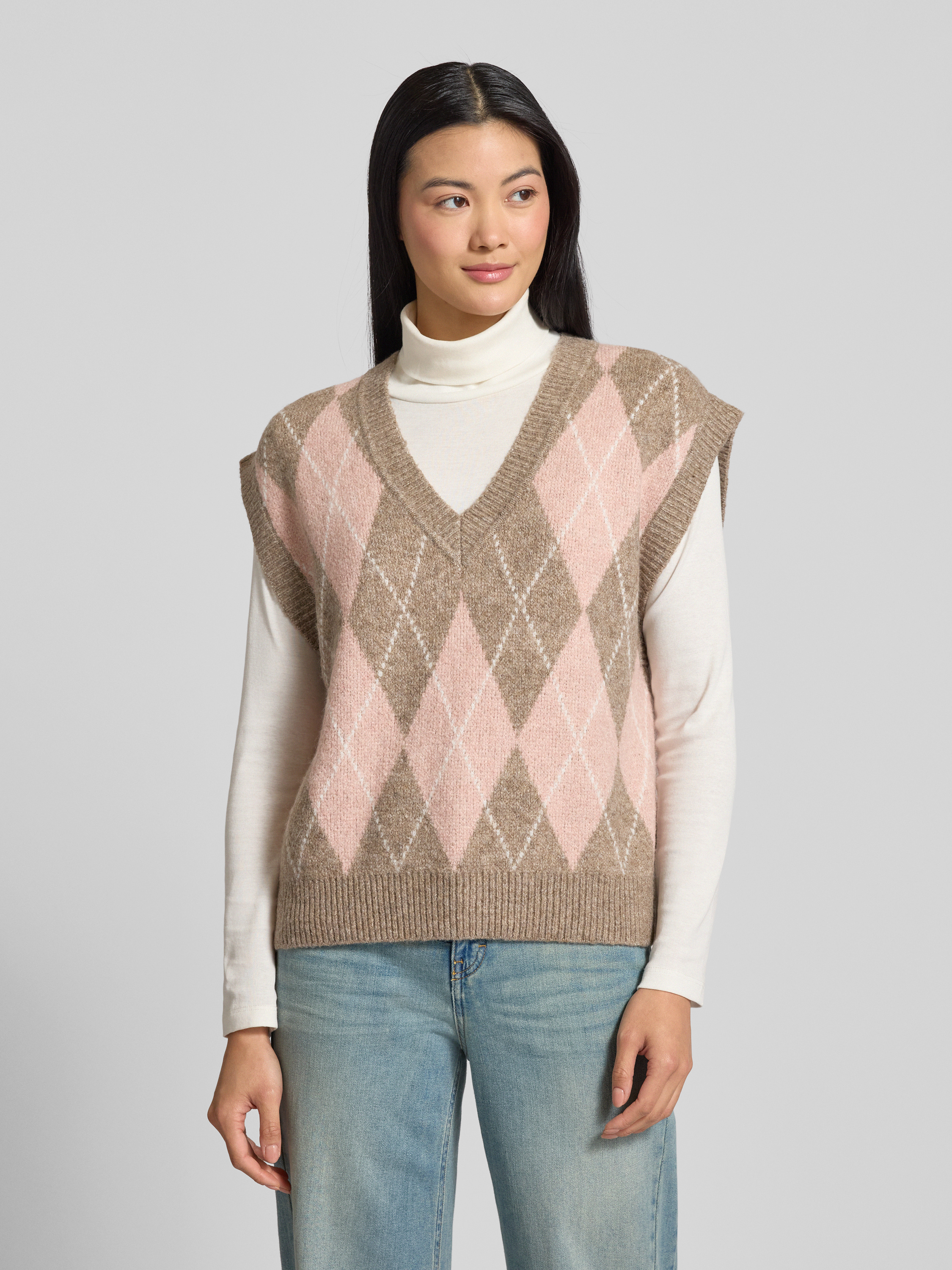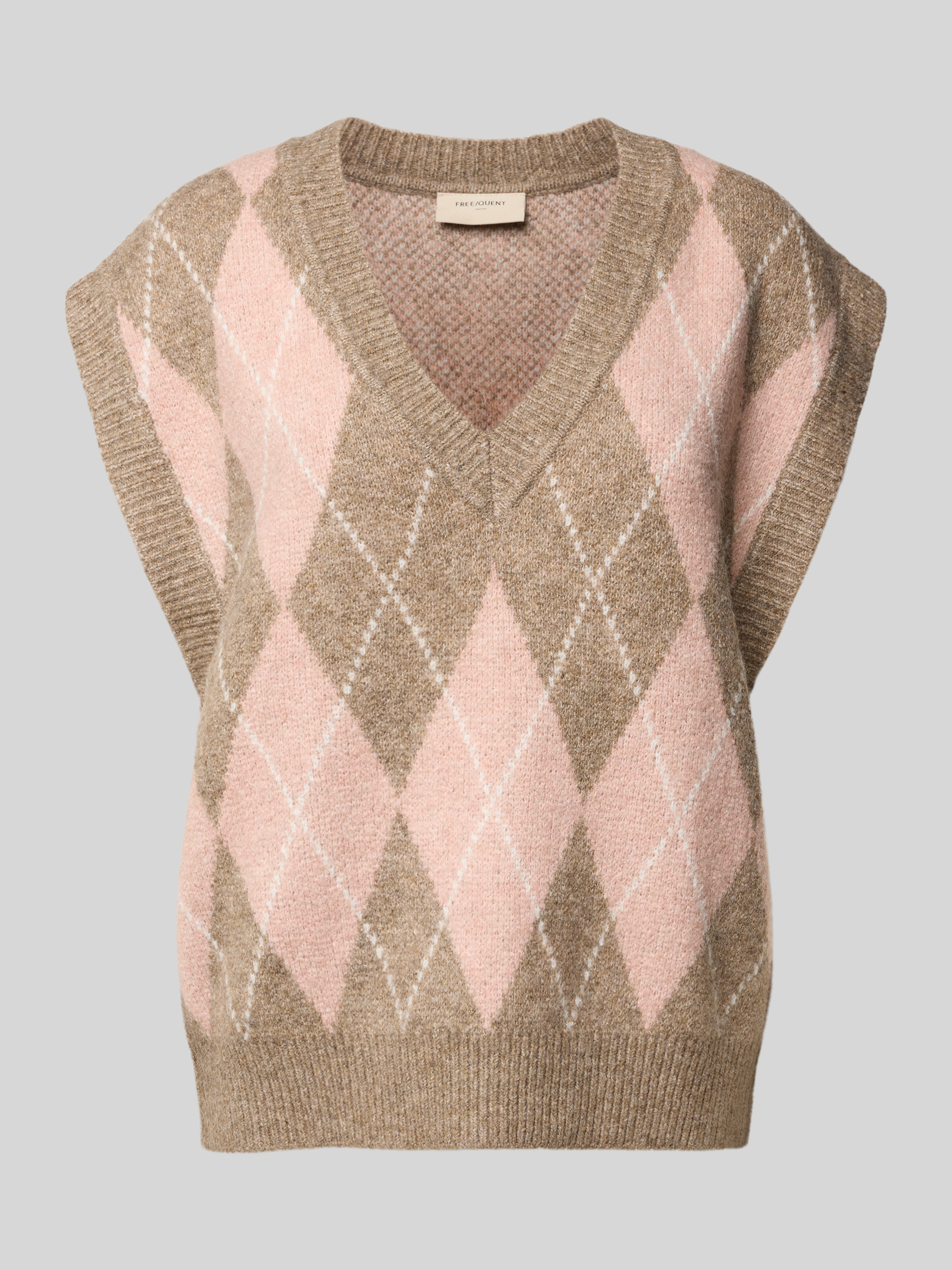 Der Damen Pullunder von FREE/QUENT, Modell 'Grsargyle', kombiniert einen entspannten Relaxed-Fit mit einem Material-Mix, der durch einen Woll-Anteil angenehm weich wirkt. Durch den klassischen V-Ausschnitt lässt sich das Kleidungsstück vielseitig kombinieren. So eignet sich der Pullunder als unkomplizierte Ergänzung für unterschiedliche Outfits.