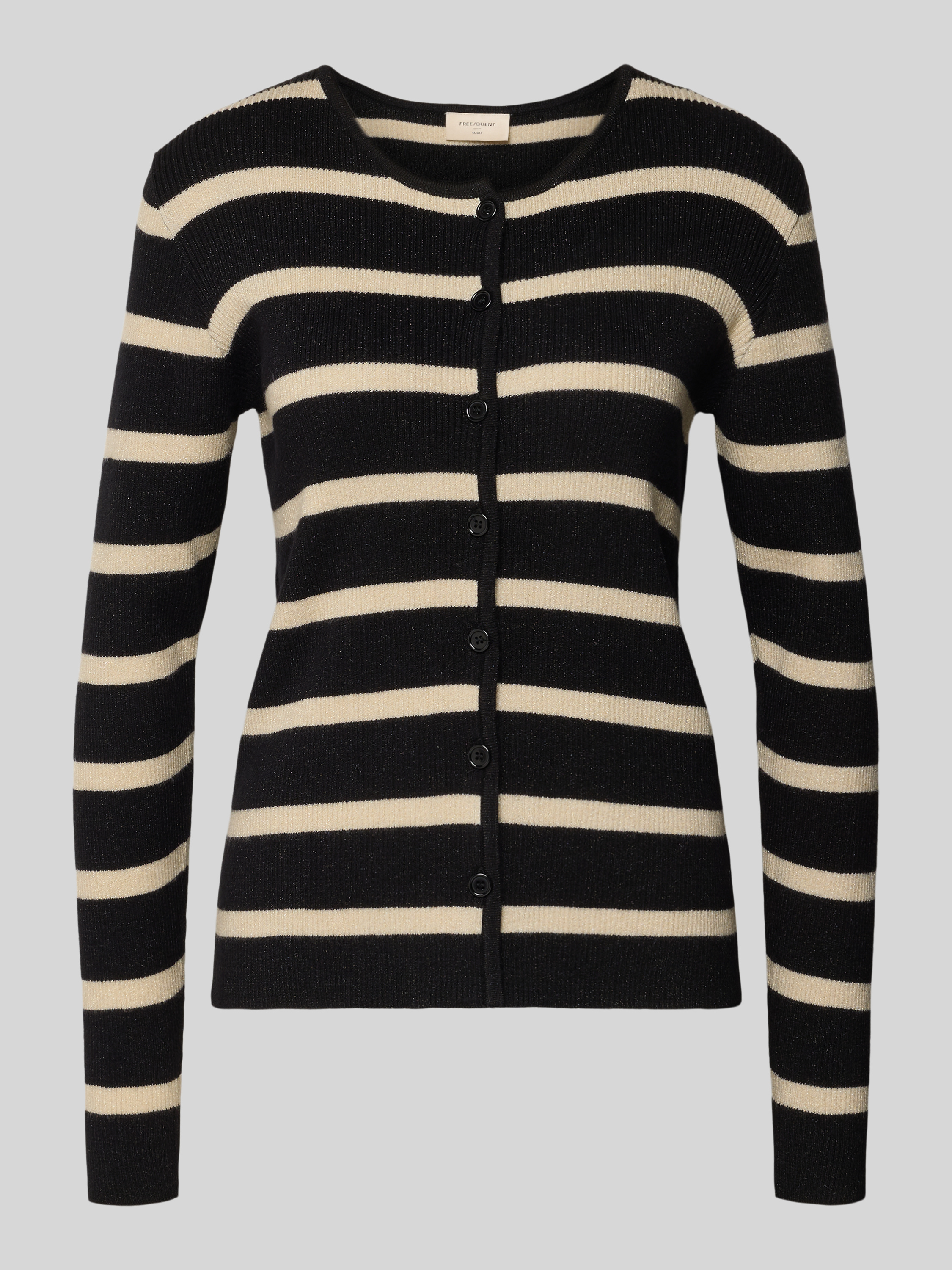 Die Damen Strickjacke von FREE/QUENT Modell 'ARNA' zeigt sich in schmaler Slim Fit-Passform und betont damit eine feminine Silhouette, während der Rundhalsausschnitt einen klassischen Akzent setzt. Dank des Viskose-Mix trägt sie sich angenehm weich auf der Haut und bleibt formstabil. Durch die dezente Knopfleiste lässt sich der Look flexibel anpassen, sodass man vielseitige Outfits gestalten kann.