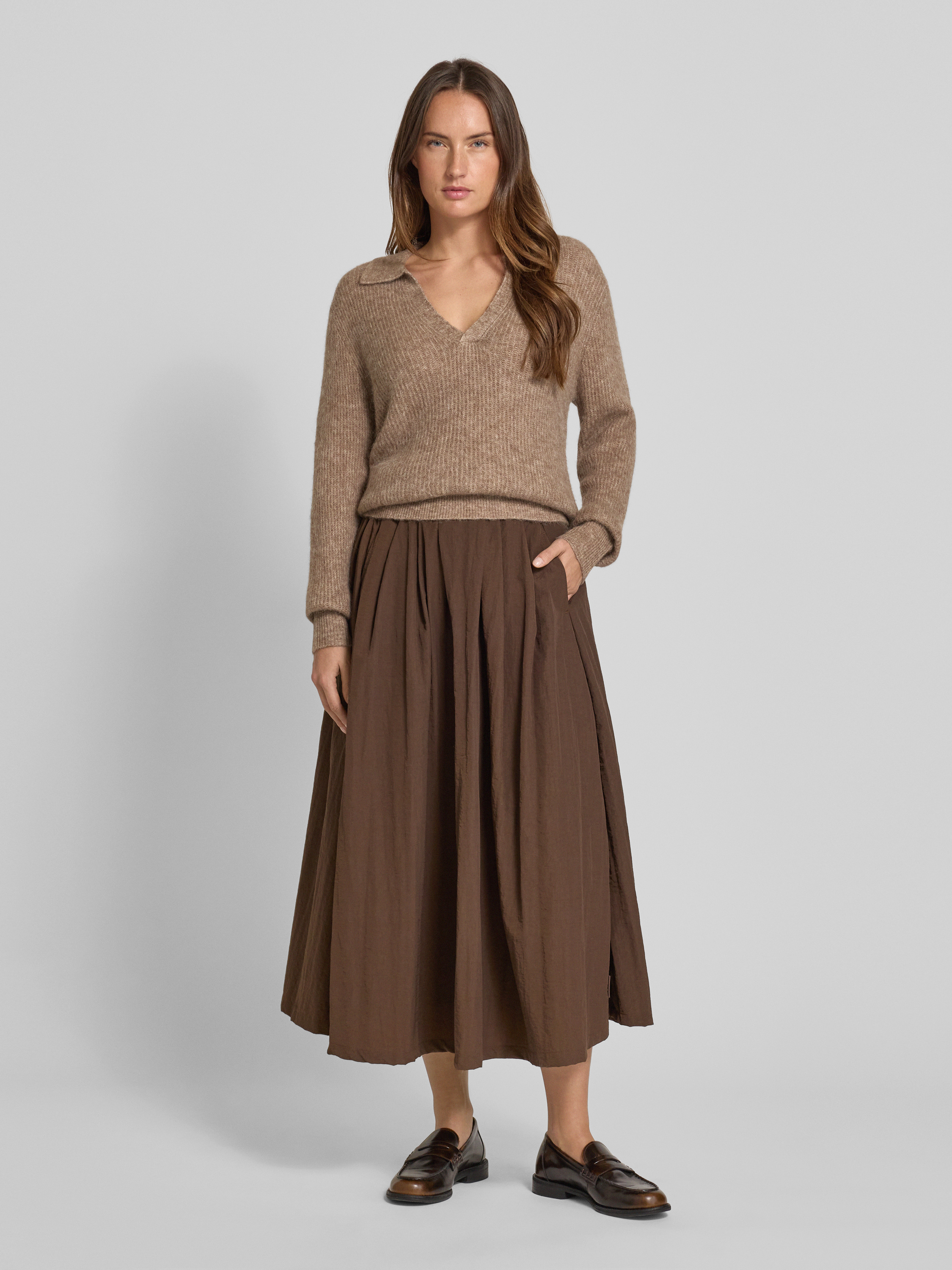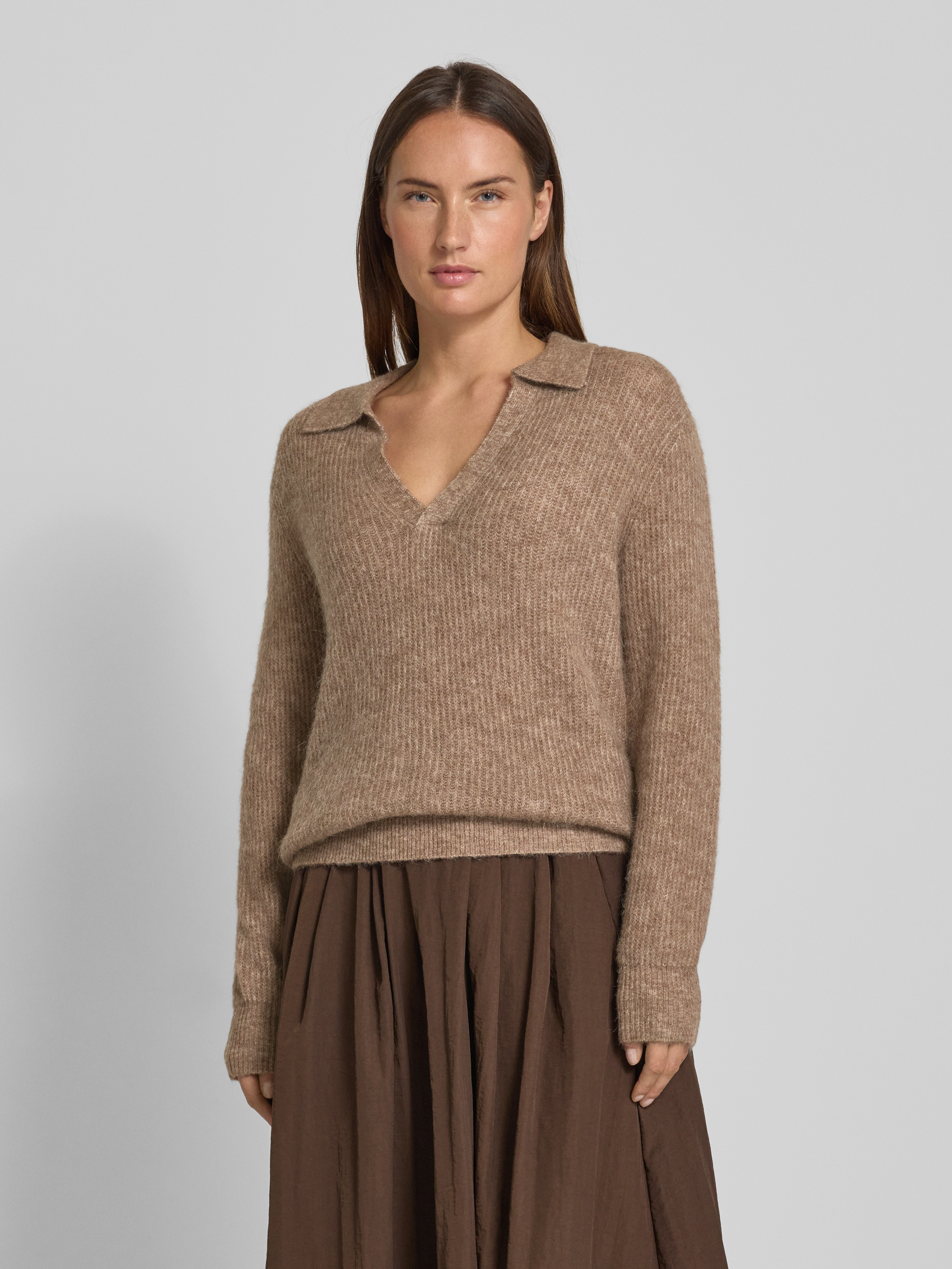 FREE/QUENTStrickpullover mit gerippten Abschlüssen Modell 'Hil' in taupe