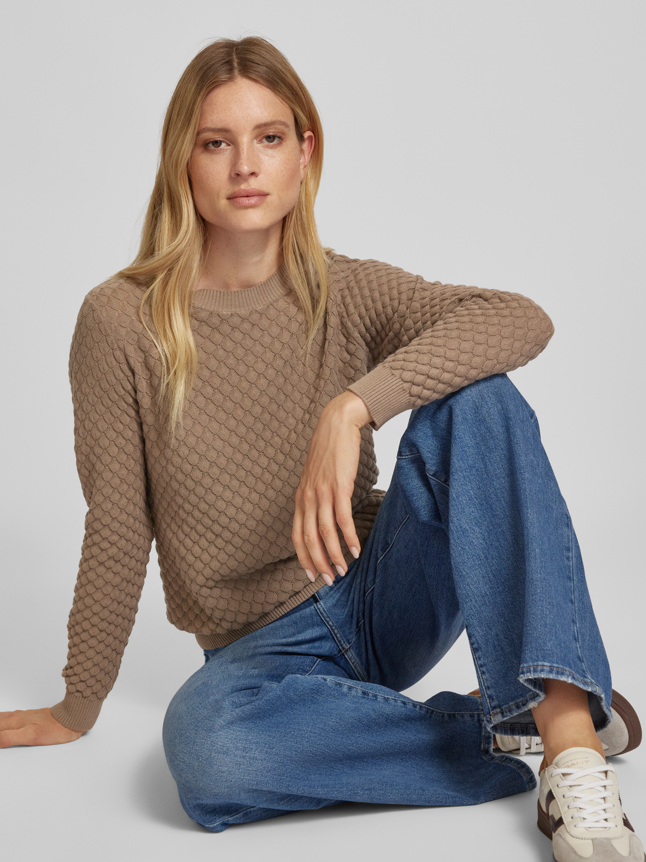 Strickpullover mit Rundhalsausschnitt Modell 'Dodo-Pu-Diamo' in taupe