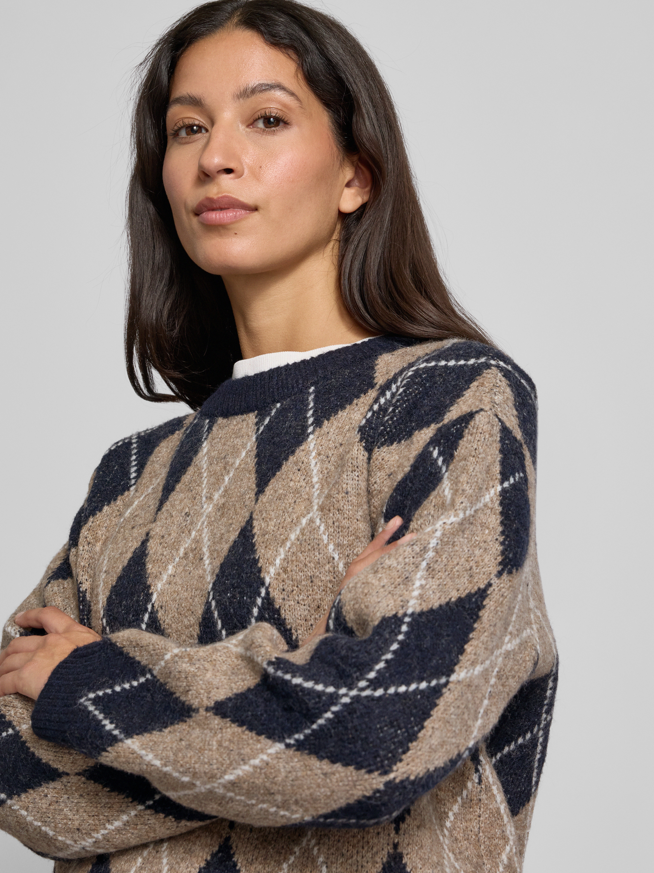 • FREE/QUENT Strickpullover mit Rundhalsausschnitt Modell 'Grsargyle' Taupe