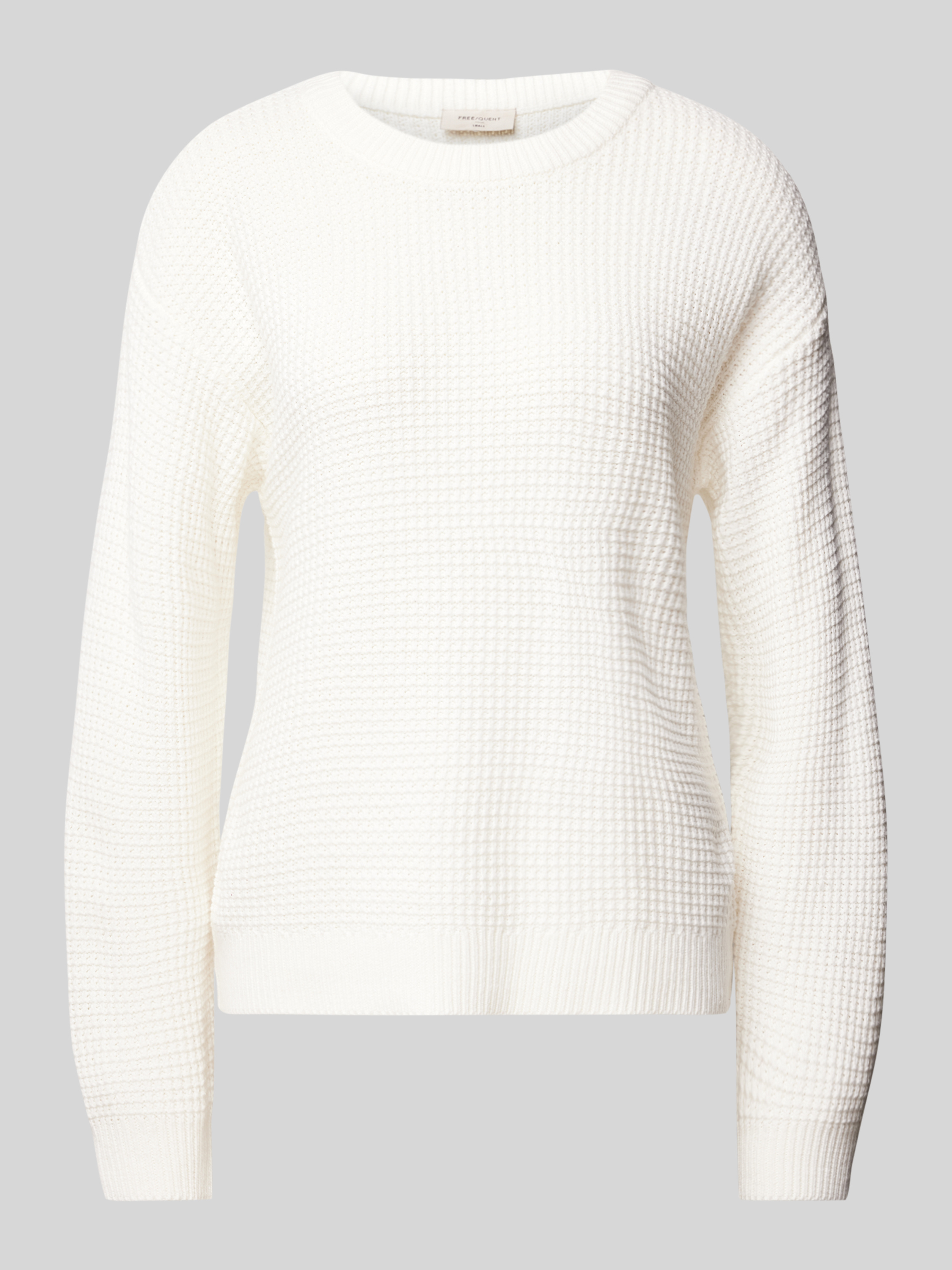 Der Damen Strickpullover von FREE/QUENT, Modell 'Cotla', beeindruckt durch seinen geraden Schnitt und die überschnittenen Schultern, die für eine bequeme Passform sorgen. Der Rundhalsausschnitt und das Strukturmuster machen ihn vielseitig kombinierbar. Der Baumwoll-Mix bietet angenehmen Tragekomfort.