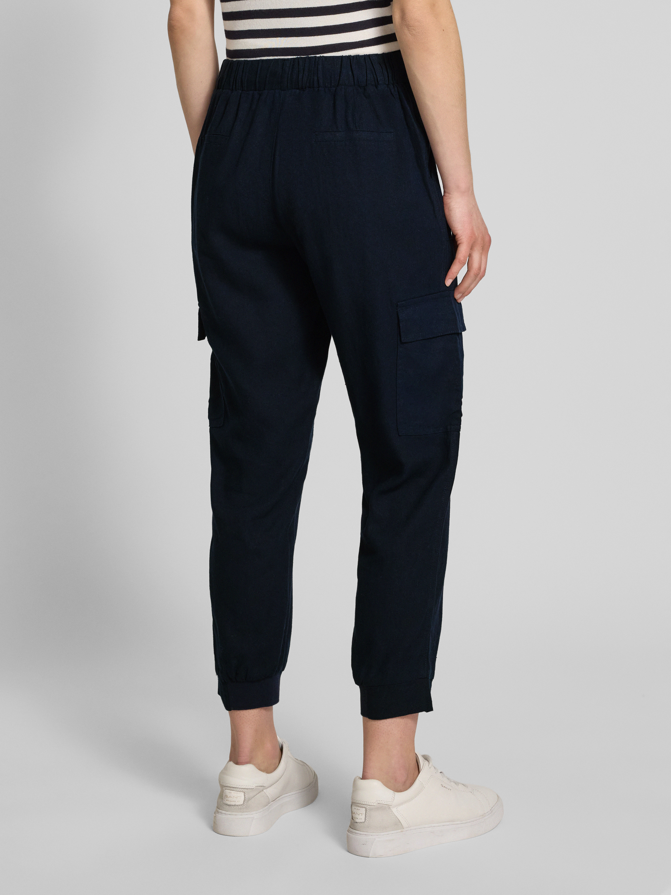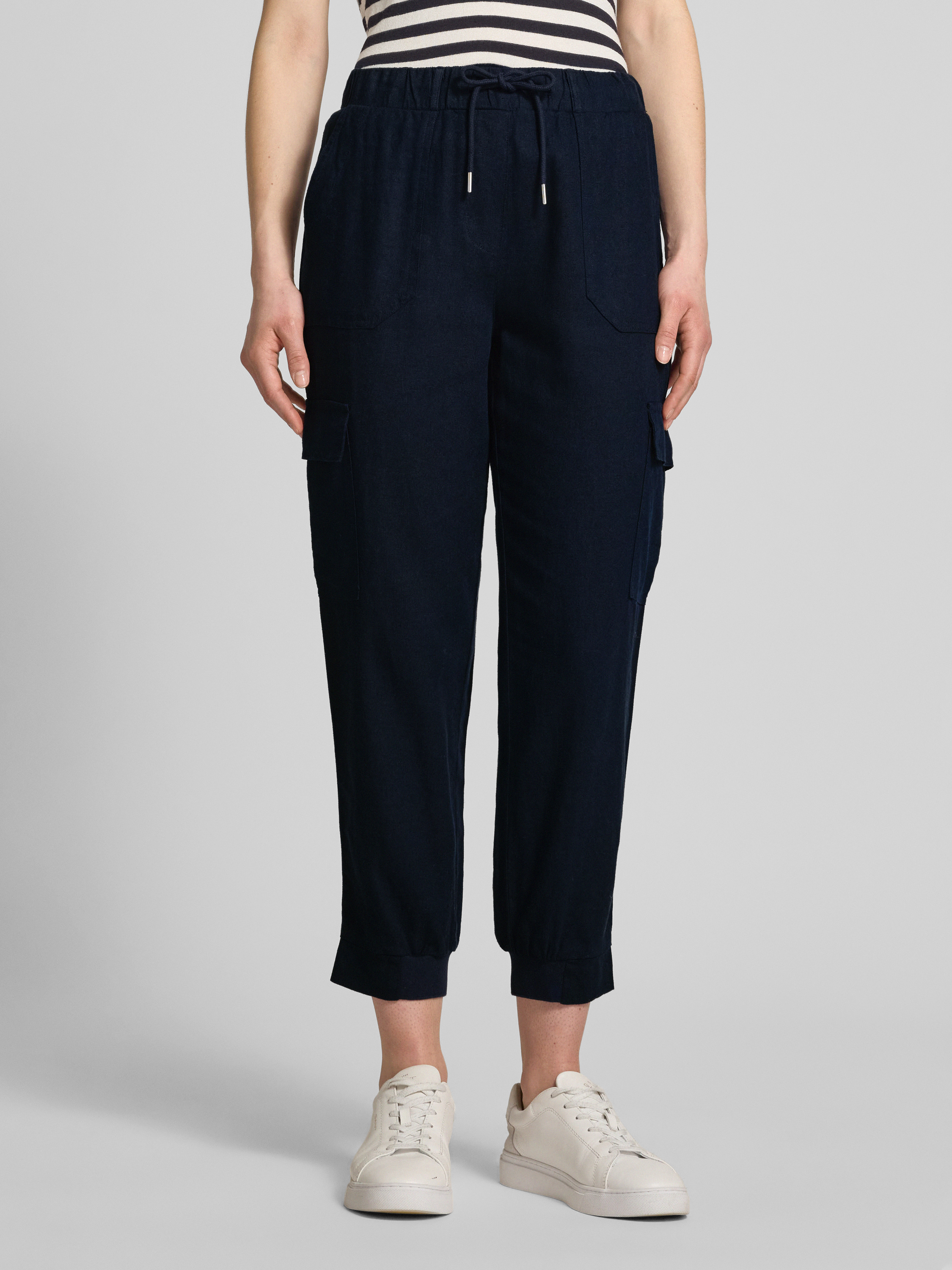 FREE/QUENTTapered Fit Leinenhose mit Cargotaschen Modell 'Lava' in dunkelblau