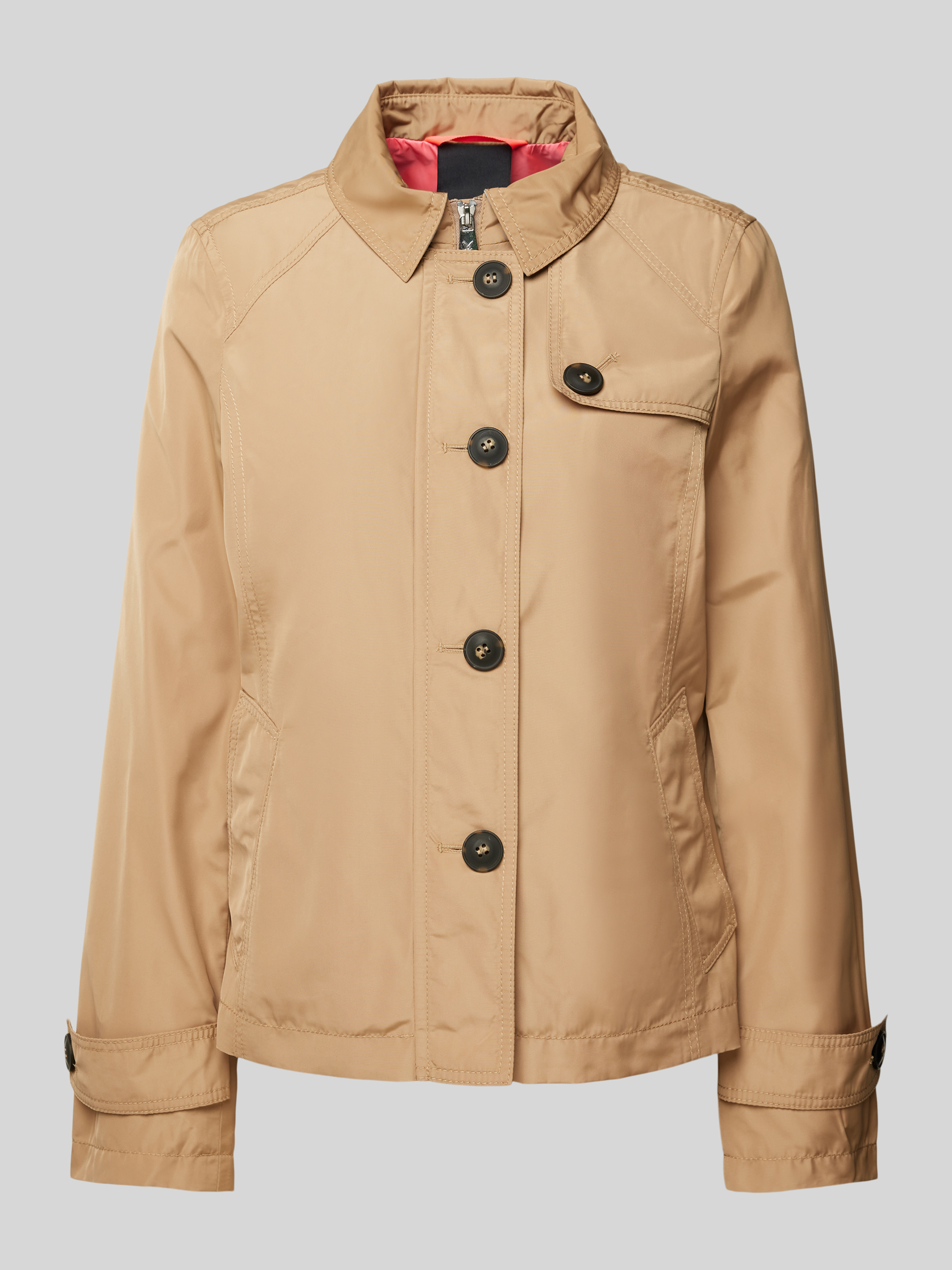 Die Damenjacke von Fuchs & Schmitt aus reiner Baumwolle liegt angenehm auf der Haut und sorgt dank Regular Fit für eine entspannte Passform. Praktische Eingrifftaschen und dezente Ärmelriegel bringen funktionale Akzente in das schlichte Design. Ein Umlegekragen rundet den klassischen Look ab.
