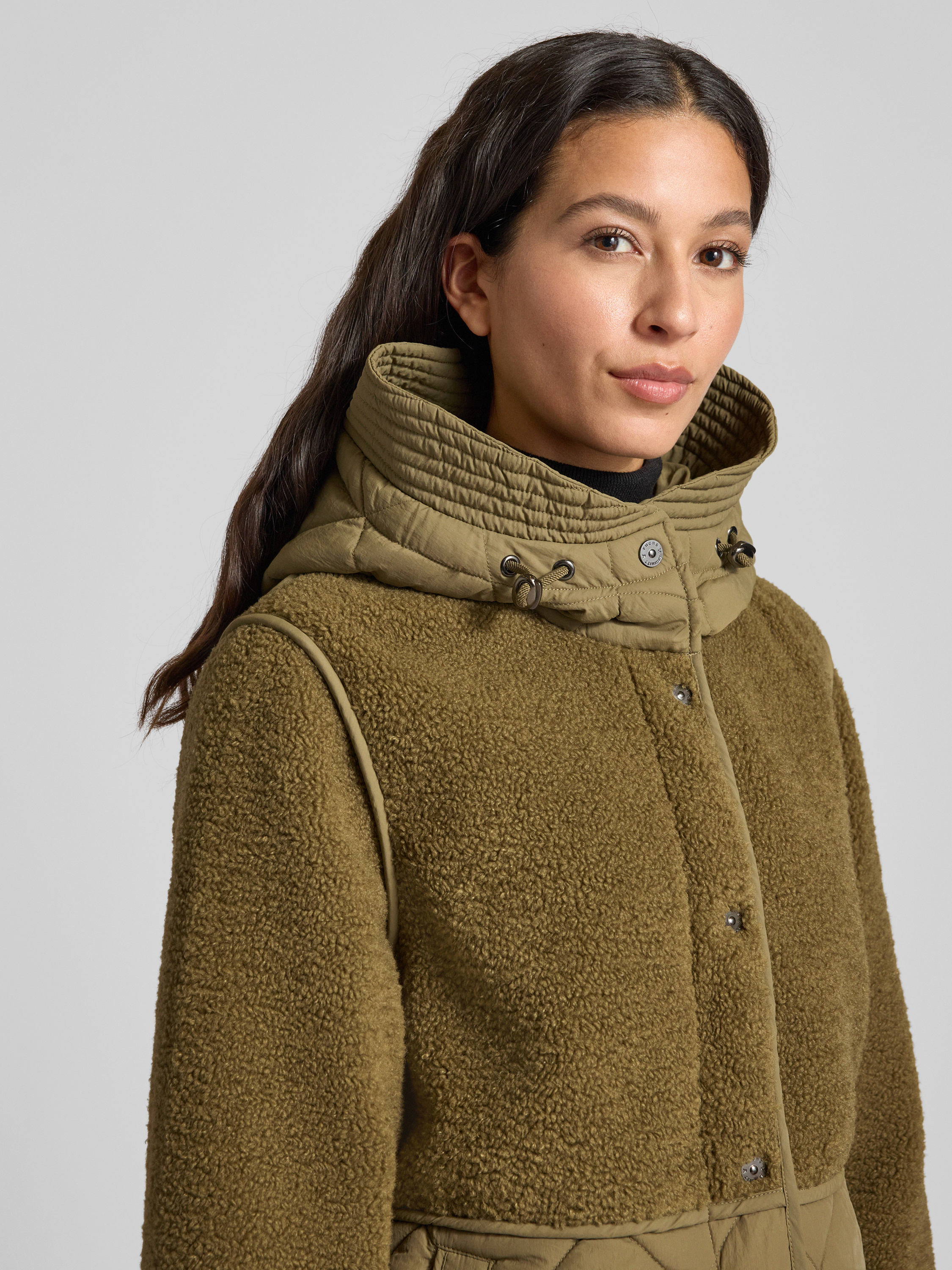 Die Damen Jacke von Fuchs Schmitt bringt durch den Regular Fit eine angenehme Passform mit, die sich für verschiedene Aktivitäten eignet. Fleece sorgt dafür, dass man sich auch an kühlen Tagen wohlig fühlt, während Steppnähte und Kapuze mit Tunnelzug praktische Akzente setzen. In den Eingrifftaschen lassen sich Kleinigkeiten unkompliziert verstauen, sodass unterwegs alles griffbereit bleibt.