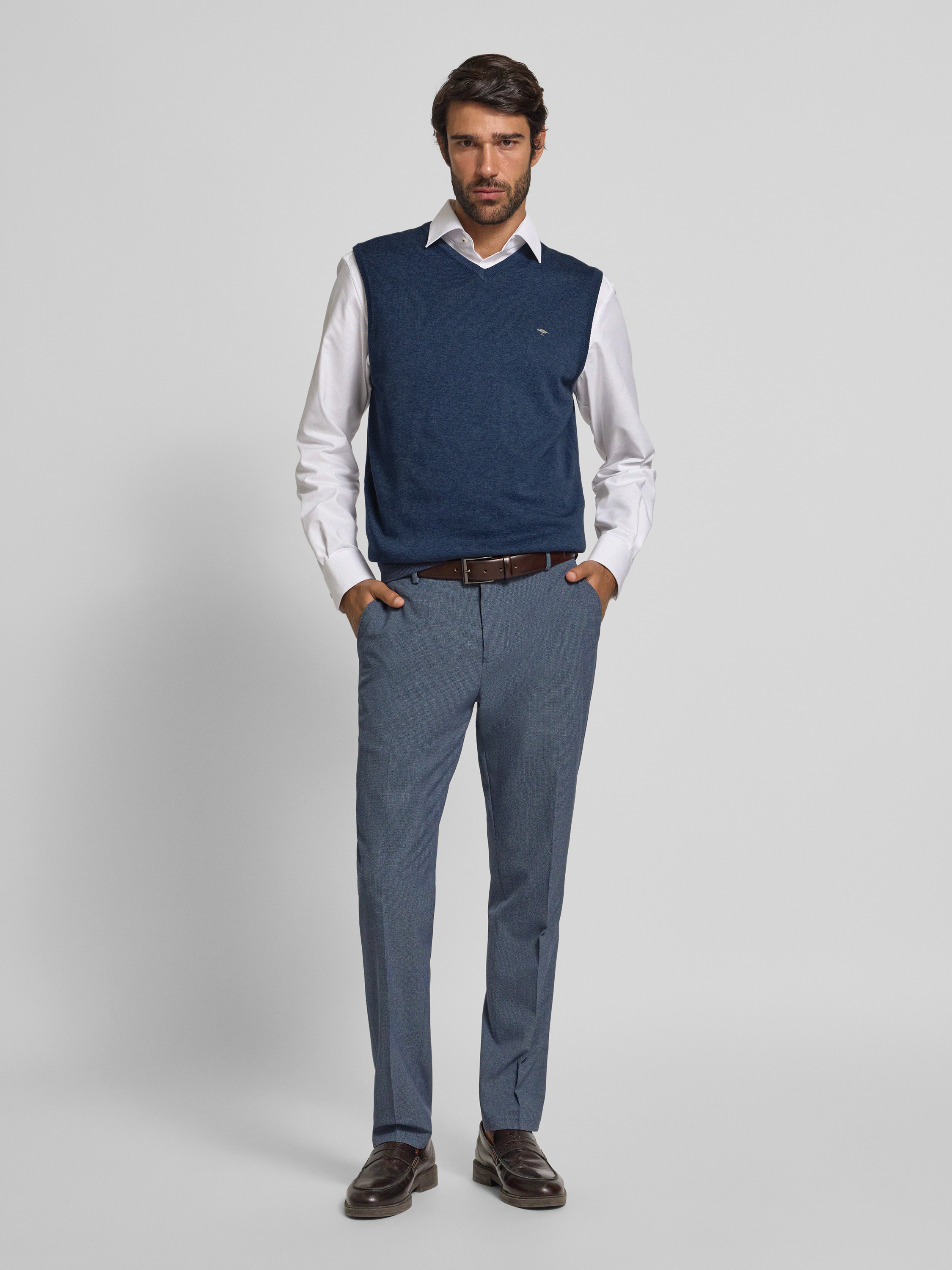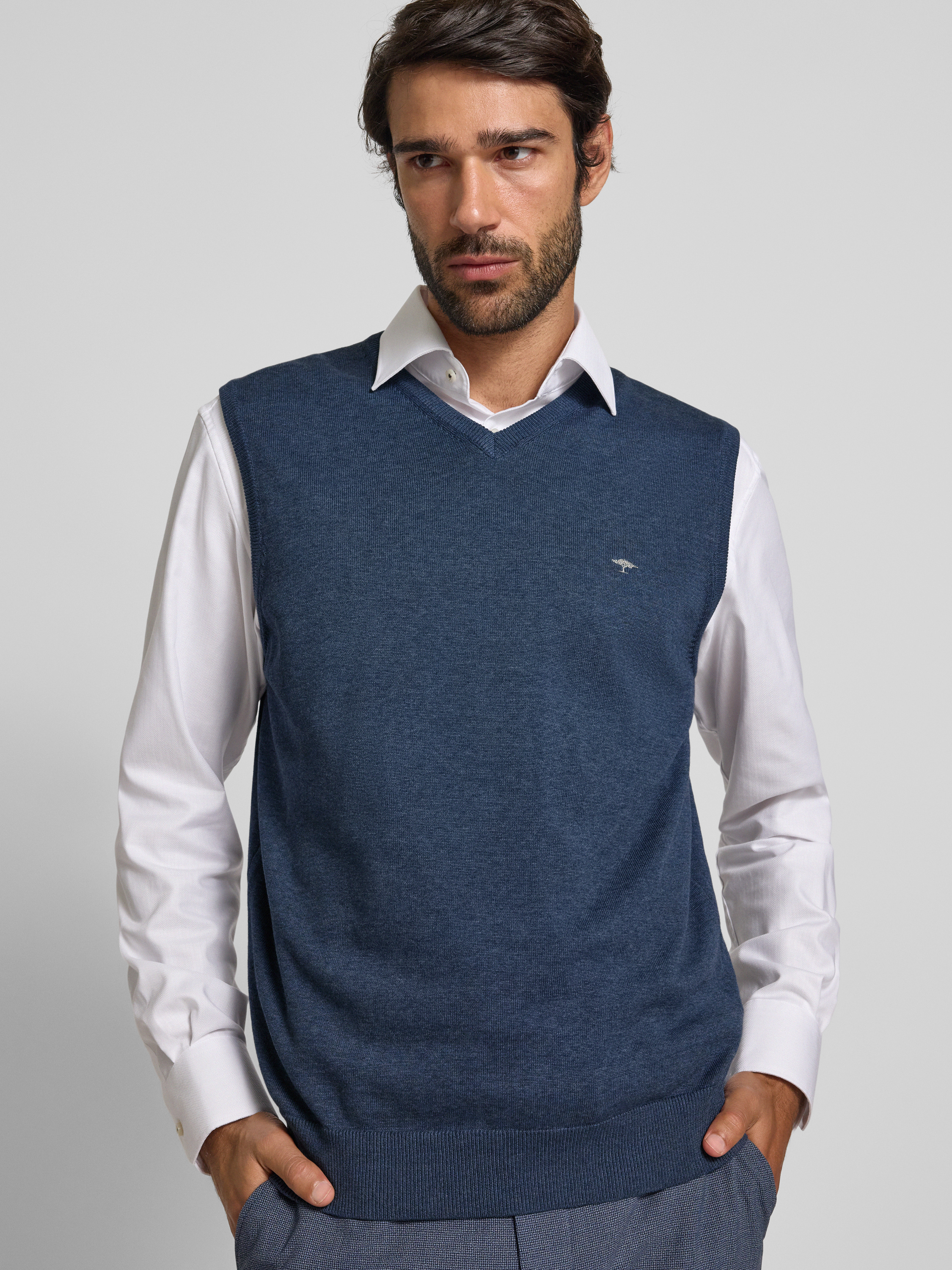 Fynch-HattonPullunder mit Logo-Detail Modell 'Slipover Superfine' in jeansblau