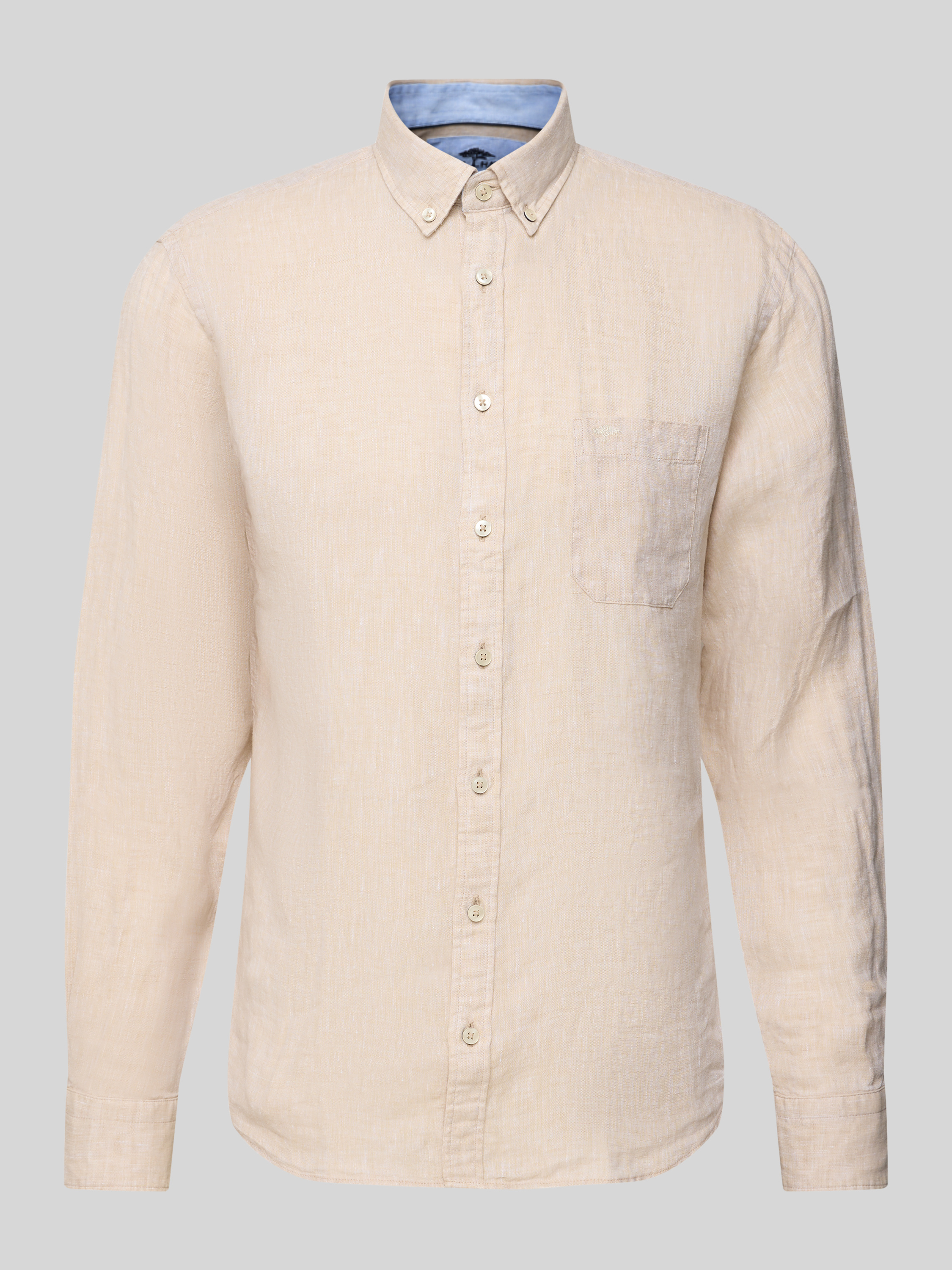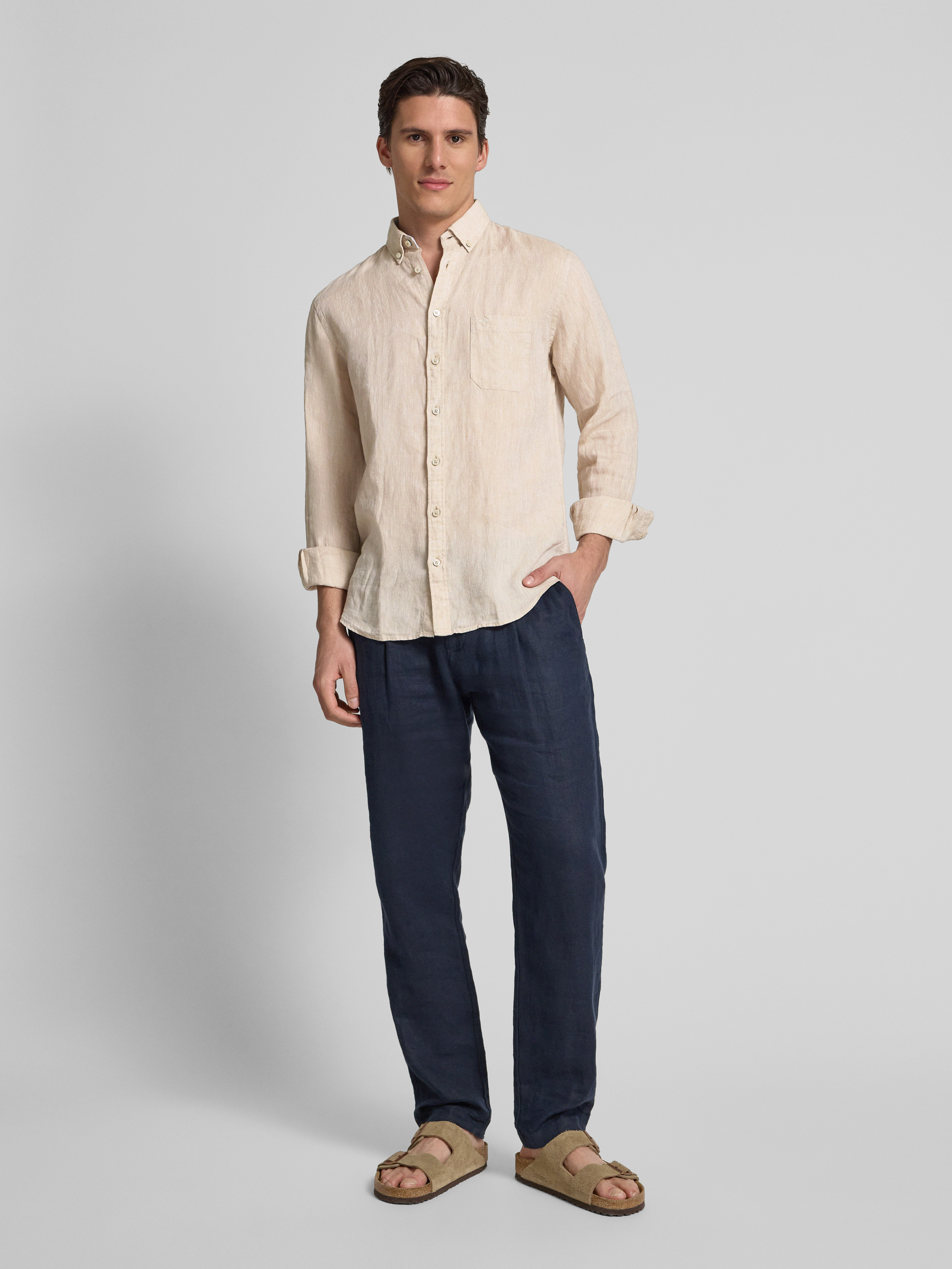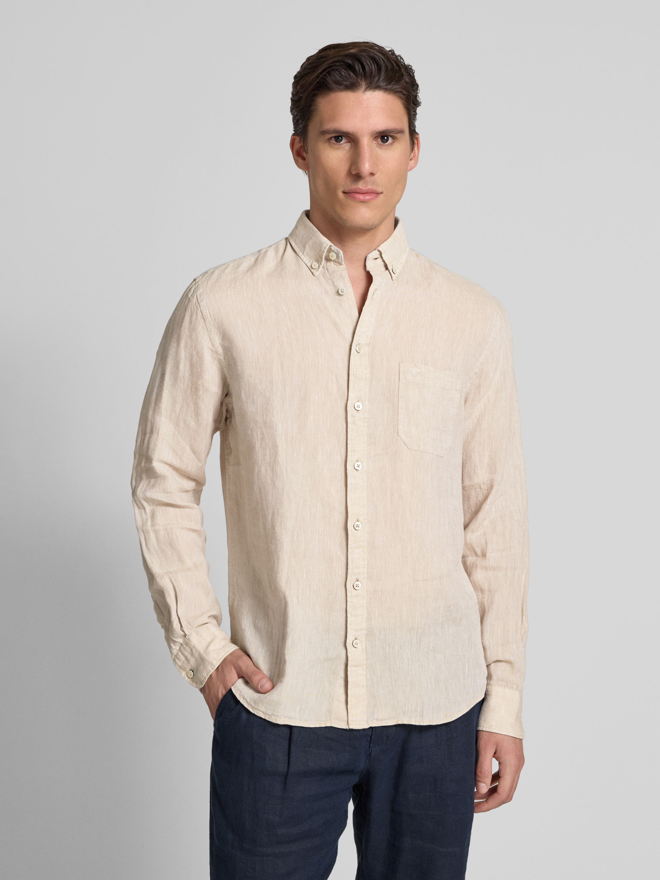 Fynch-HattonRegular Fit Leinenhemd mit Button-Down-Kragen in sand