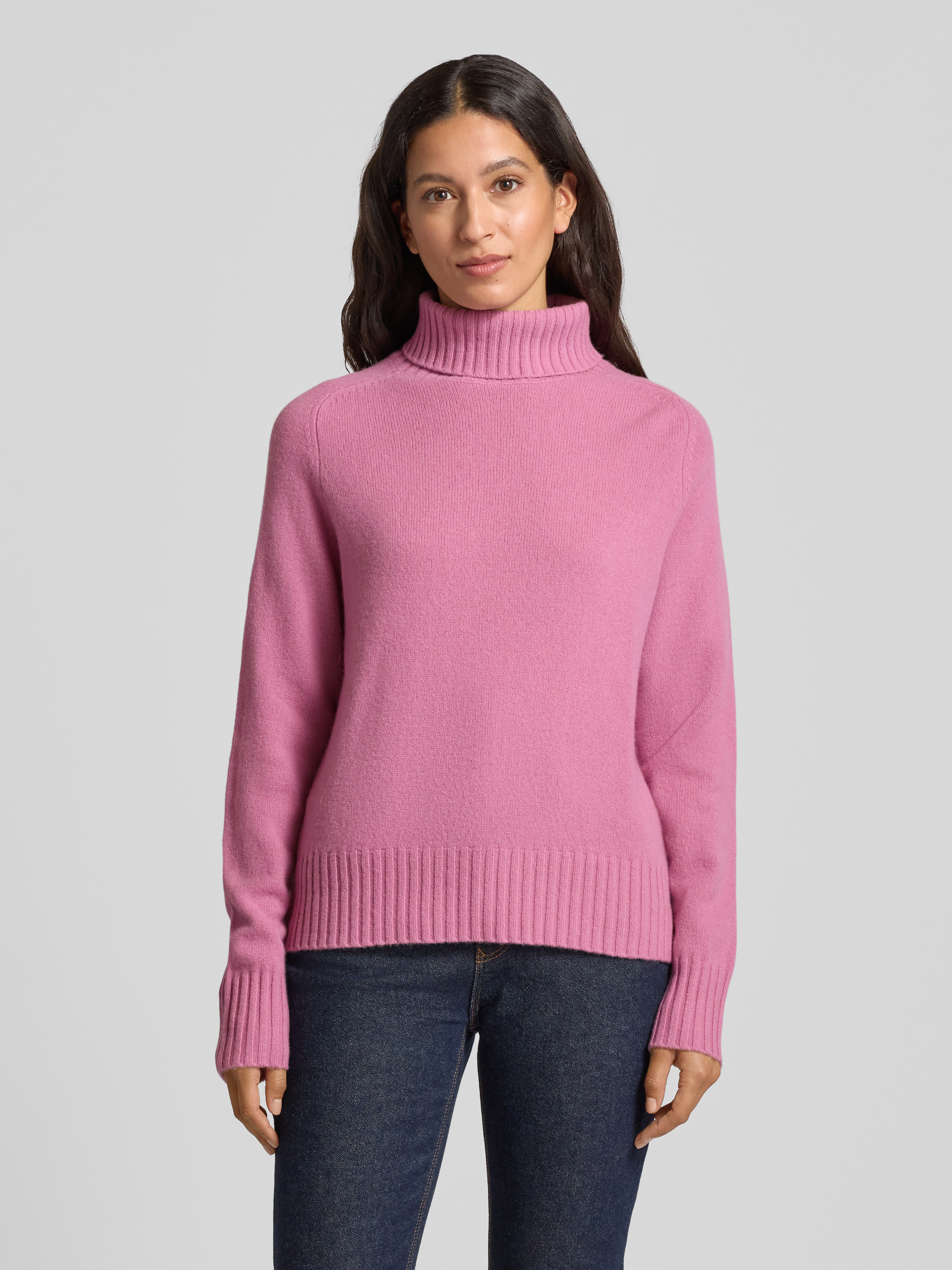 Der Damen Rollkragenpullover von Fynch-Hatton präsentiert sich im Regular Fit und legt den Fokus auf angenehmen Tragekomfort. Dank der gerippten Abschlüsse erhält das Design eine dezente Struktur, die alltagstauglich wirkt und vielseitig kombinierbar bleibt. Mit seiner weichen Haptik fühlt man sich den ganzen Tag rundum wohl.