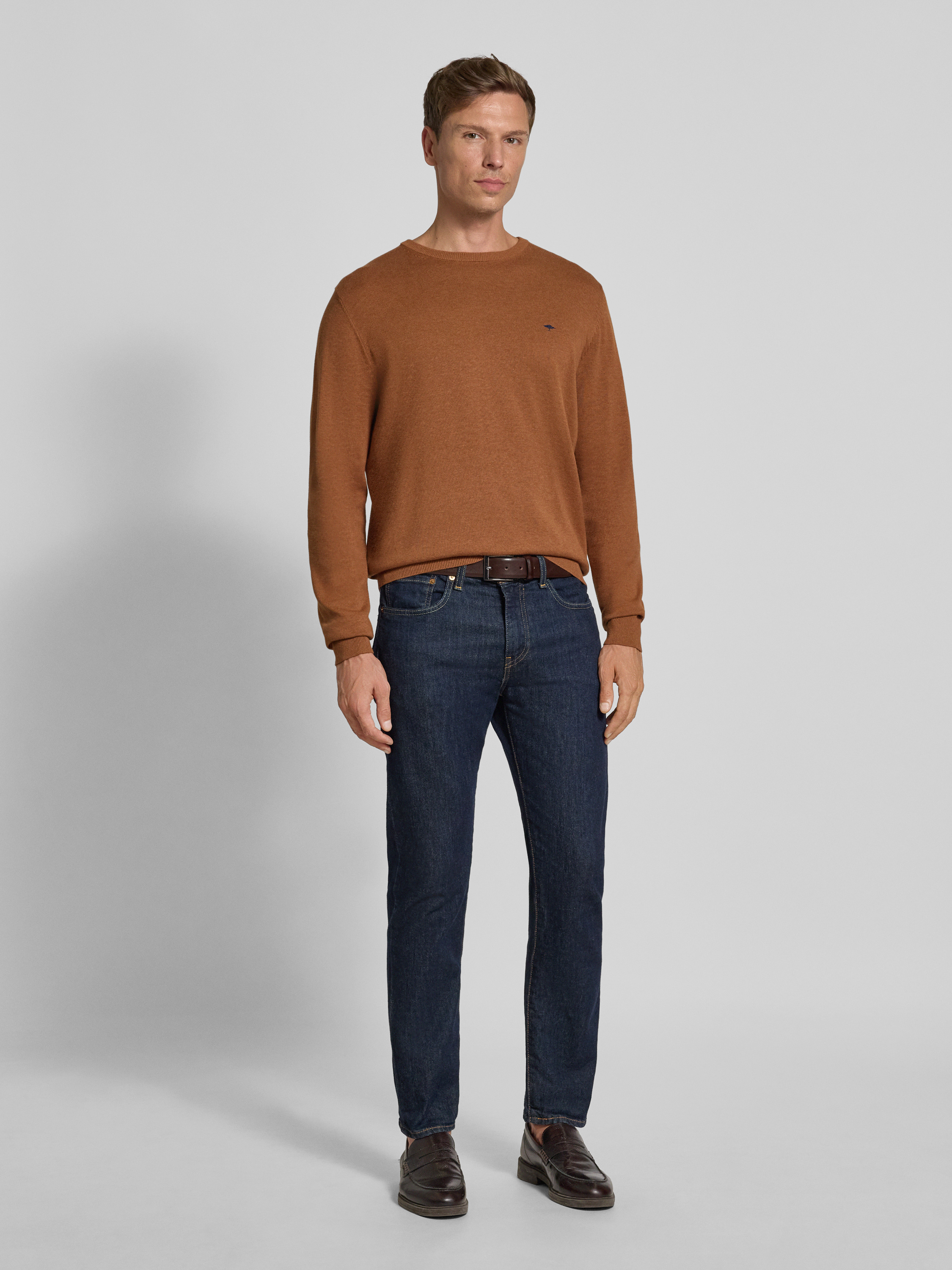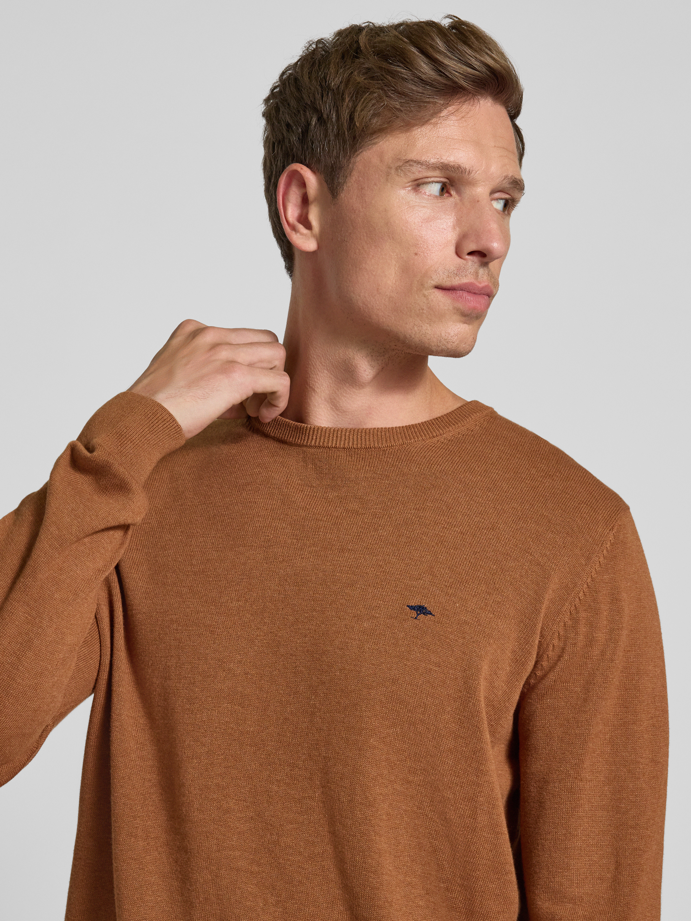 Fynch-HattonStrickpullover mit Rundhalsausschnitt in mittelbraun