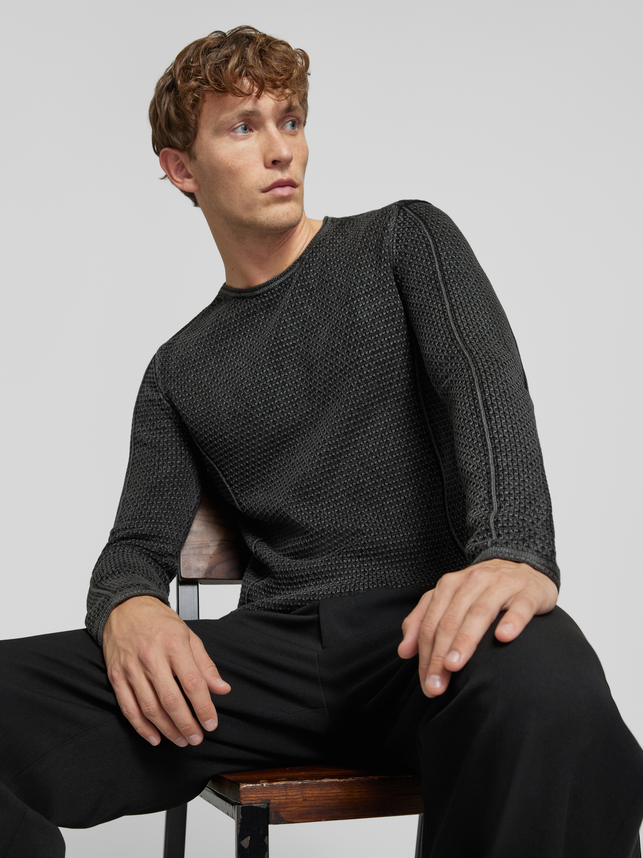 GABBAStrickpullover mit Rundhalsausschnitt Modell 'LIMA' in graphit