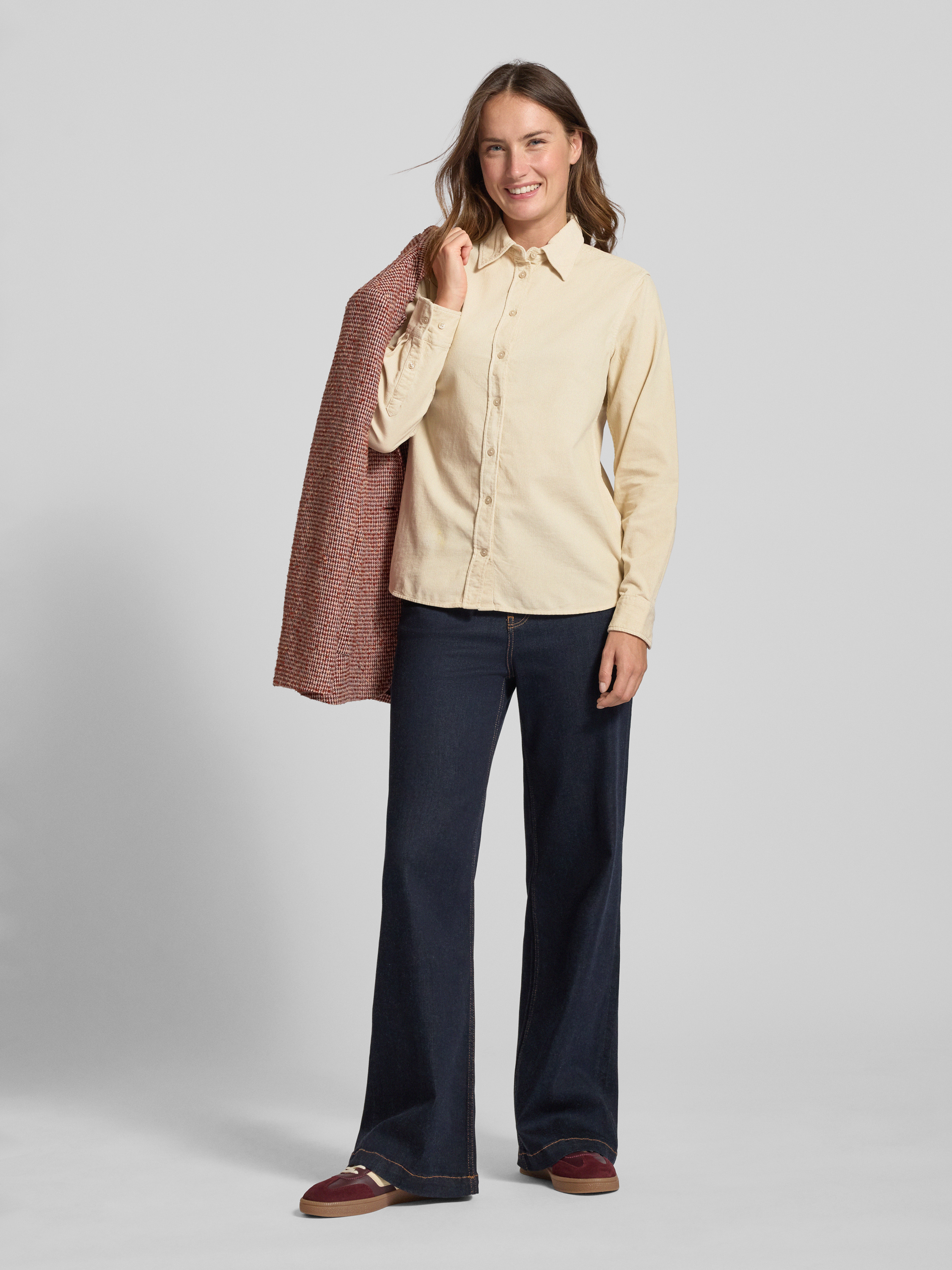 Die Cordbluse von Gant aus reiner Baumwolle zeichnet sich durch ihren lockeren Schnitt aus, der angenehm Bewegungsfreiheit lässt. Ein klassischer Hemdblusenkragen ergänzt das zeitlose Design und sorgt für einen entspannten Look. Die durchgehende Knopfleiste ermöglicht vielseitige Styling-Varianten im Alltag.