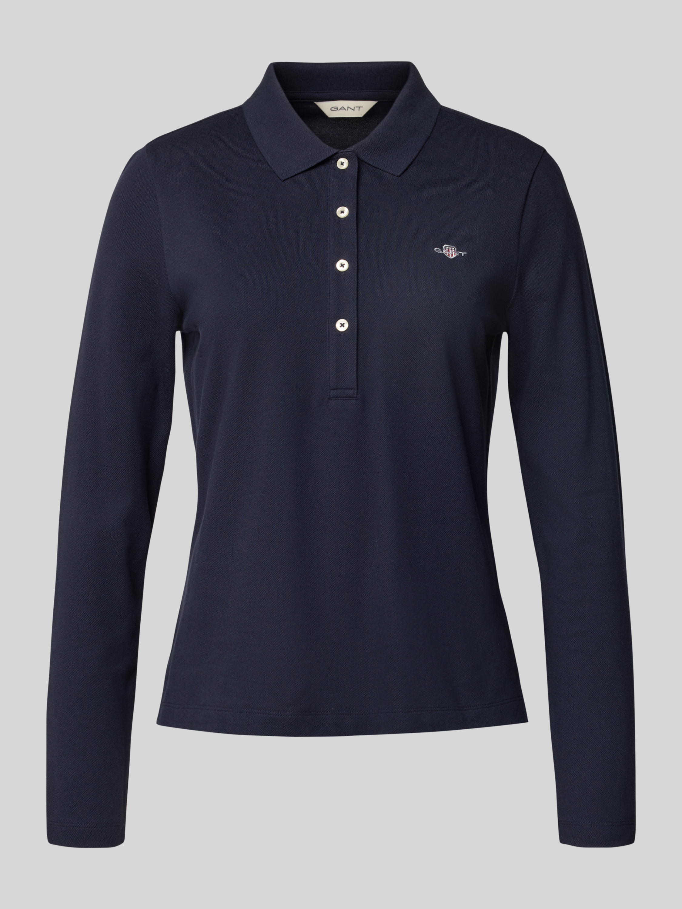 Das Damen Longsleeve von Gant aus reiner Baumwolle liegt angenehm an und schmiegt sich durch den eng anliegenden Schnitt dezent an die Silhouette. Ein Umlegekragen sorgt für einen klassischen Akzent, während das Label-Stitching einen dezenten Markenhinweis setzt. So eignet sich das Longsleeve mit Umlegekragen vielseitig für Alltag und Büro.