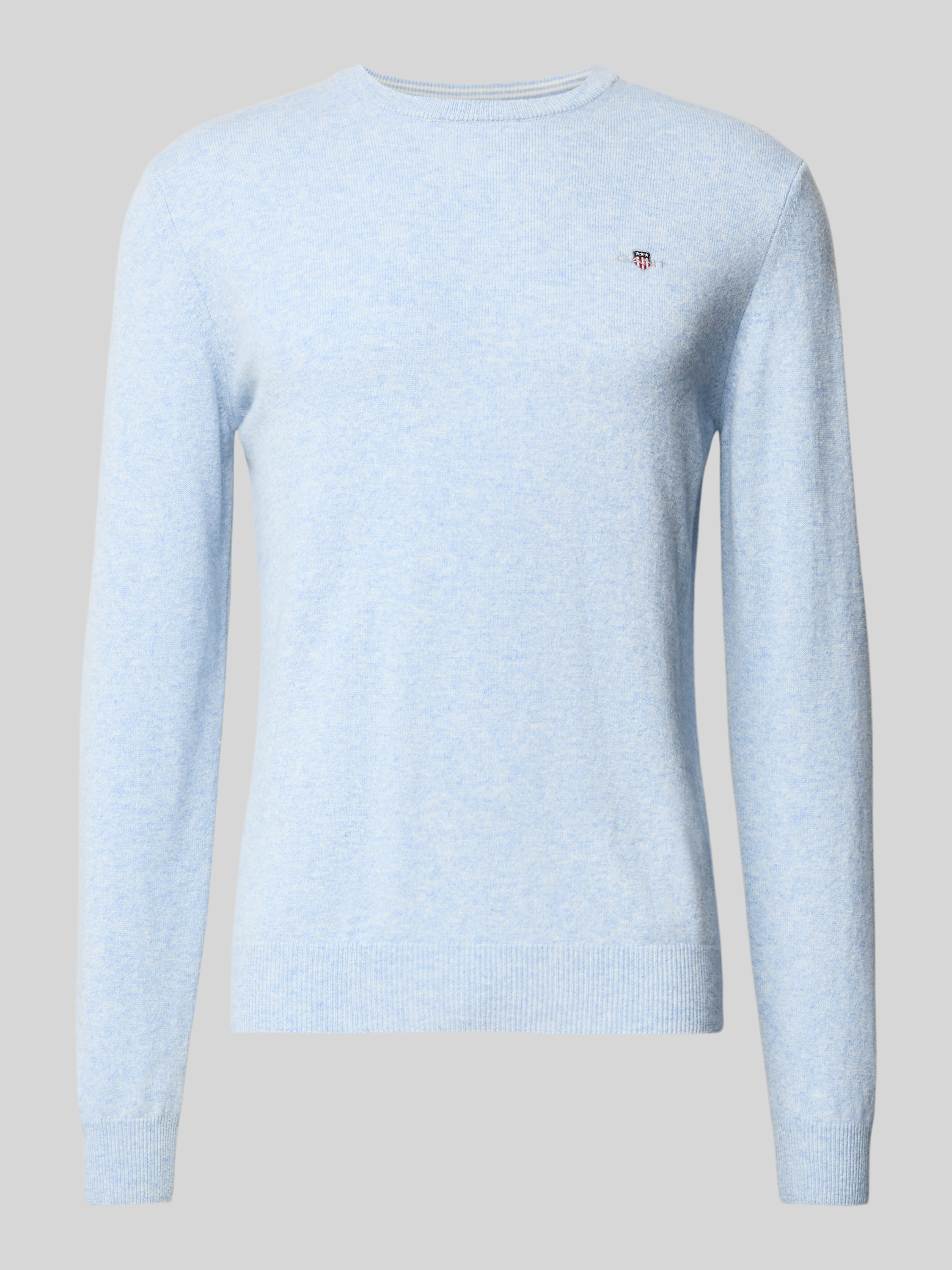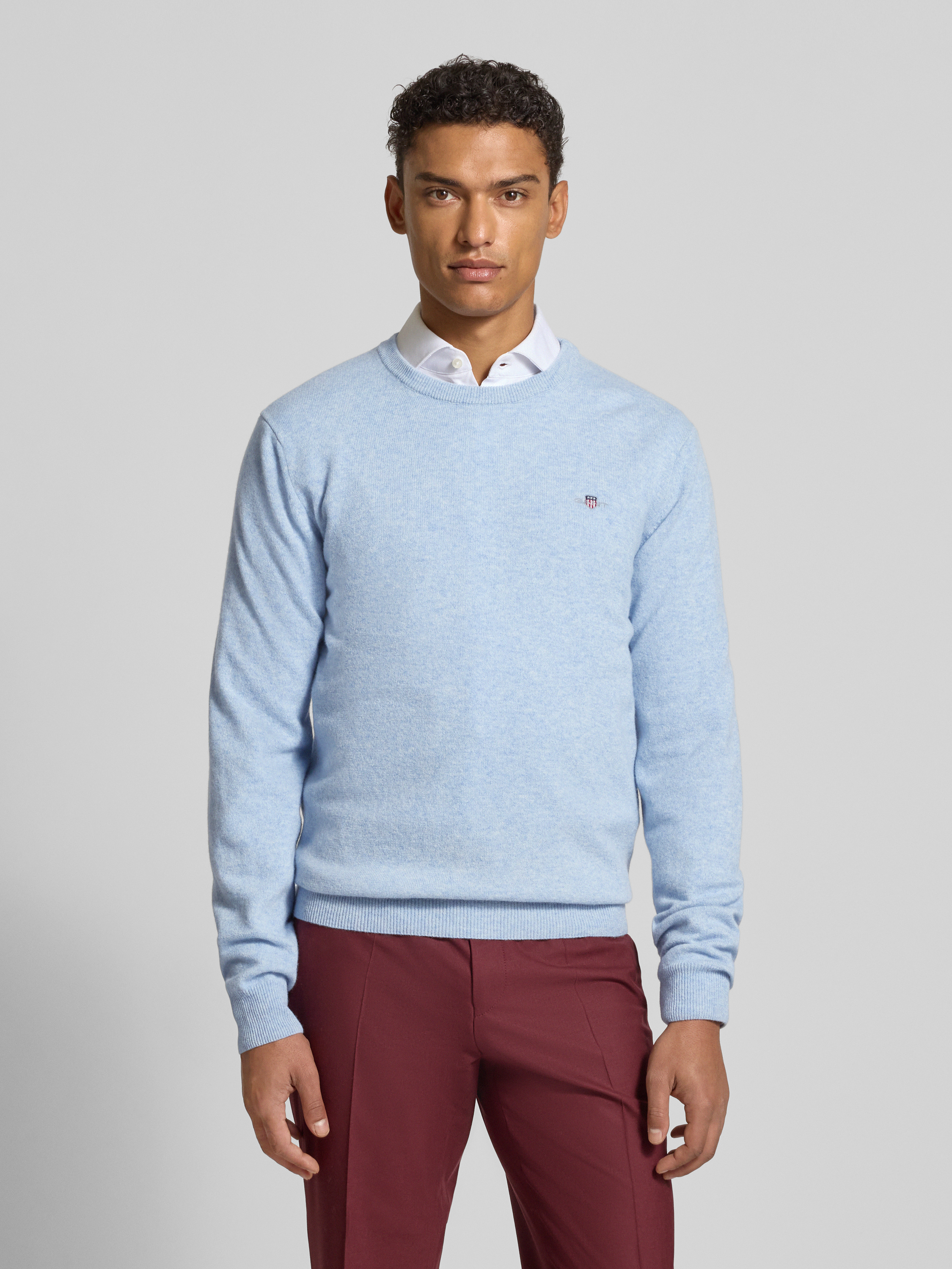 GantStrickpullover aus reiner Lammwolle mit gerippten Abschlüssen in hellblau melange